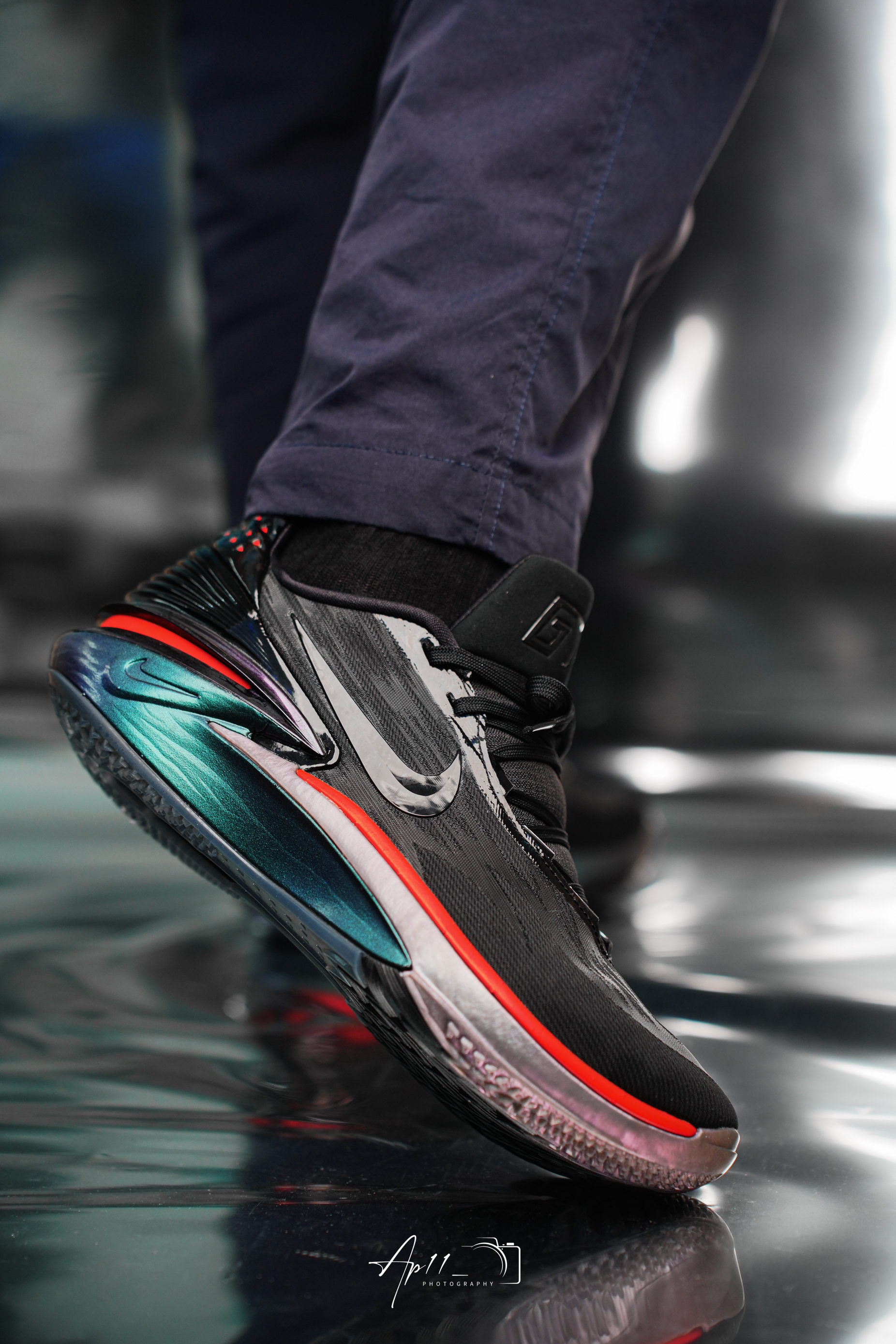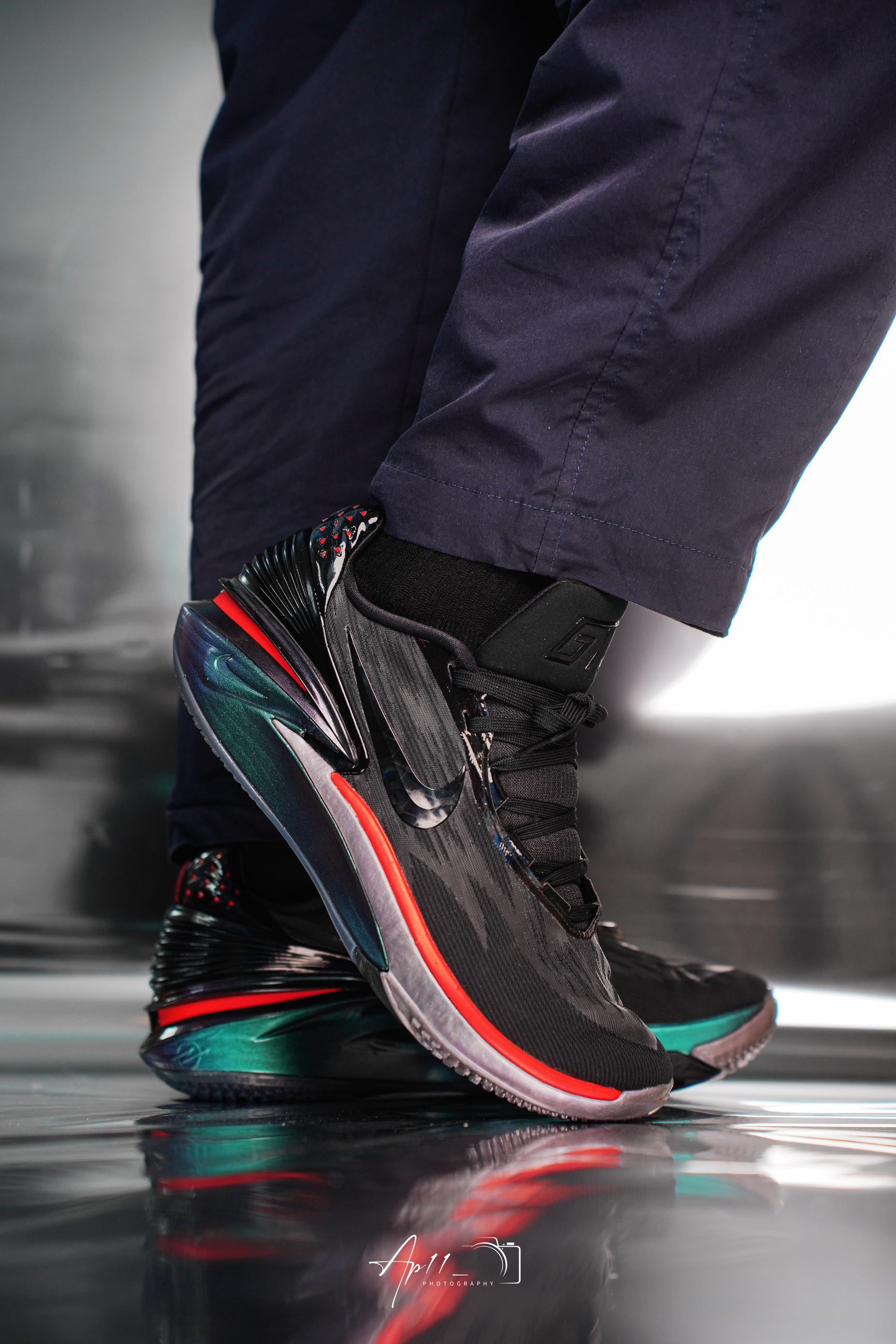 此次给大家带来的这款 NIKE AIR ZOOM G.T. CUT 2 为大中华限定配色。后跟和中底采用了幻彩的色彩方案,不少鞋迷也其取名「变色龙」。整体以暗色系为主,中底以鲜红色勾勒出线条感,其余部分则保持一致。全掌Zoom Strobel+后跟六边形 Zoom Air气垫的组合依然能够满足大家对于鞋款缓震回弹的需求!