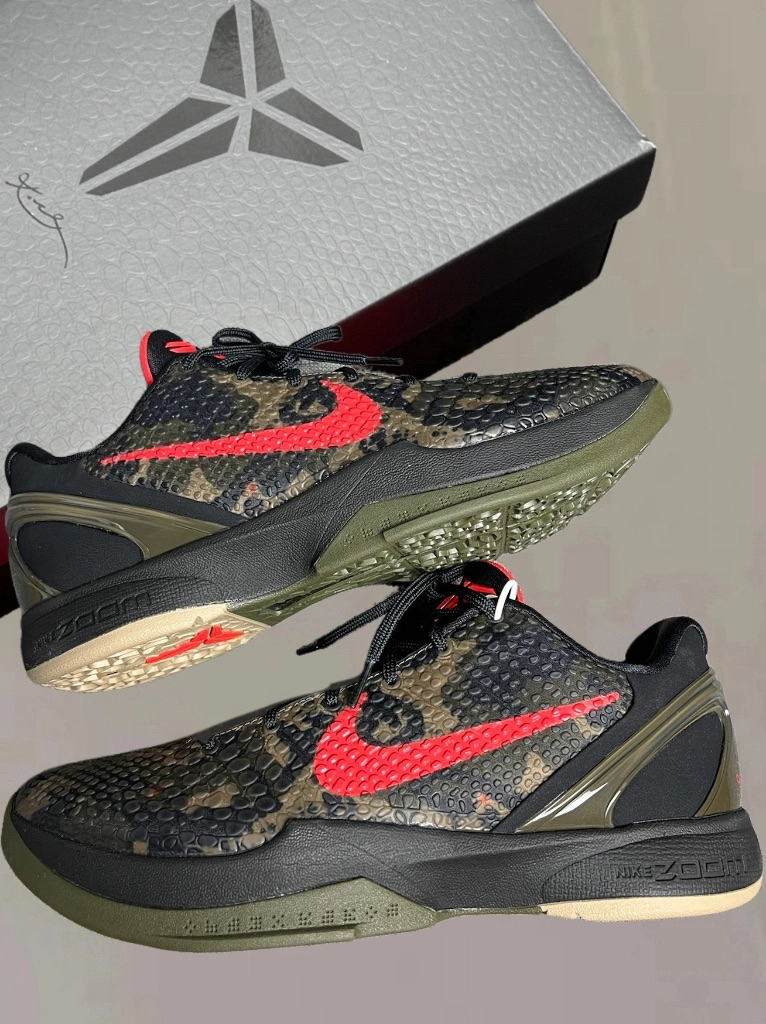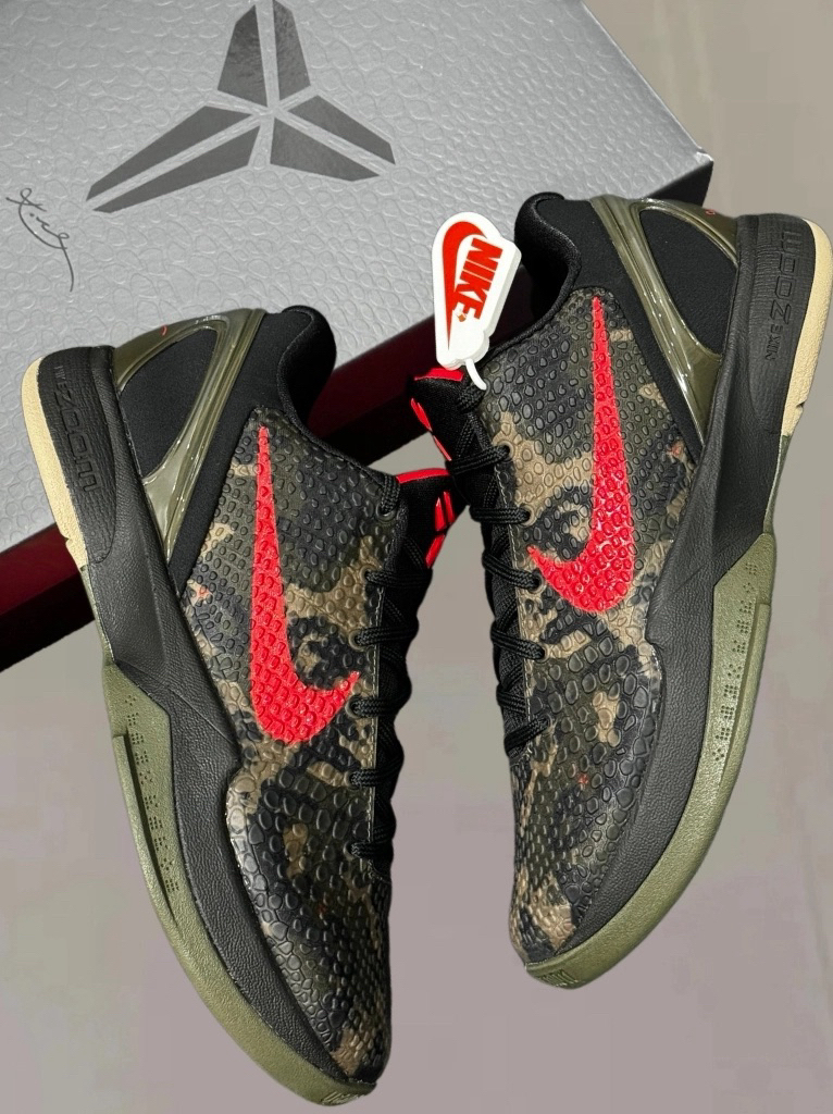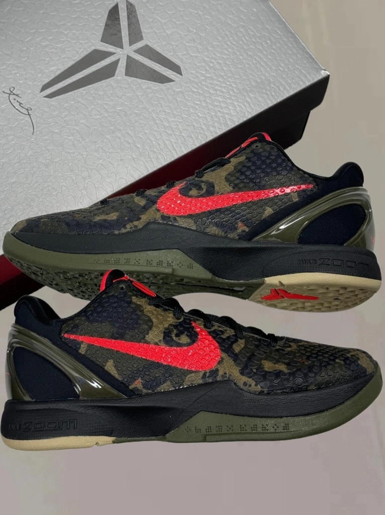 迷彩黑红科比6❗Nike Zoom Kobe 6 Protro "Italian Camo" 整体采用了迷彩黑红的设计配色,实战中的包裹性以及缓震感表现的可以的,在室外篮球场也不用担心鞋面脏的情况。 缺点:鞋面材质的设计导致夏天在实战过程中比较容易出汗,对于一些在室外激烈的比赛中透气性有点弱。 总结:总的来说这款科比6黑红配色是可以的,但是需要注意夏天透气性的问题。 #巴黎同款运动会 #穿这...