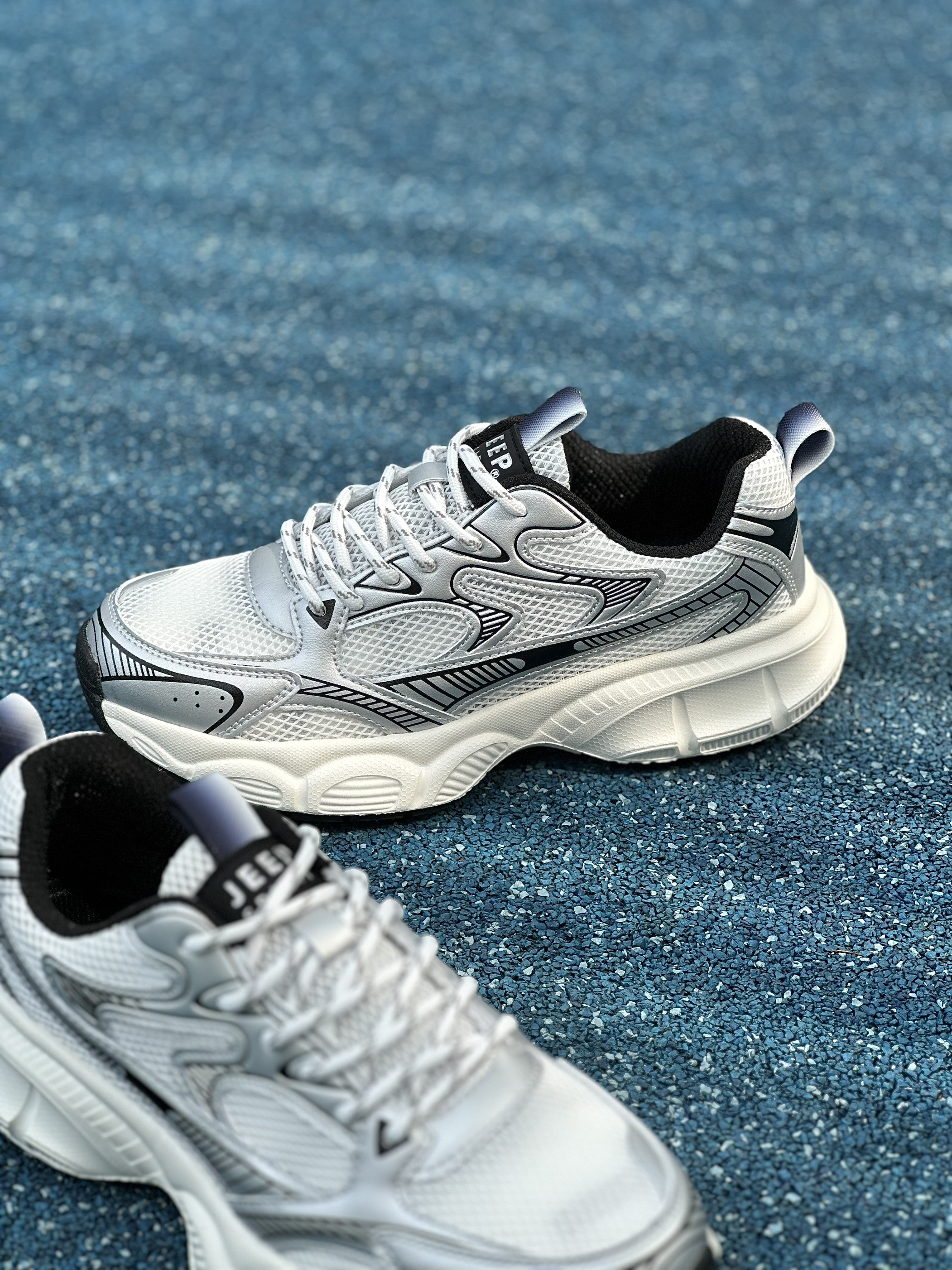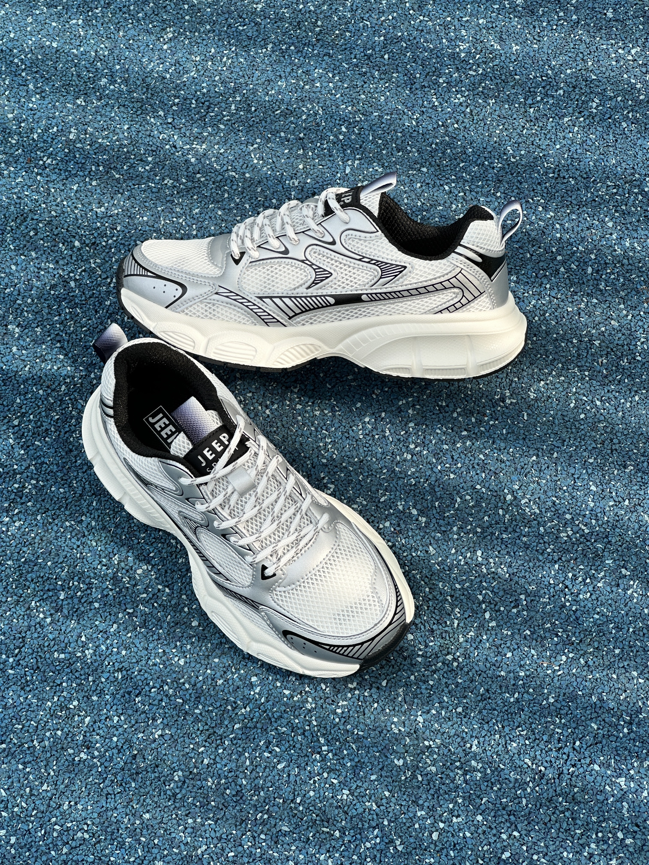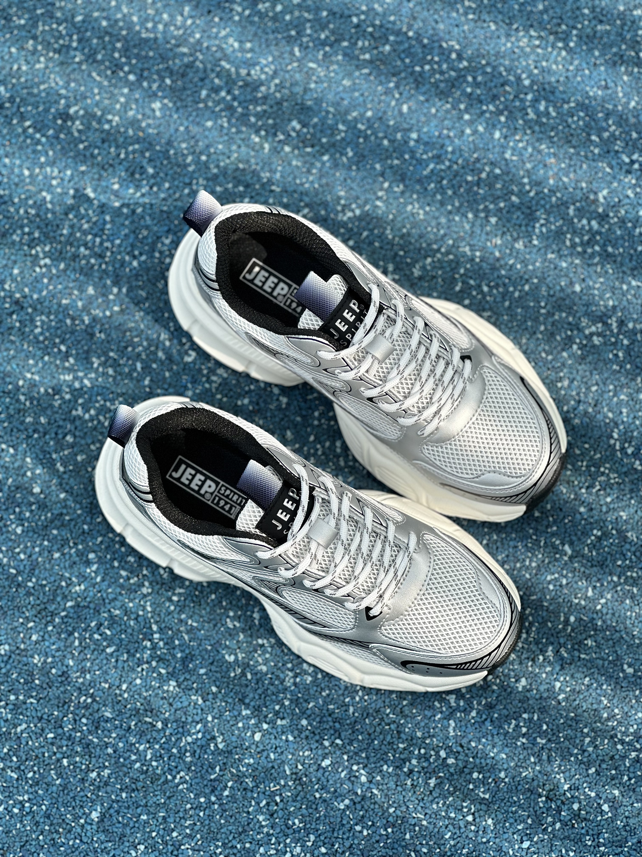 👟:JEEP SPIRIT 潮流运动休闲低帮老爹鞋 男款 银色 hello,这里是陈白羊🐑!今天给大家分享一款JEEP SPIRIT的厚底老爹鞋 TA的鞋面整体由白色⚪️为主调,搭配上银色的框架以及黑色⚫️线条的轮廓勾勒,在织物网眼与超纤皮革材质的衬托下,层次感鲜明,保证透气性💨的同时给人一种即复古又很机能未来🎧的视觉体验。 其次,厚实发泡🧼材质中底的加持,上脚柔软舒适,最主要它还有着至少3...