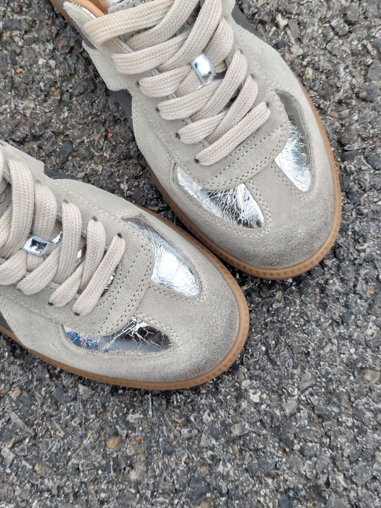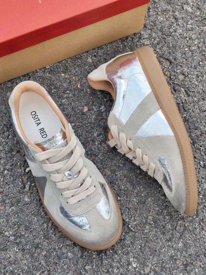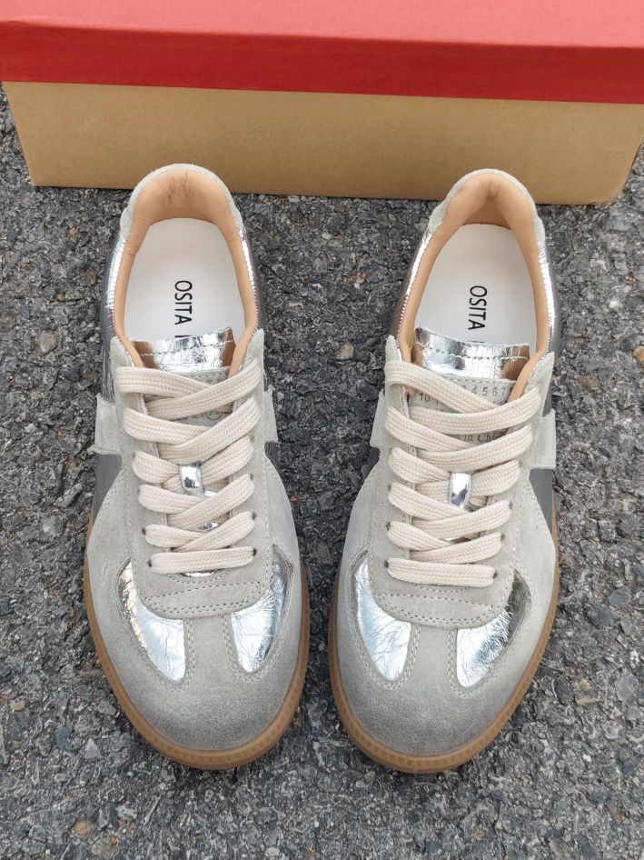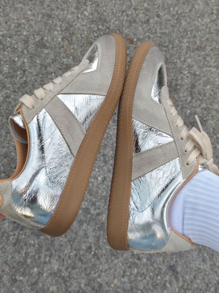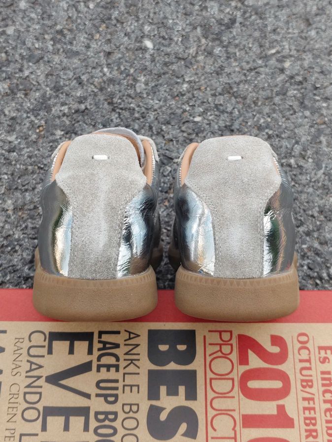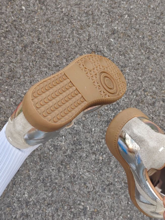 最近找到了一双炒鸡好看的德训鞋~ 做旧脏脏款,搭配上银色的鞋面,泰有质感辣 鞋型很秀气,显脚小哦 有内增高5cm左右,很适合我这种小个子女生 尺码的话,平常尺码就可以啦