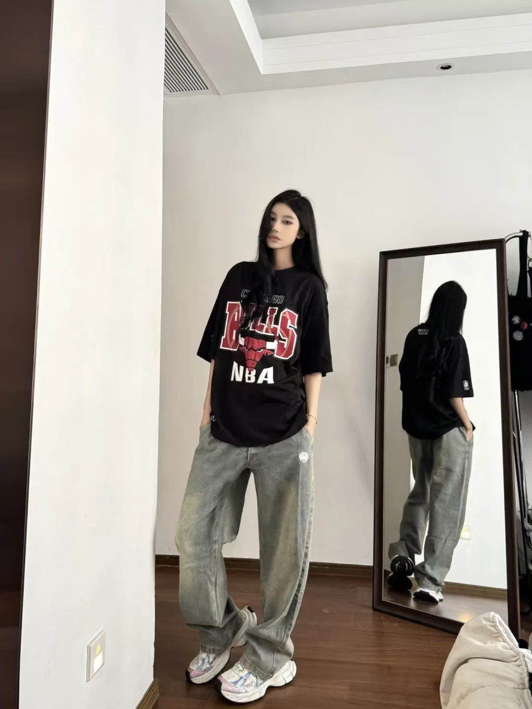 这条牛仔裤真的好绝 版型绝绝子上身效果赞 宽松直筒版型 很显瘦也修饰腿型 面料很软 穿上很舒适 宽松休闲的很不错 颜色也是比较新的那种复古的 很适合现在穿! 也很好搭配 随便搭配个上衣都可以 不挑人