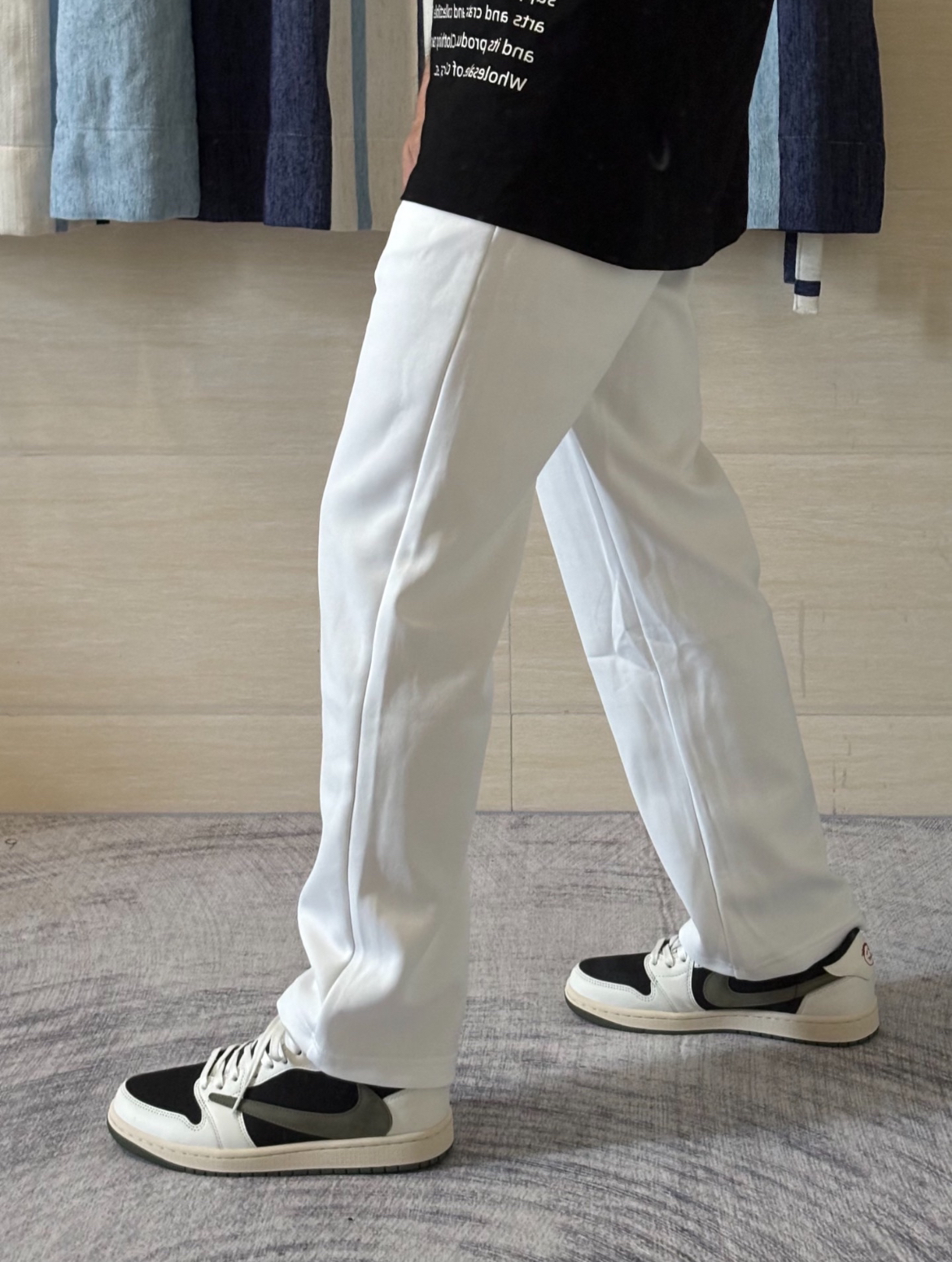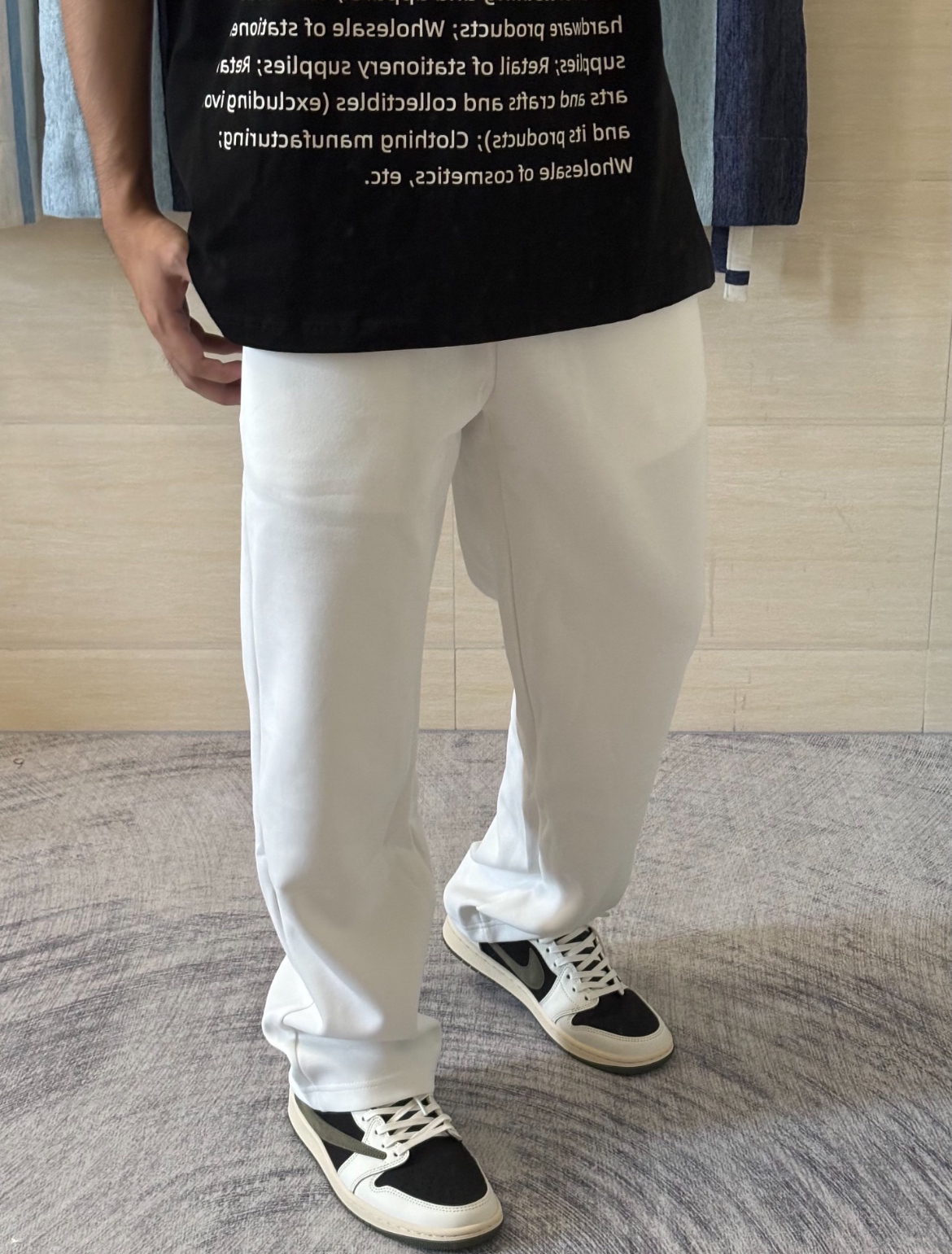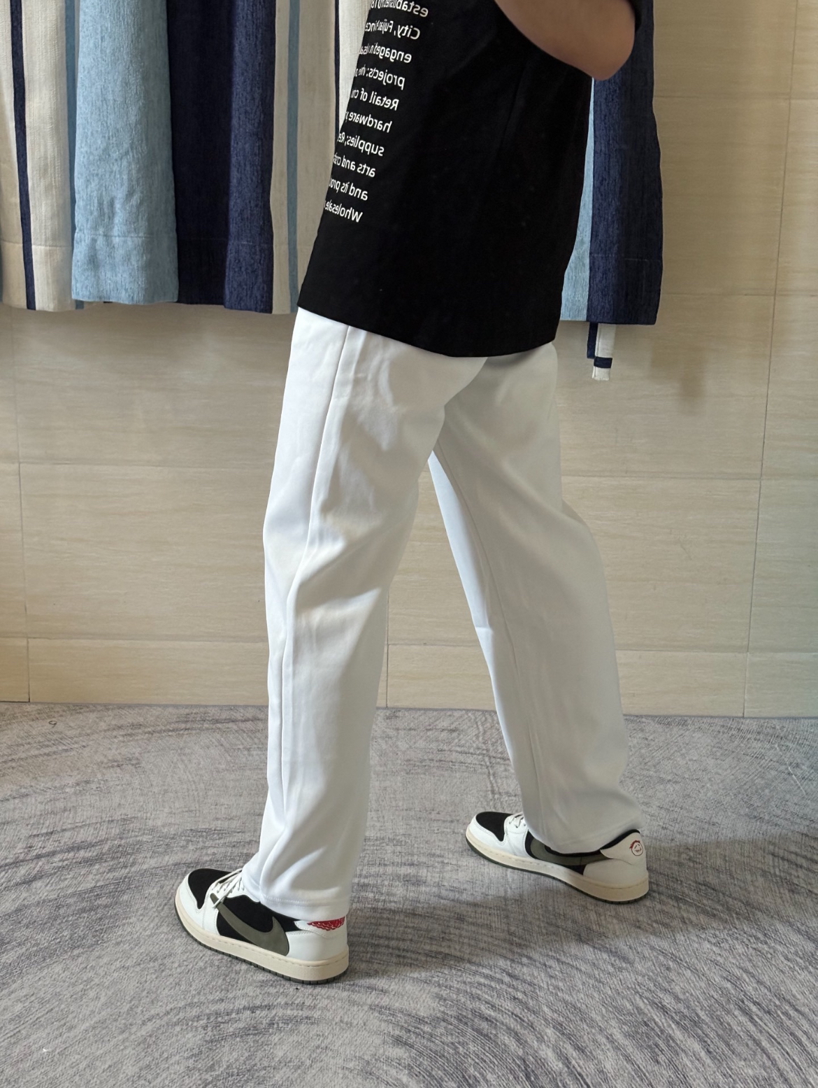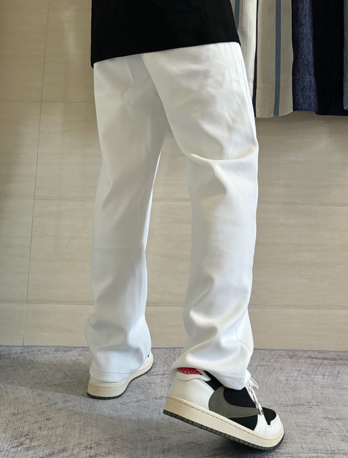 这一件白色裤子真的可以在人群里脱颖而出 整套的黑白调色都不会出错 裤子与上衣的颜色分别呼应!