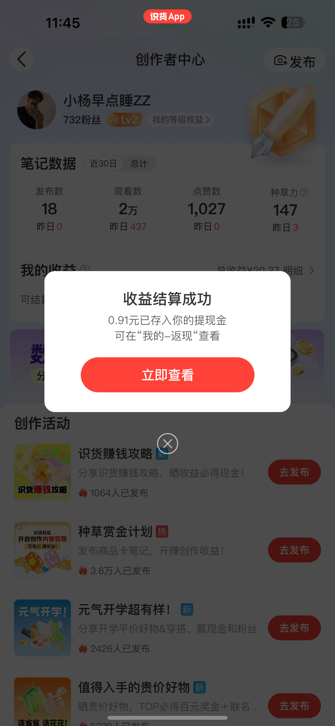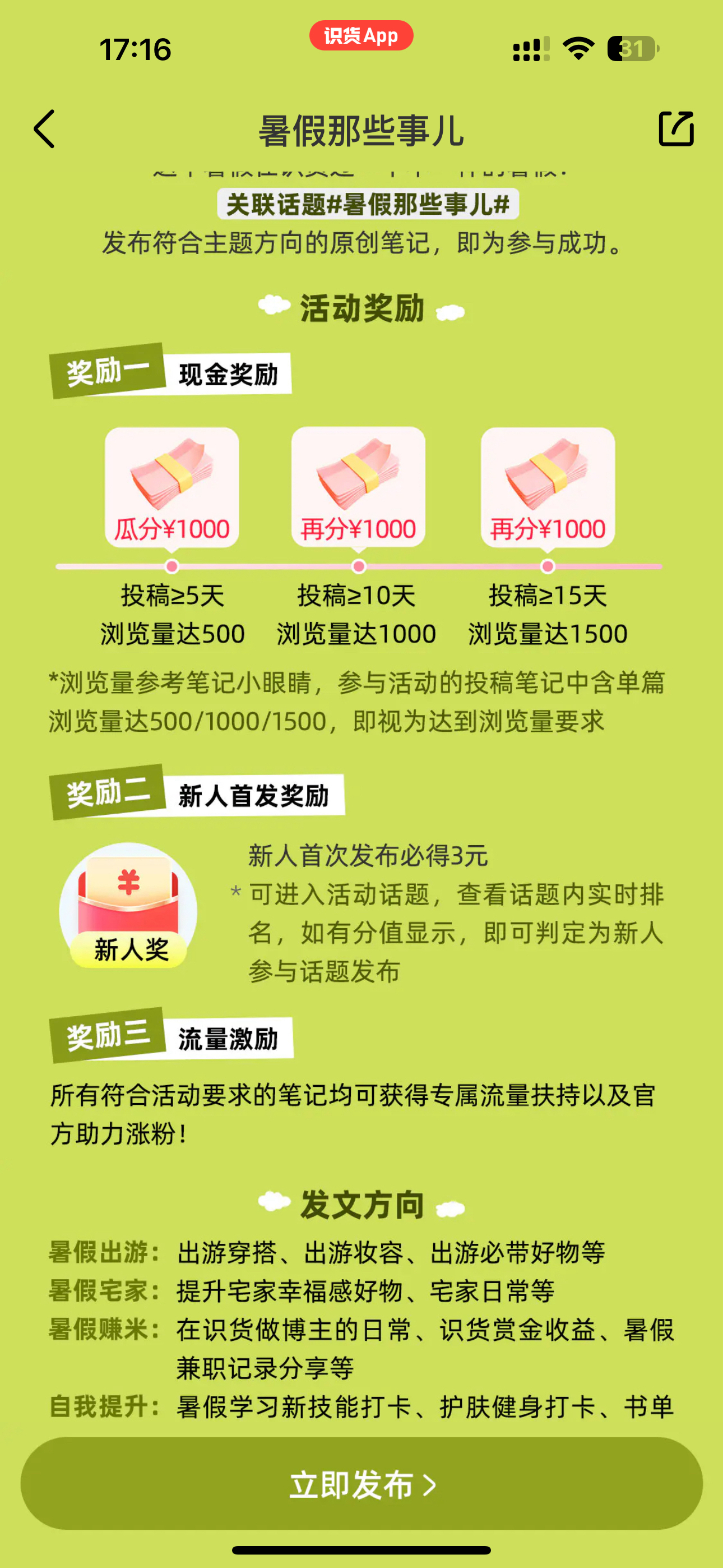 感谢识货平台给我零花钱,让我可以买更多自己喜欢的东西!目前我从识货得到的零花钱主要来自两方面: 1️⃣种草赏金计划 只要创作者等级升到二级之后,发布带链接的动态就可以得到内容激励,有人购买的话还可以得到高额的带货佣金 2️⃣创作者活动 平台给我们创作者了很多创作的方向和活动激励,发布符合活动的作品可以得到更多的流量、粉丝以及零花钱 识货平台对大学生很友好,大家可以积极地创作起来😋