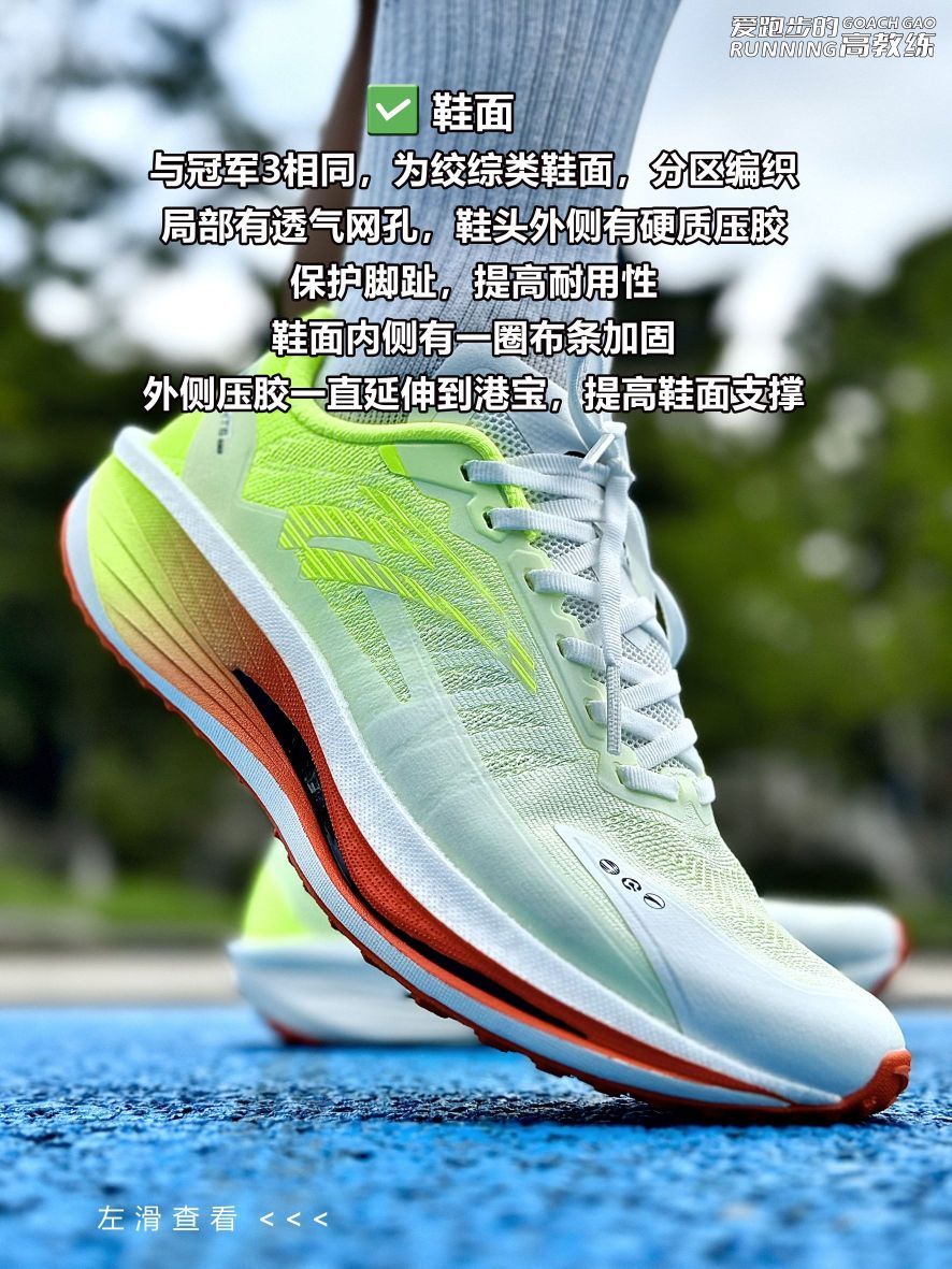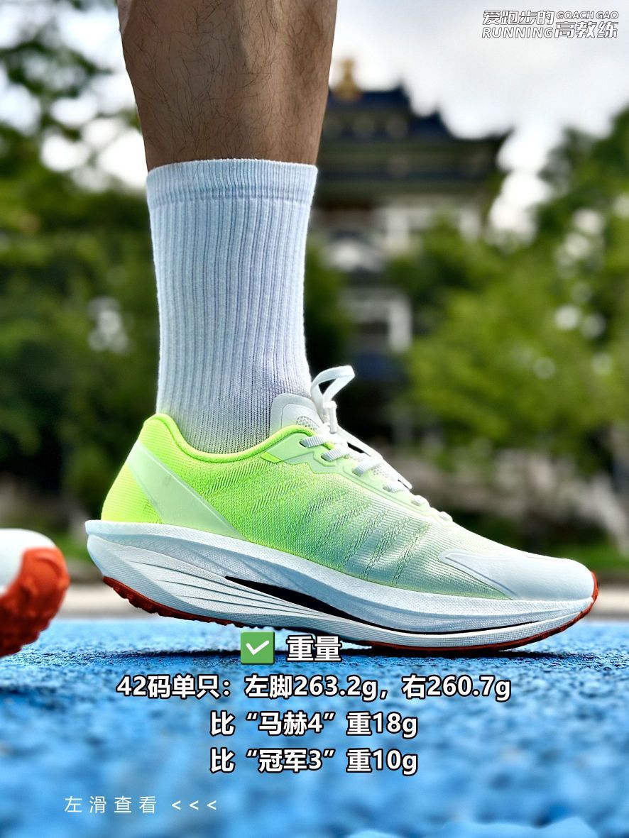 📝跑鞋数据: ✅鞋重:42码单只左脚263.2g,右脚260.7g,比马赫4重18g,比冠军3重10g; ✅鞋面:与冠军3相同,为绞综类鞋面,分区编织,局部有透气网孔,鞋头外侧有硬质压胶,保护脚趾,提高耐用性,鞋面内侧有一圈布条加固,外侧压胶一直延伸到港宝,提高鞋面支撑; ✅鞋楦:微宽鞋楦; ✅鞋舌:鞋舌为工程网布,较为透气,上段领口为仿麂皮材质,外侧有压胶和鞋带锁定孔; ✅鞋带:扁平横纹微弹鞋带...