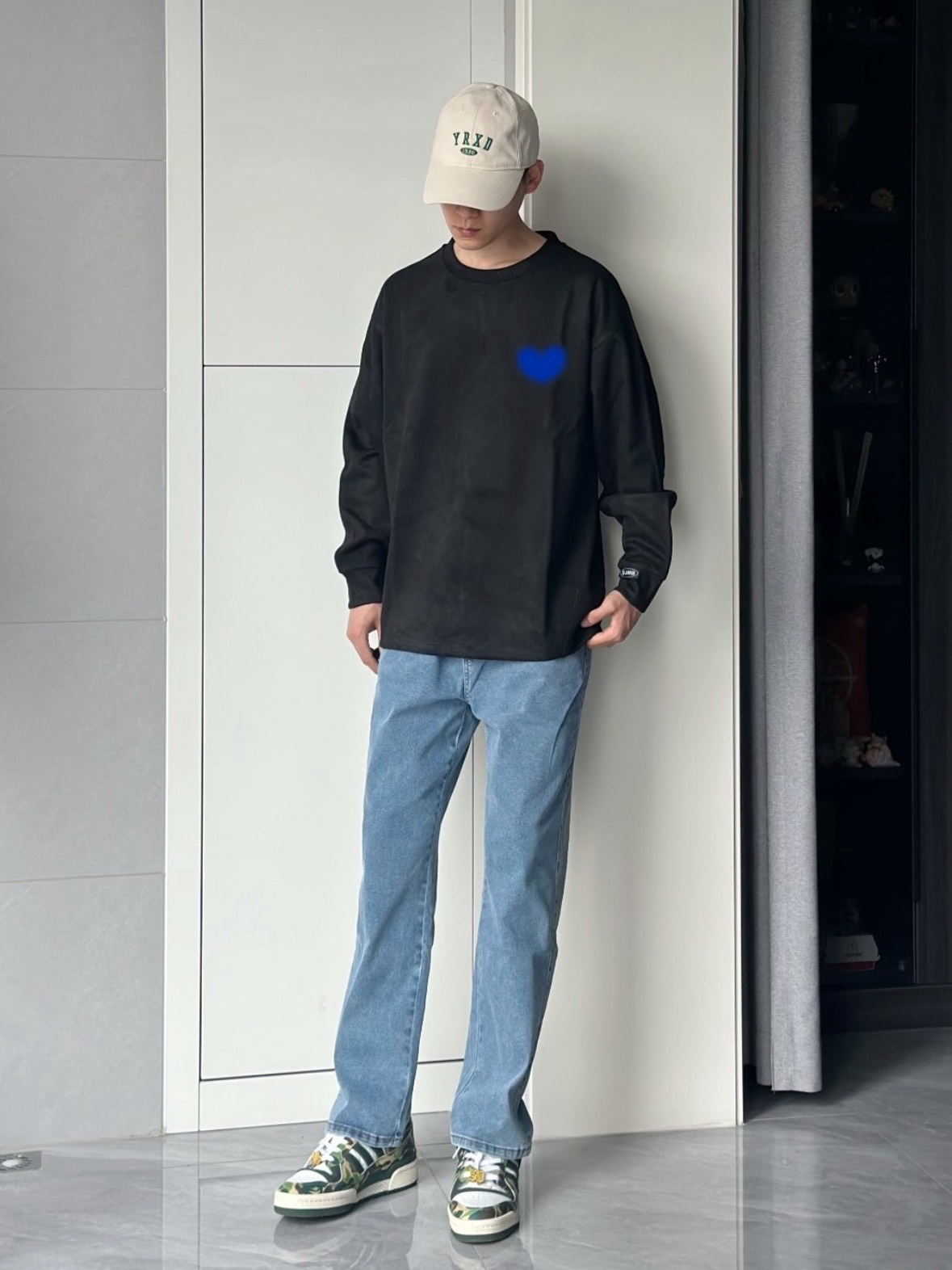 牛仔裤爱好者宣布 今年最爱的百搭牛仔裤 水洗蓝色简直yyds 怎么穿怎么喜欢系列 整体宽松版型上身效果蛮不错 今天搭配了一件黑色长袖 上下深浅颜色对比强烈 可以更好突出裤子 面料还挺有弹性的 很亲肤 💯