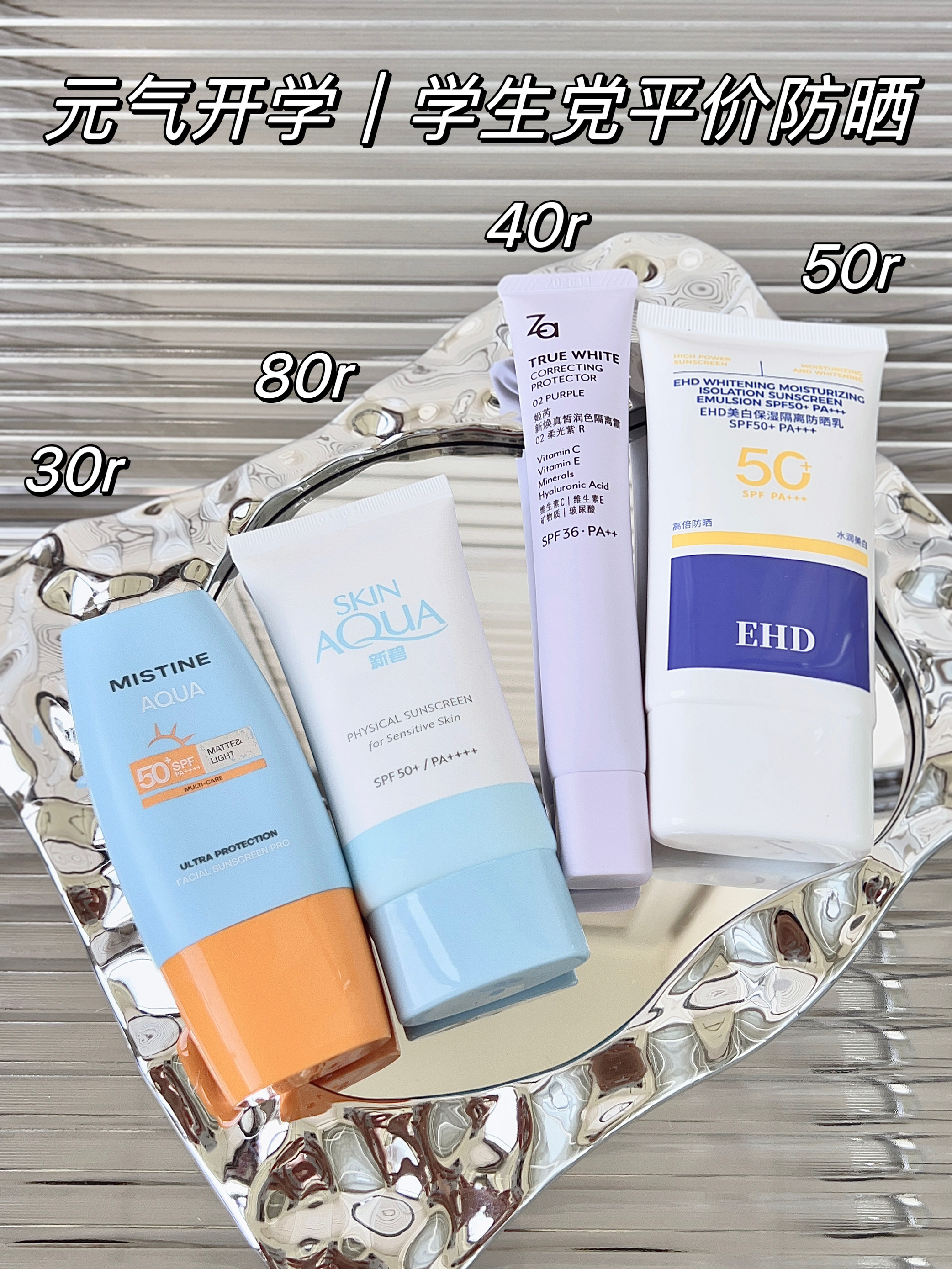 开学要备防晒霜的学生党宝子们看过来👀防晒霜功课来咯~ ◆油皮→蜜丝婷防晒,清爽好推不油腻。 ◆干皮→EDH美白防晒乳,很水润!还有美白特证。 ◆敏感皮→曼秀雷敦小蓝帽舒护物理防晒霜,温和不厚重。 ◆暗黄肤色→ZA美白隔离防晒妆前乳,多功能合一,也有美白特证,日常通勤提气色好用。
