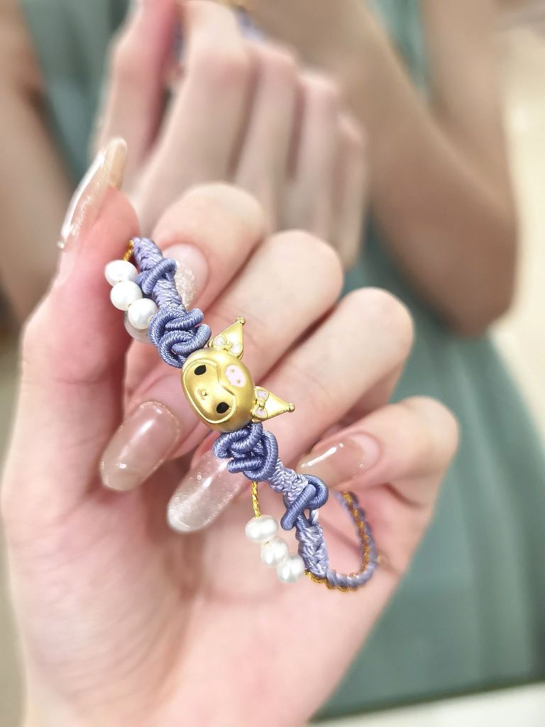 潮宏基家的手绳越来越懂女孩纸啦! 三丽鸥联名的酷洛米手绳简直不要泰可爱噜 金灿灿的酷洛米 谁看了不心动 紫色手绳和珍珠吊坠 上手显白又乖巧 给妹妹当做开学礼物我觉得蛮合适的