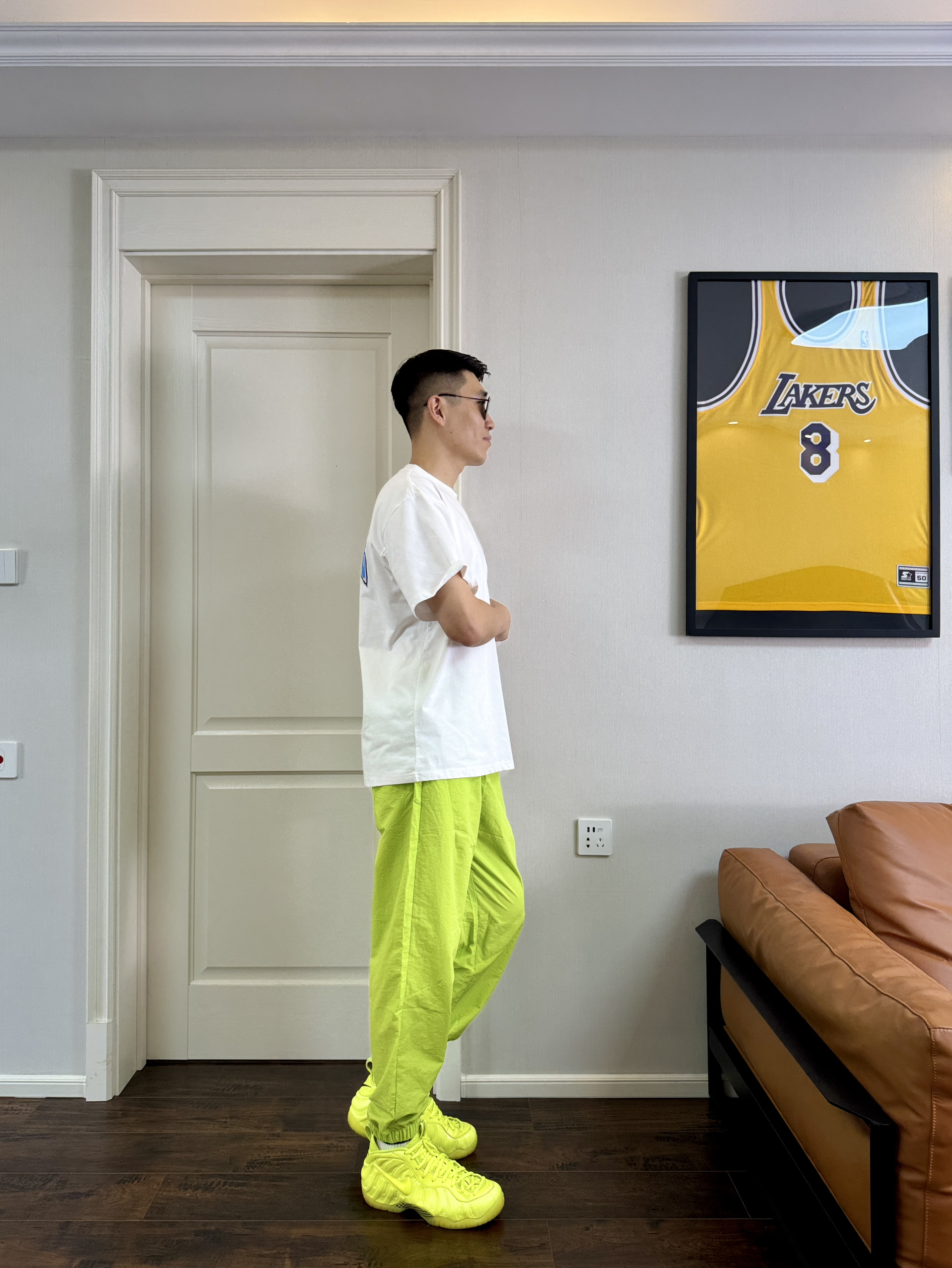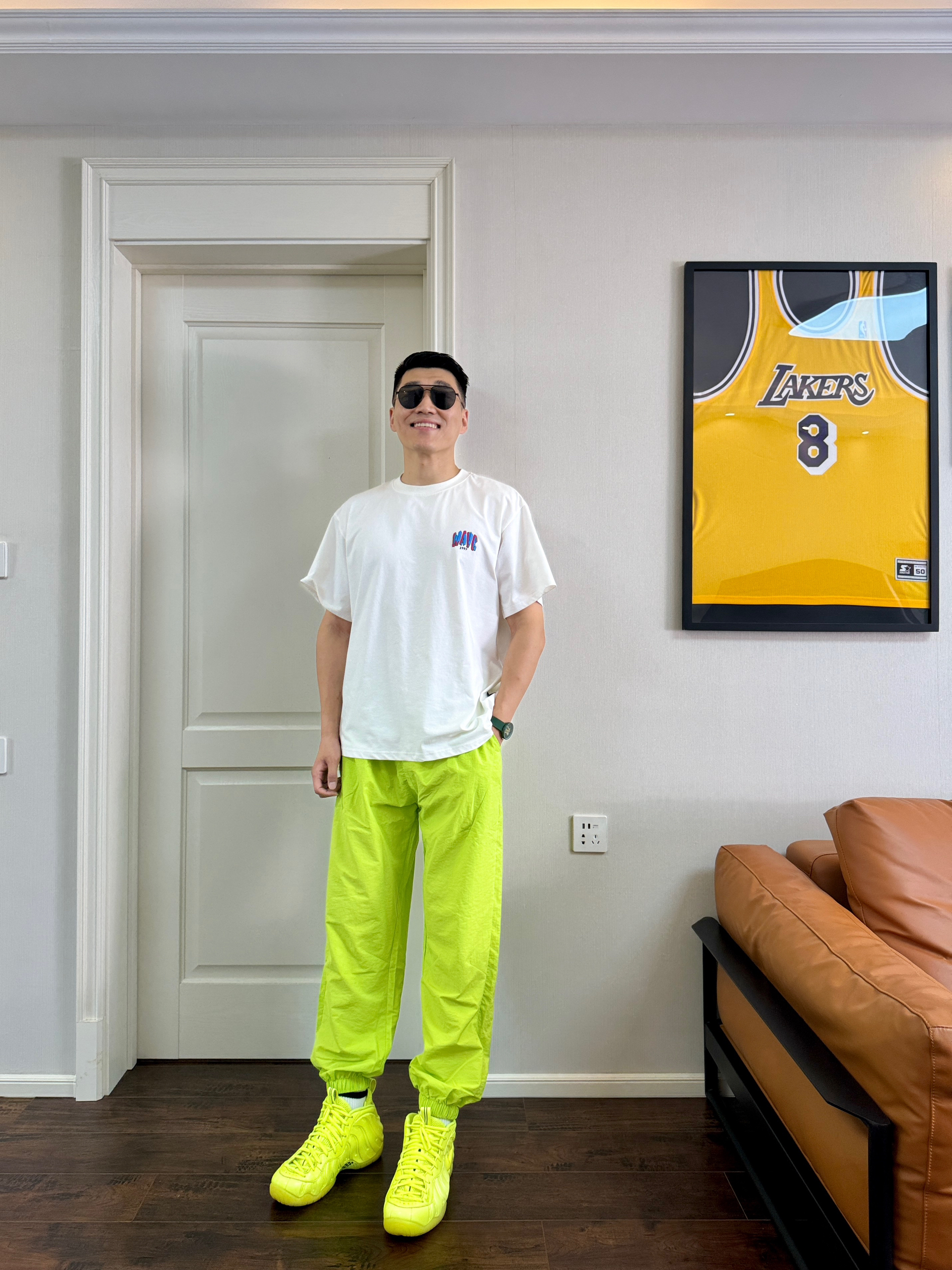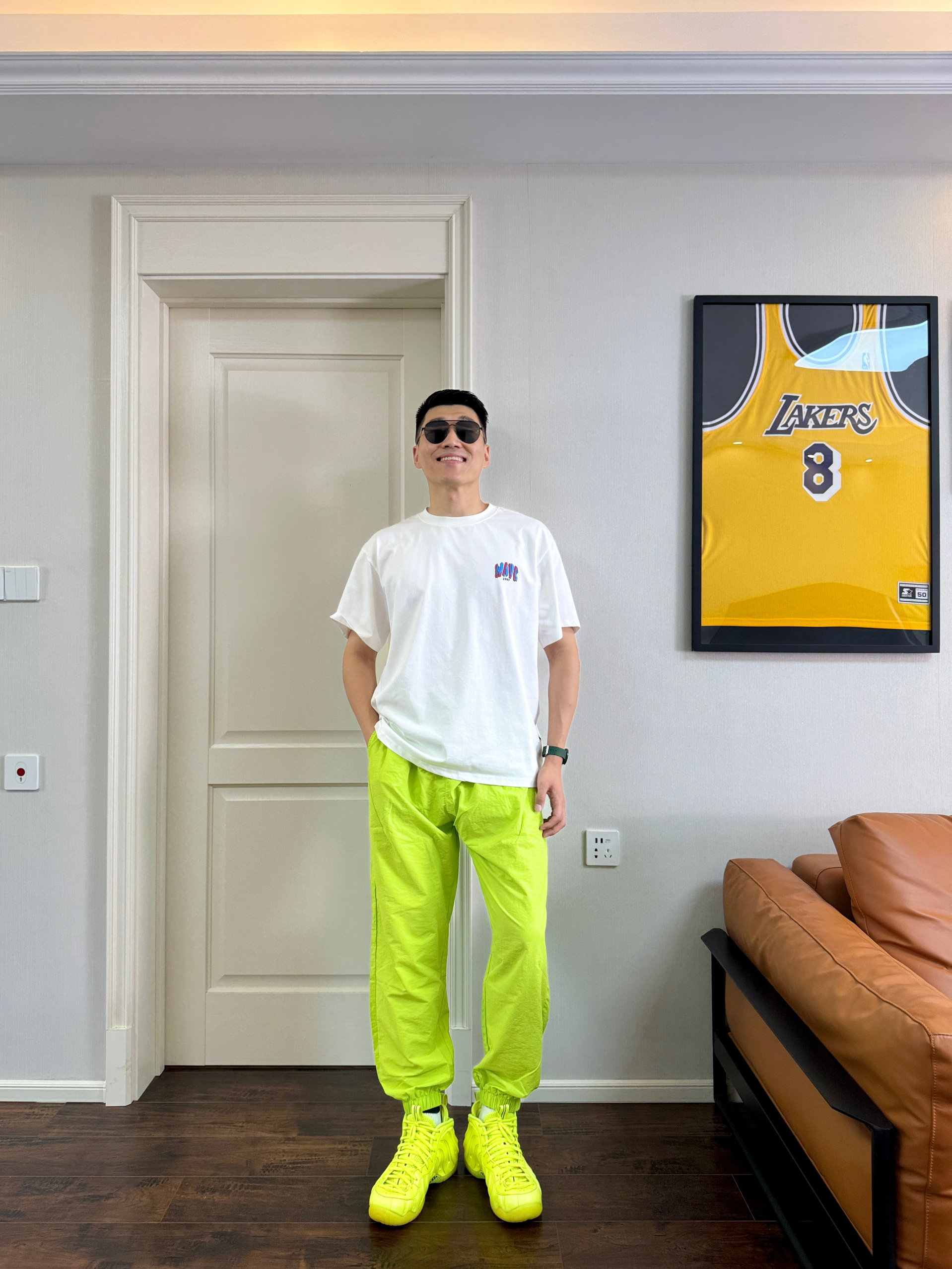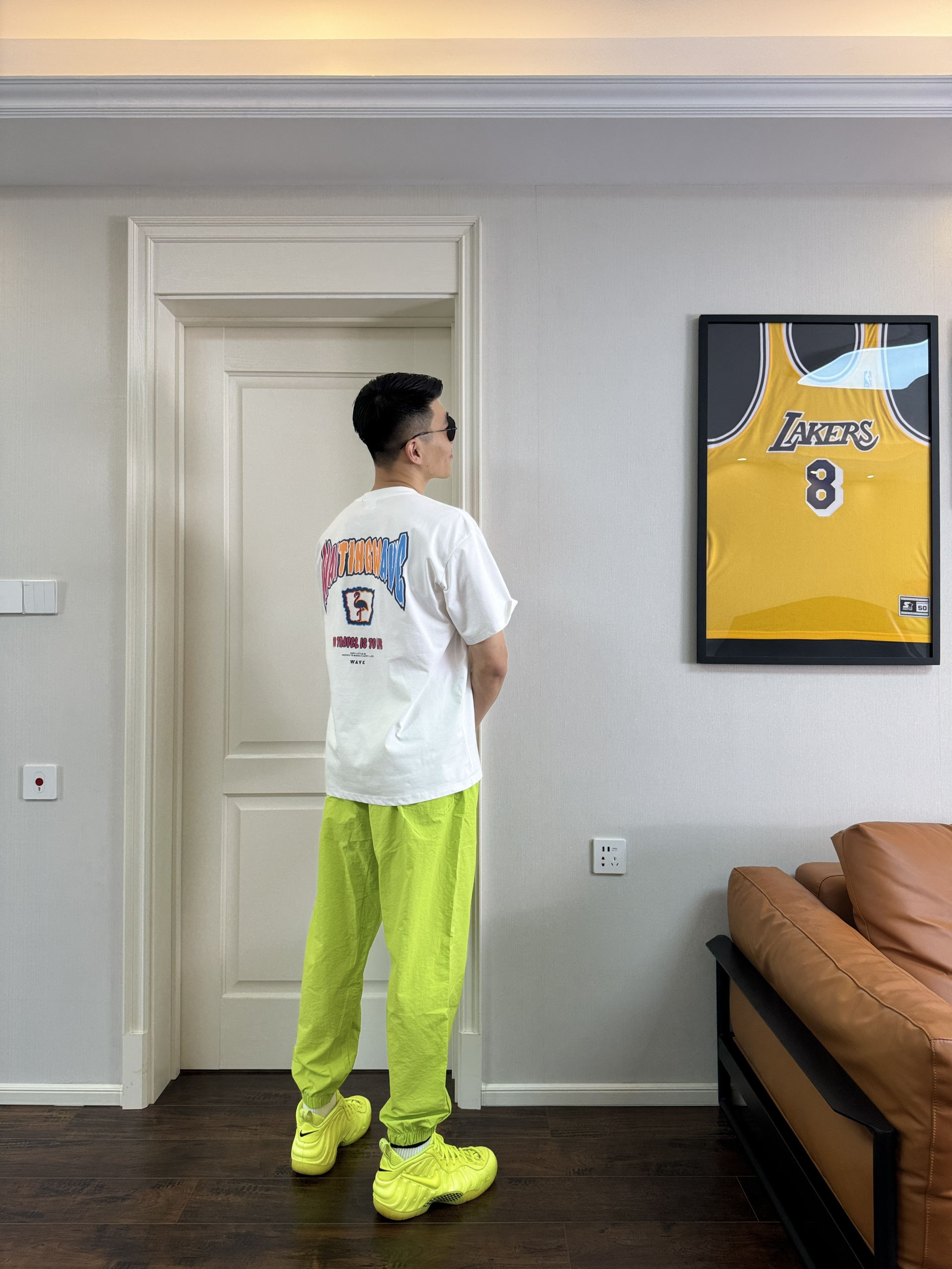 Hello各位Bro 今天穿美式复古短袖T恤搭束脚休闲裤,再上脚一双绿泡,整体运动风。 记忆一下被拉到了学生时代,那时候好像每天都会穿喷泡,今天再上脚这双绿泡,真是少年感满满啦。