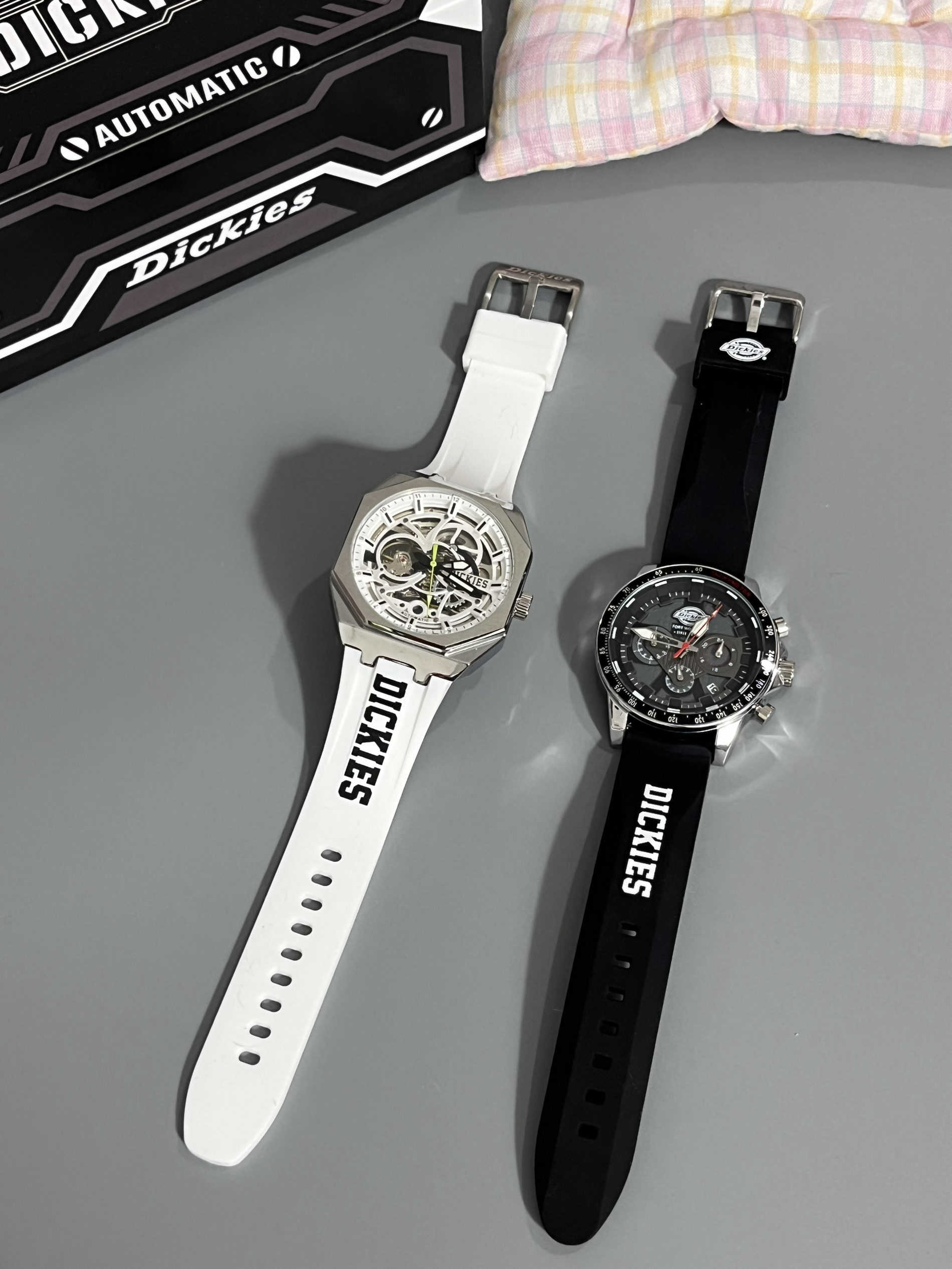 本篇笔记关联了Dickies 潮流时尚高中生钢带多功能三眼防水夜光日历窗石英男士手表 黑胶 CL-560P1-17SY、Dickies 防水百搭时尚潮流镂空氚气高中学生全自动机械男女同款手表 【礼盒装】白色等商品,为用户提供真实的使用体验和购买参考。