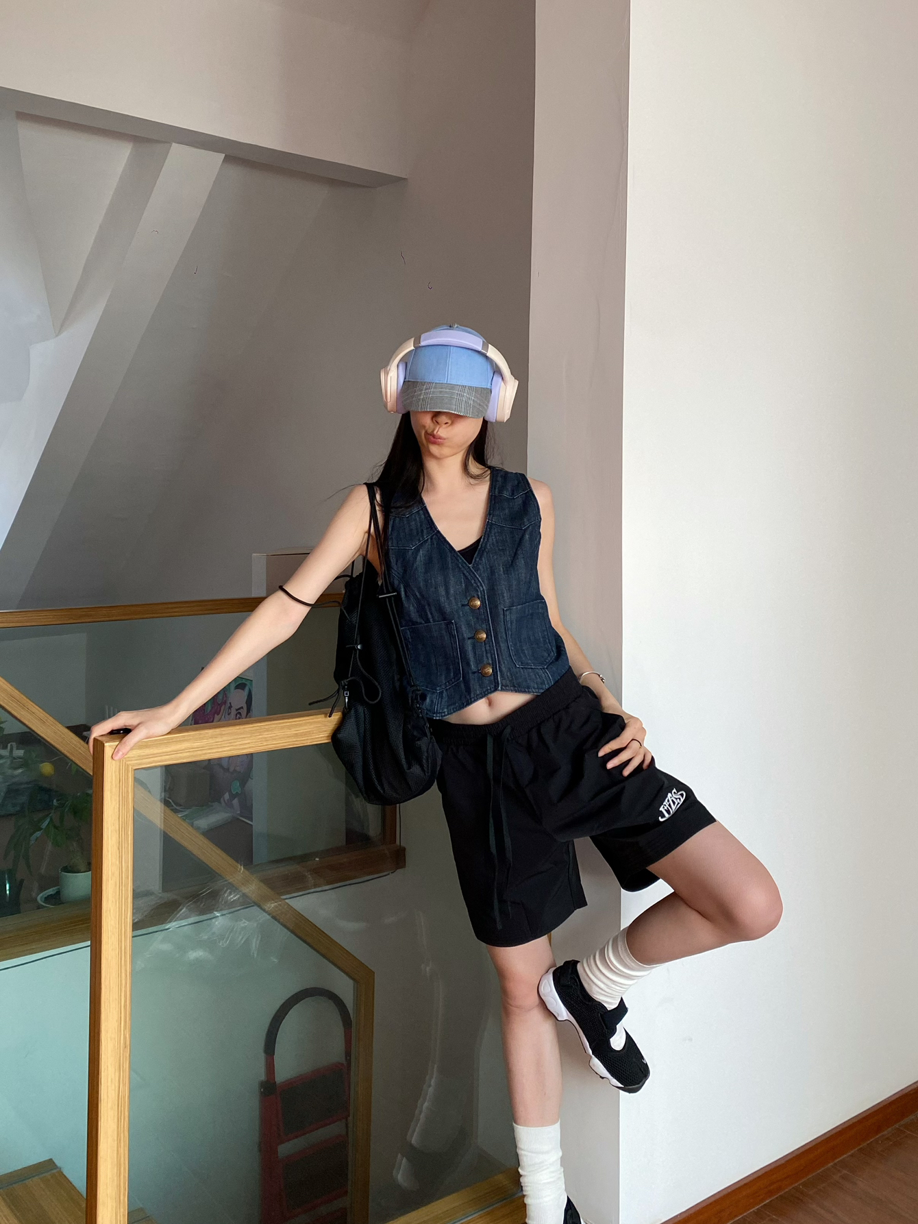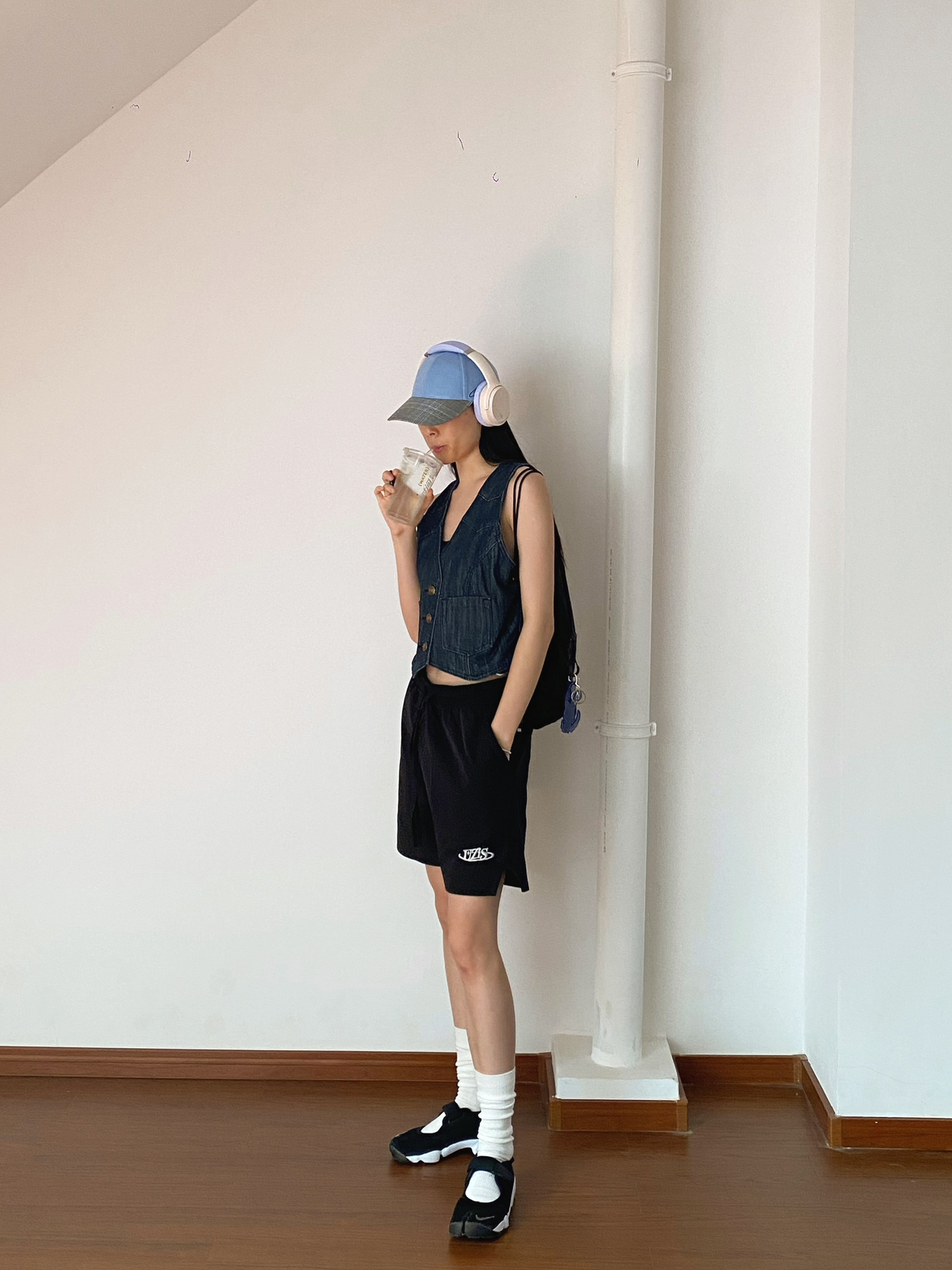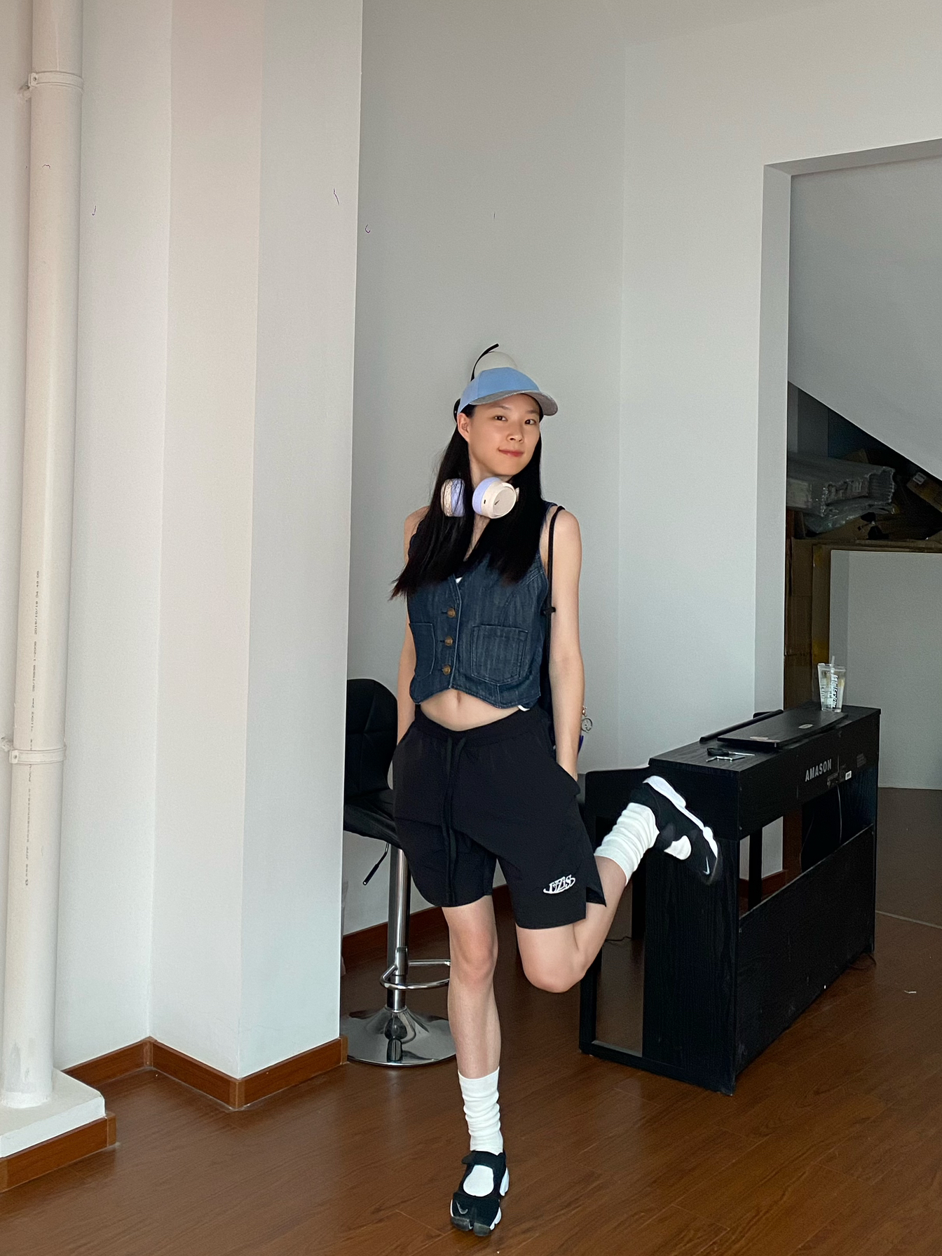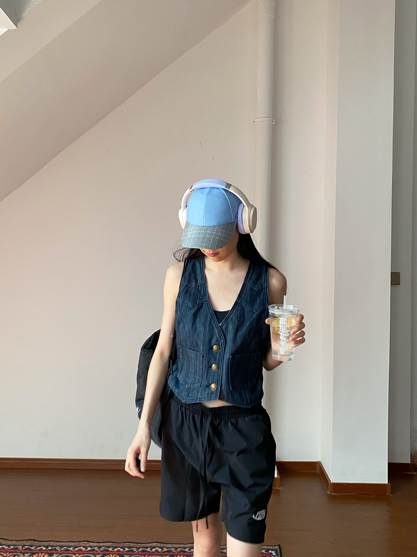 偏休闲的一条速干运动裤. 拿来跟我的马甲, 居然还能碰撞出这么和谐的look. 再搭配上亮色🧢 有一股ins博主味儿. 速干透气的面料, 很适合出门旅游的时候穿, 方便又好看🤨 裤边分叉不会束缚动作,还显瘦.