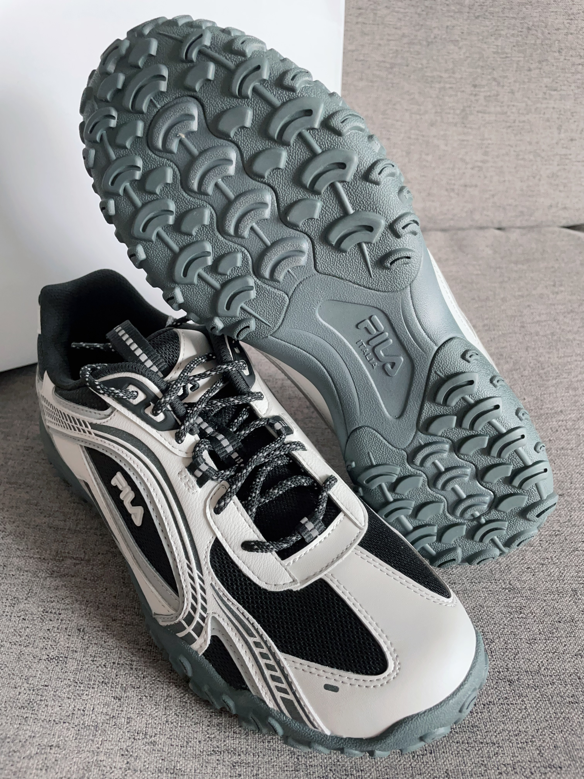 本篇笔记关联了【韩素希同款】FILA/斐乐 PEBBLE 舒适耐磨 防滑减震 织物 耐用 回弹 复古百搭 运动休闲 薄底 舞蹈鞋 德训鞋 老爹鞋 南极灰/黑色等商品,为用户提供真实的使用体验和购买参考。
