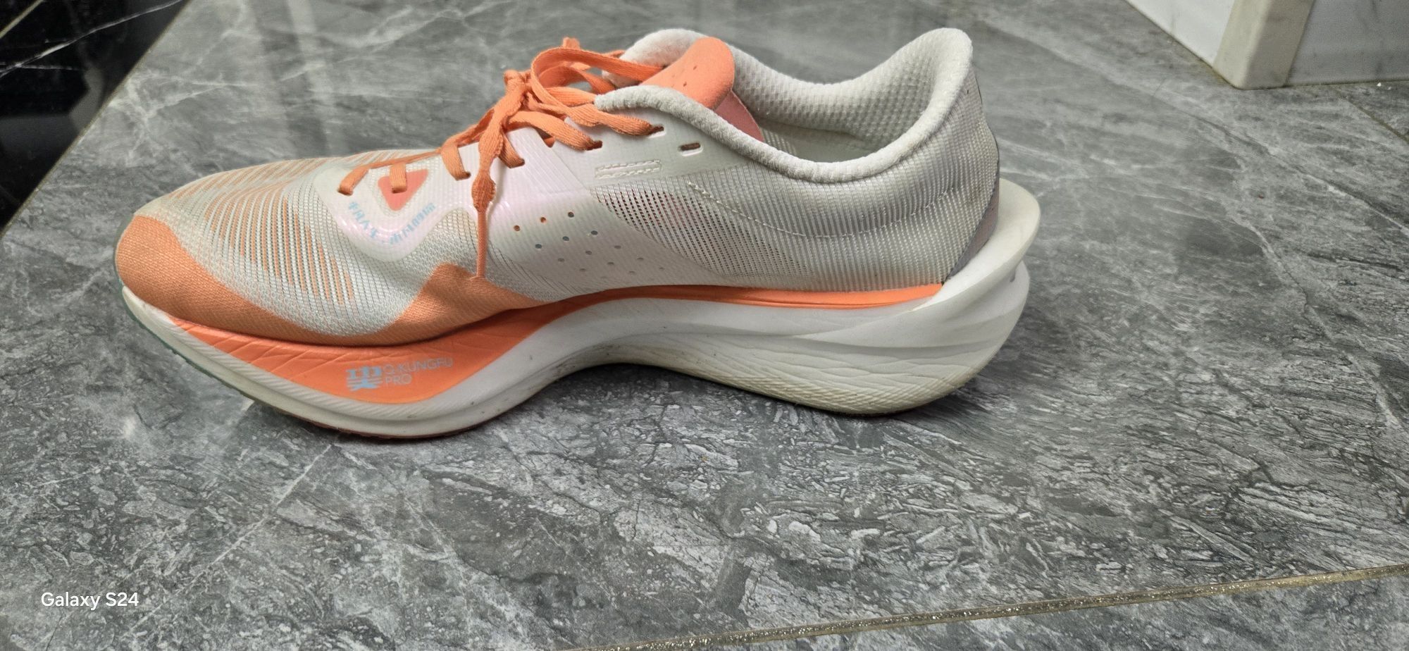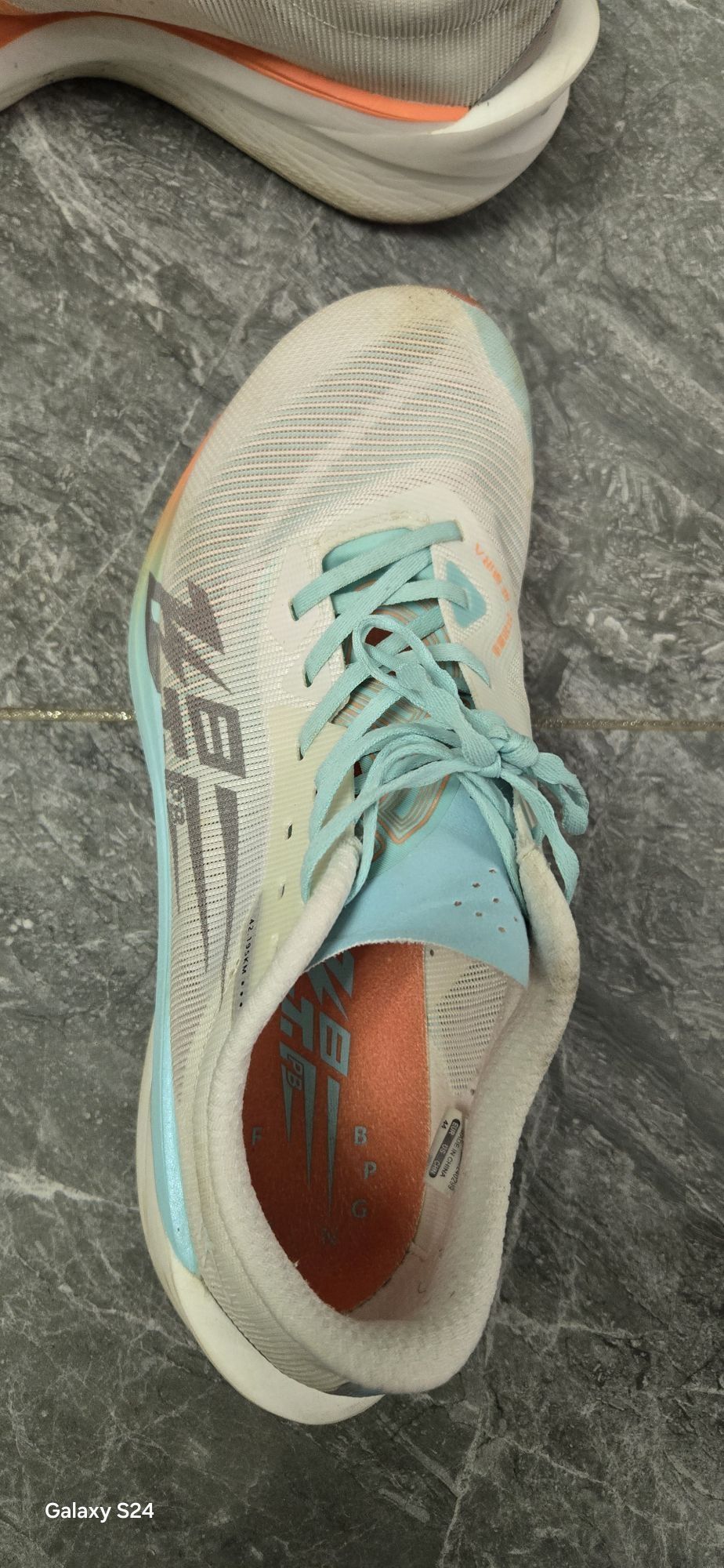 4.0这款鞋采用全掌高强度的加强筋碳板, 动 力进阶。多对比上一代PB3.0的极致前掌跑 法, 这一代PB4.0对于中后掌跑法的人群友好 了很多,虽然上了加强筋, 但是门槛却下探了 不少, 545的配速也能驾驭。 这双鞋子初上脚足弓异物感很强窗,由于它鞋 植内侧收窄后足弓上翻非常明显,这对于低足 弓或者扁平足的人群没有那么友好 (通勤不太 适合) , 长距离下来可能出现磨擦伤害。 总的来说, 值得...