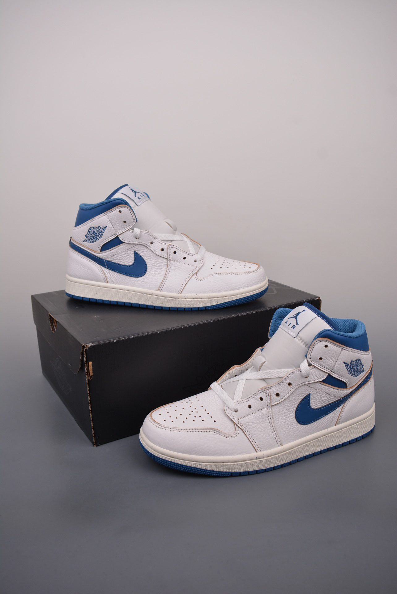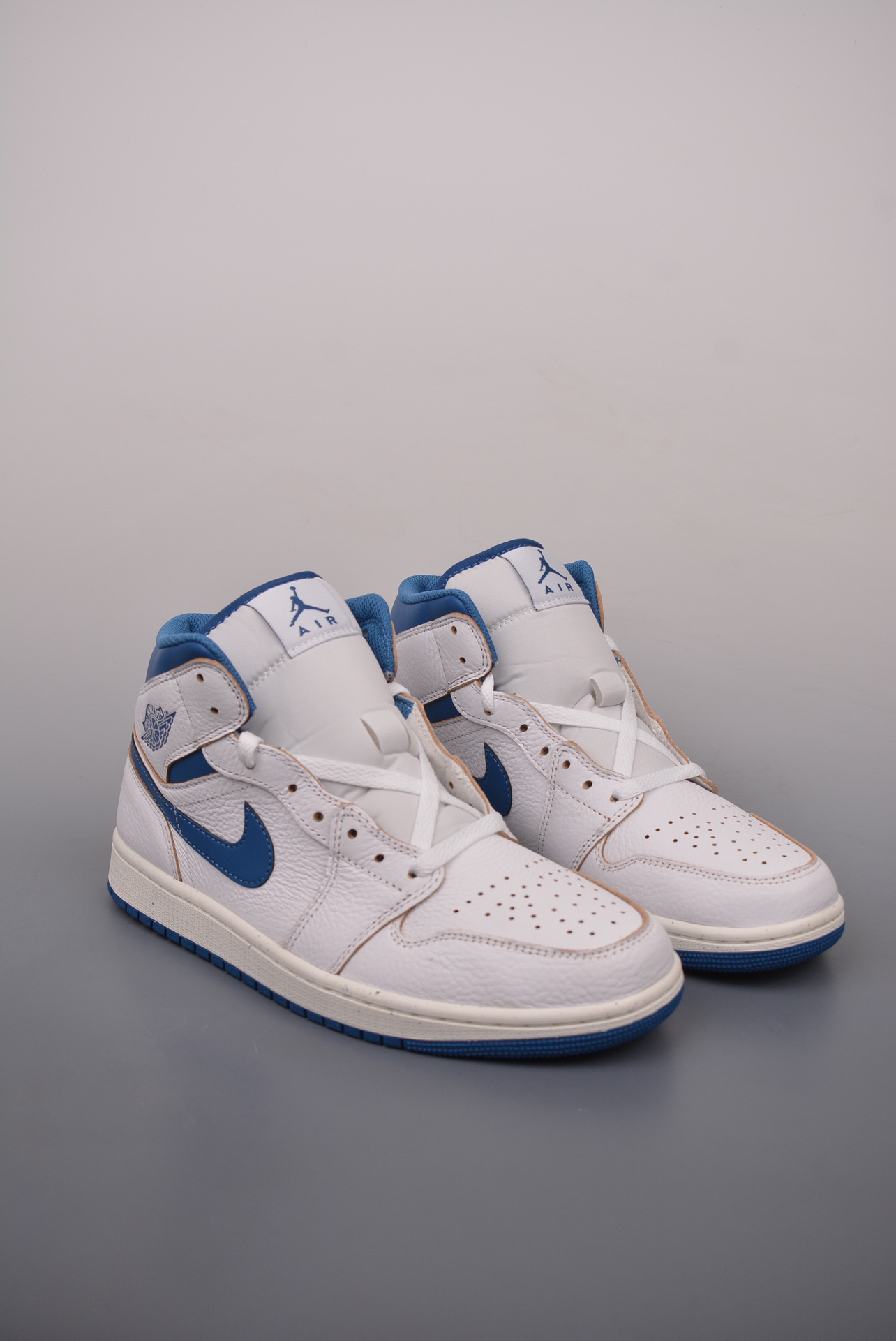 【开学季】Air Jordan 1 复古潮流 运动休闲鞋 中帮/白色/工业蓝