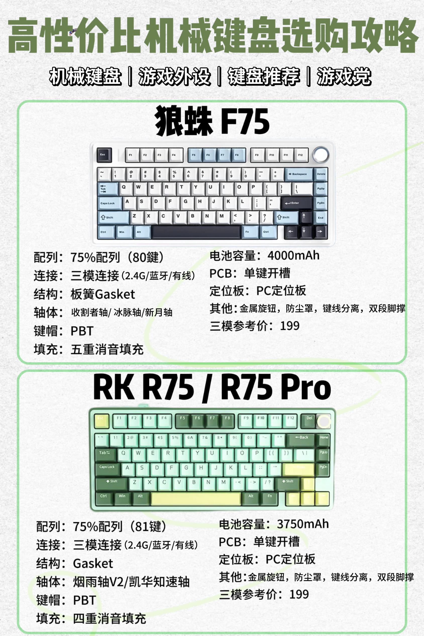 本篇笔记关联了RK R75 三模 机械键盘 81键 全键热插拔 板簧gasket结构 PCB单键开槽 客制化 烟雨轴 麻将音 轻风、AULA/狼蛛 F75 三模 机械键盘 80键 收割者轴 新月轴 冰脉轴 客制化 热插拔 全键 性价比高 冰川蓝 游戏、ATK/艾泰克 VXE V75X 三模 机械键盘 80键 全键热插拔 客制化 背光 极地狐轴 黑曜石轴等商品,为用户提供真实的使用体验和购买参考。