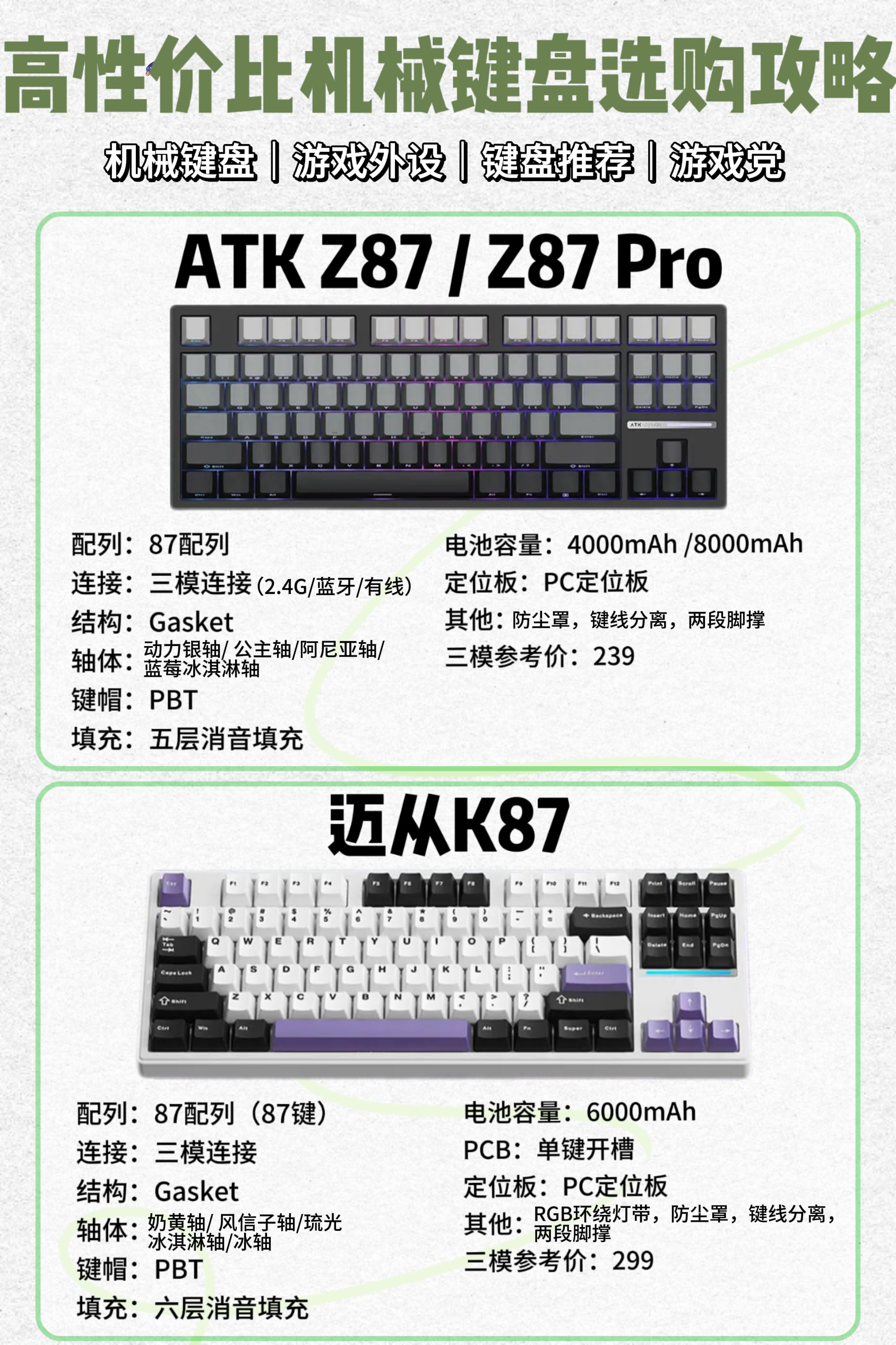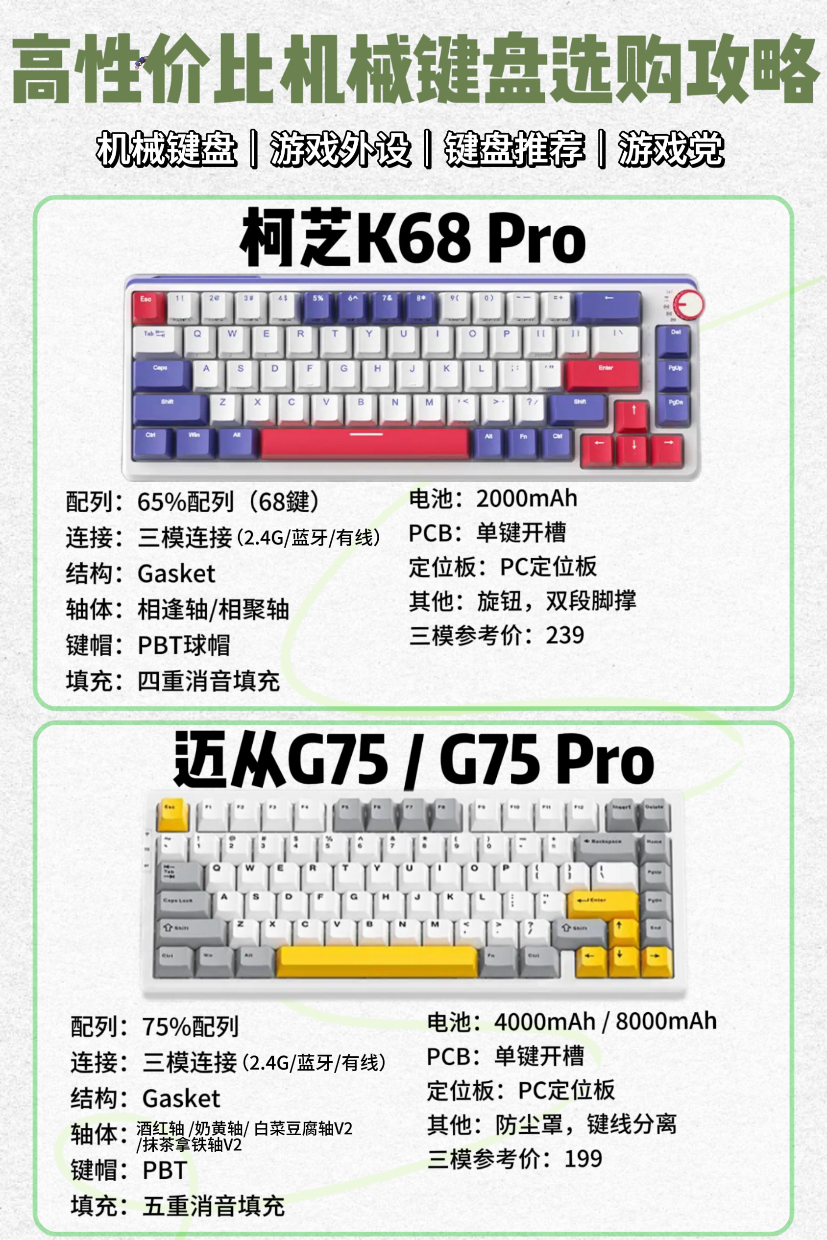 ⌨️18款高性价比机械键盘【选购攻略】,包含了65.、75、85、87、98等配列。游戏办公码字!!!