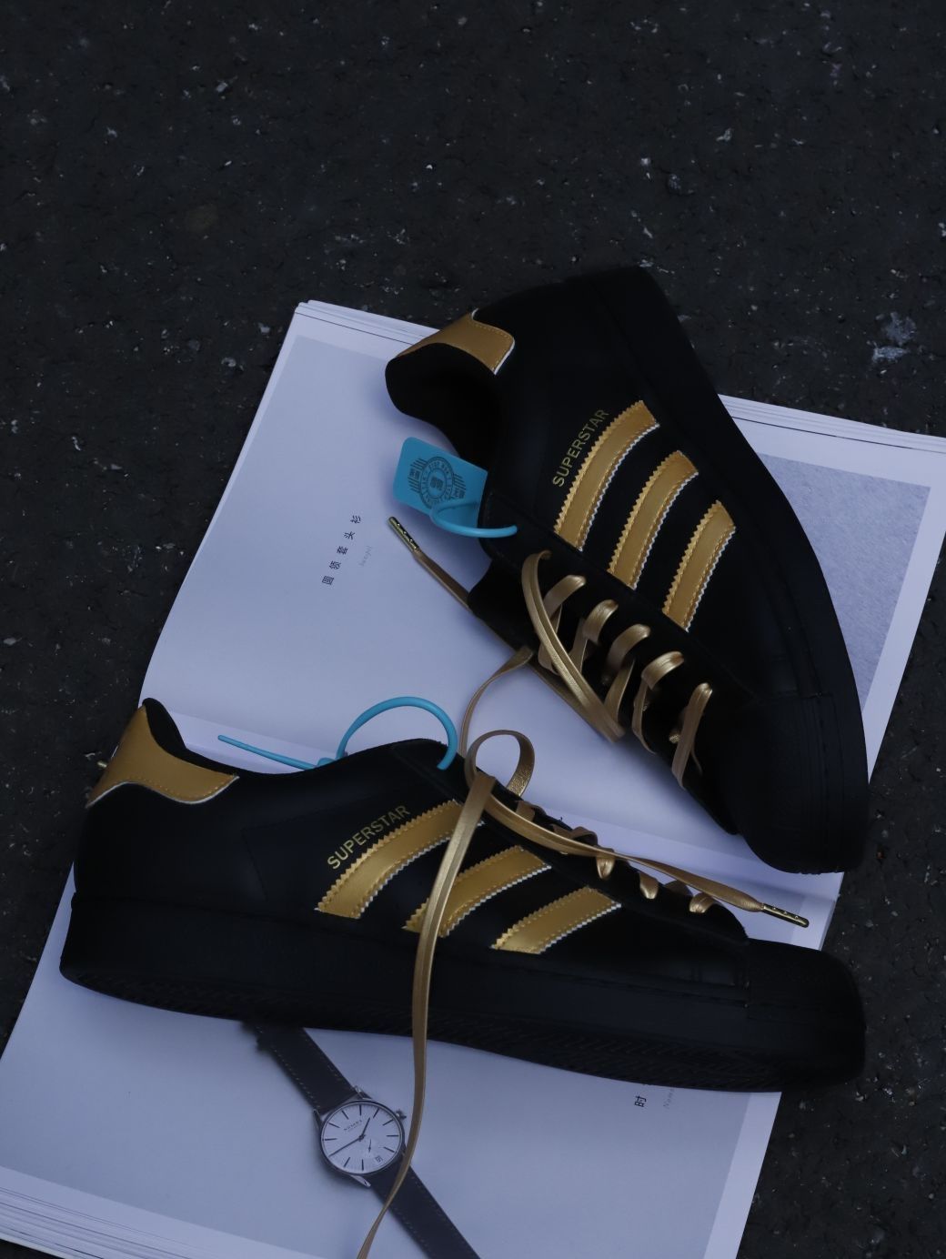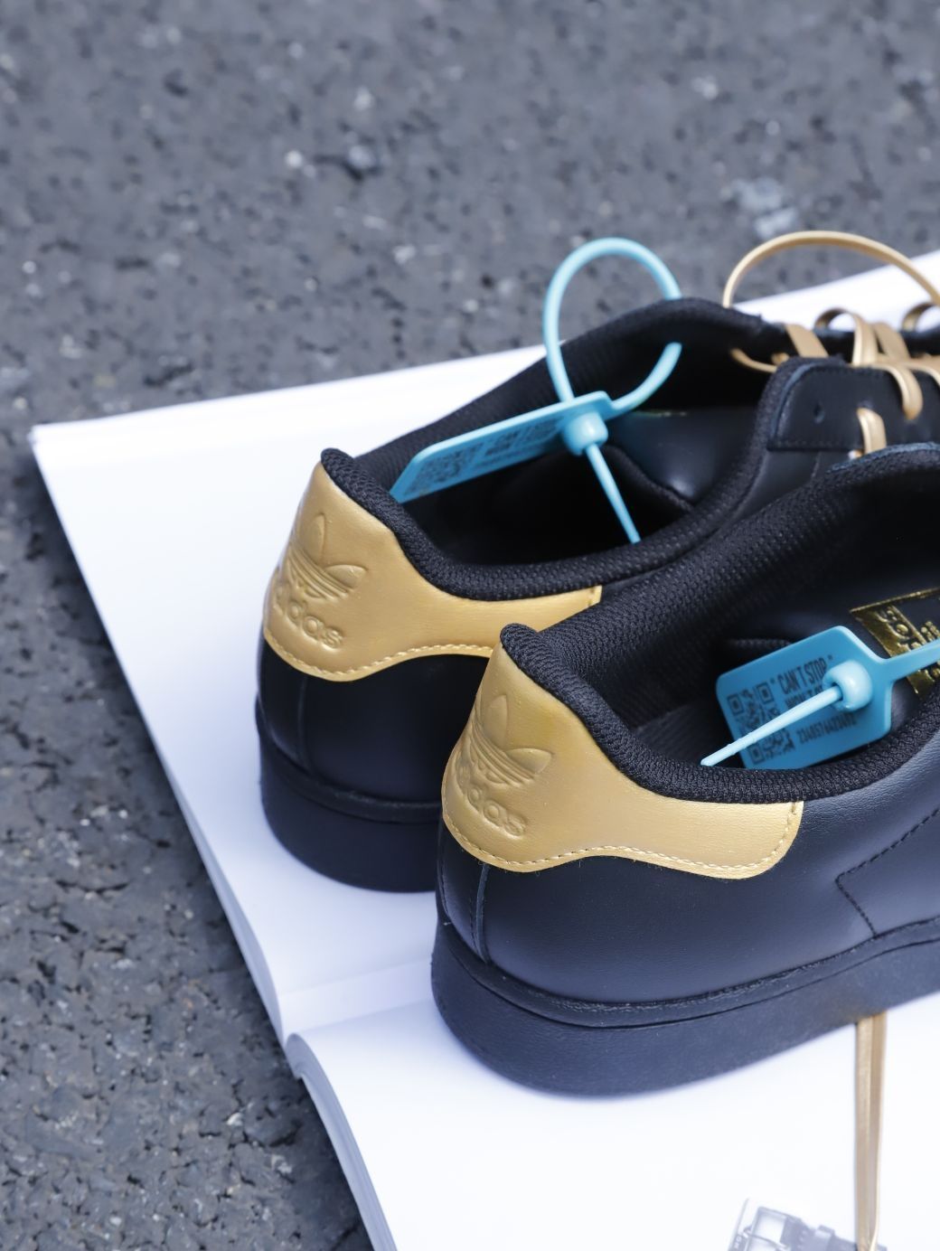 这双是adidas的经典款式 真的设计感满满 贝壳头的设计百搭又好看 特别是这款黑金配色的 整体很高级有质感 鞋子上脚也是非常的nice 透气耐磨方面都是相当不错的 日常穿搭非常简单 搭配什么都好看 真的绝了!!