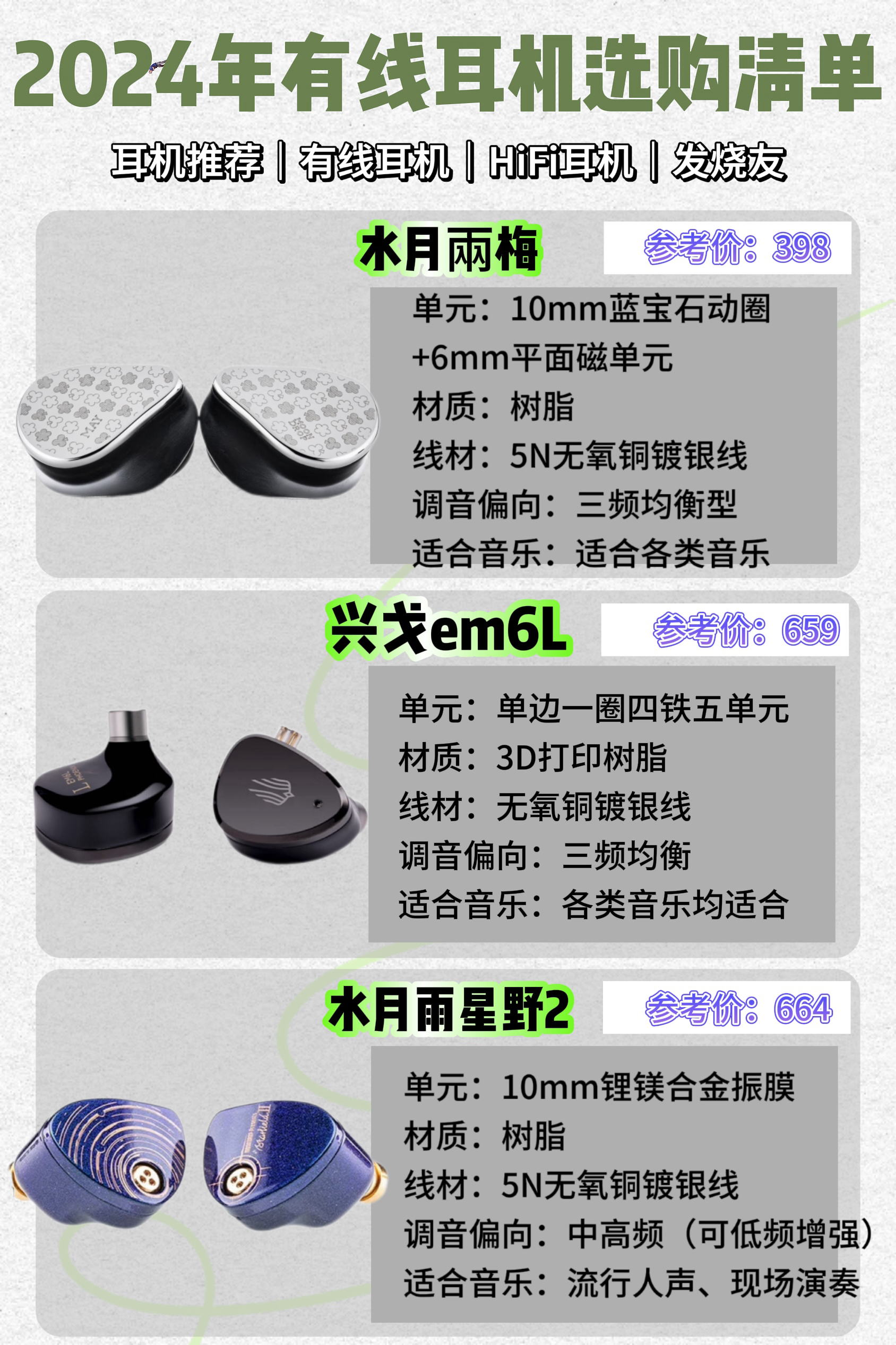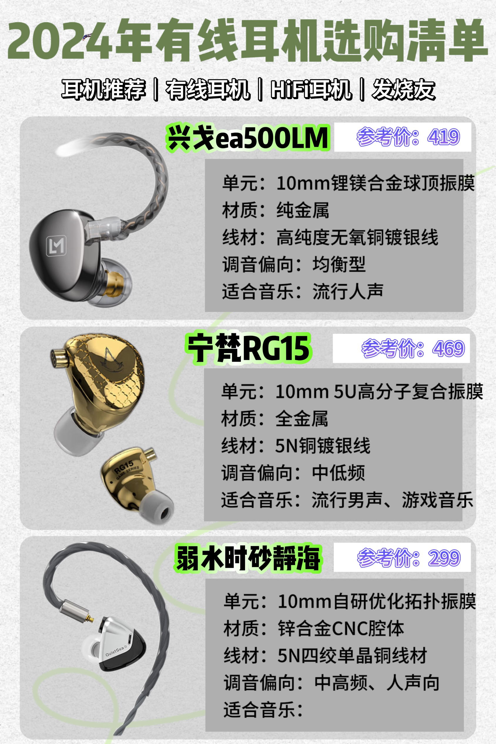 本篇笔记关联了ROSE TECHNICS/弱水时砂 静海 入耳式 有线耳机 高音质 标线 挂耳式 可换线 电竞游戏 不带麦线 拓扑振膜 动圈 月银、SIMGOT/兴戈 桶鲨 EW100 入耳式 有线耳机 游戏音乐 LCP振膜 双腔体动圈耳机电竞 白色、MoonDrop/水月雨 竹II 入耳式 有线 耳机 腔体 HIFI 可换线 高音质 振膜 可调音 铝镁 发烧 动圈 高性能 解码 双插针 千元级 入门级 黑色等商品,为用户提供真实的使用体验和购买参考。
