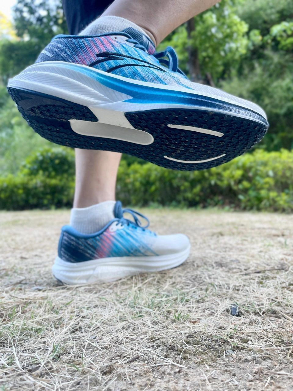 安踏冠军3:预定年度前三的慢跑鞋40码224克🔥 前掌25mm,后掌33mm,坡差8mm 中底材料:氮科技(超临界脂肪族发泡) 1️⃣中底中后掌的内外侧泡棉做了上翻,鞋楦内高外低的设计,使得整个中底内侧的支撑性和稳定性都在水准之上 中底泡棉软中带韧,和自家的pg7旅步比韧一点,比冠军3pro软一点, 2️⃣外底是几乎覆盖全掌的止滑橡胶,没用CPU有点可惜,防滑没啥问题,毕竟也不会穿这鞋去跑间歇鞋面...
