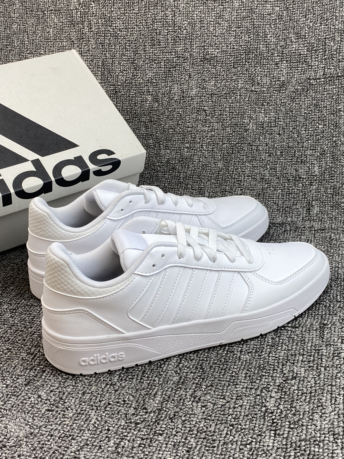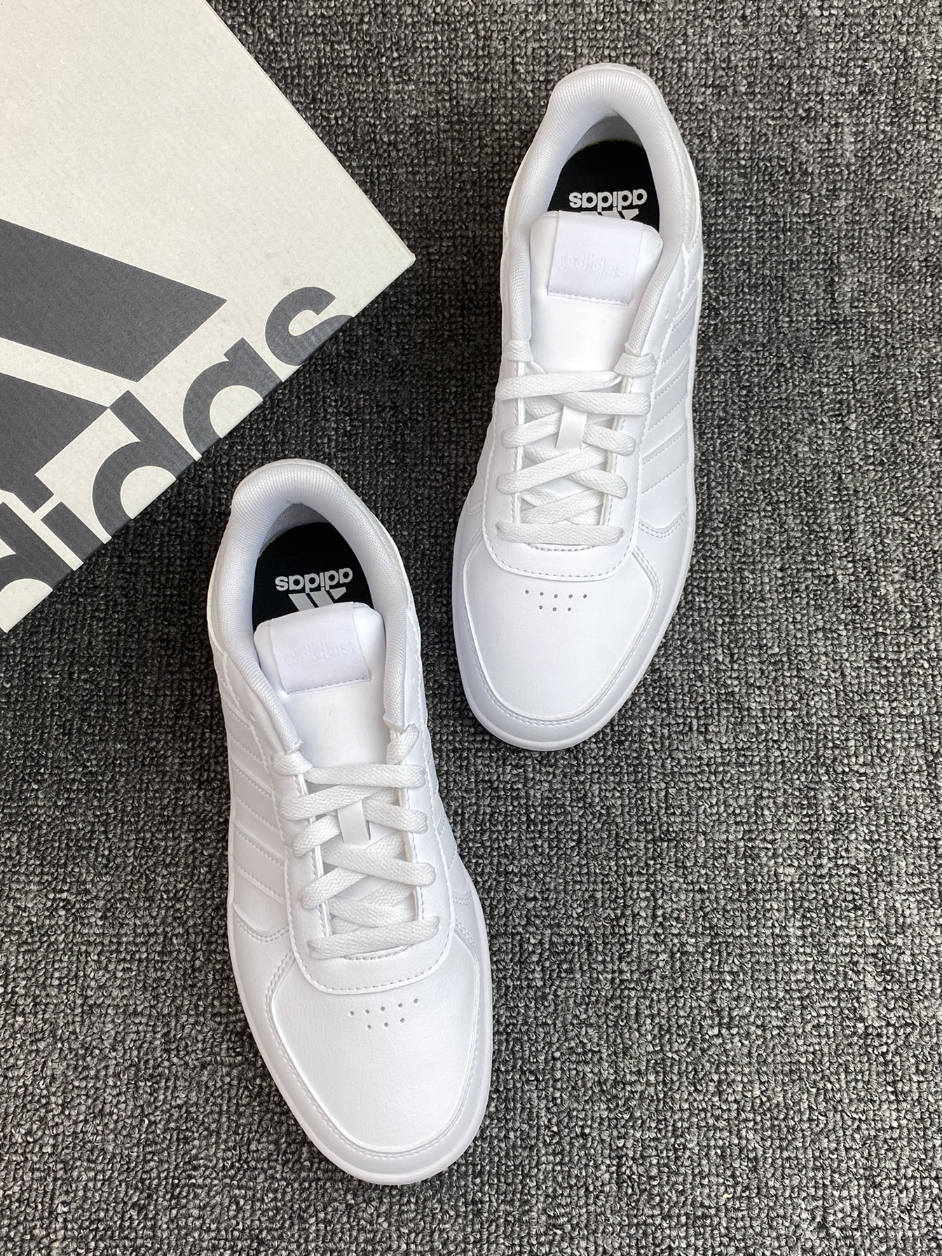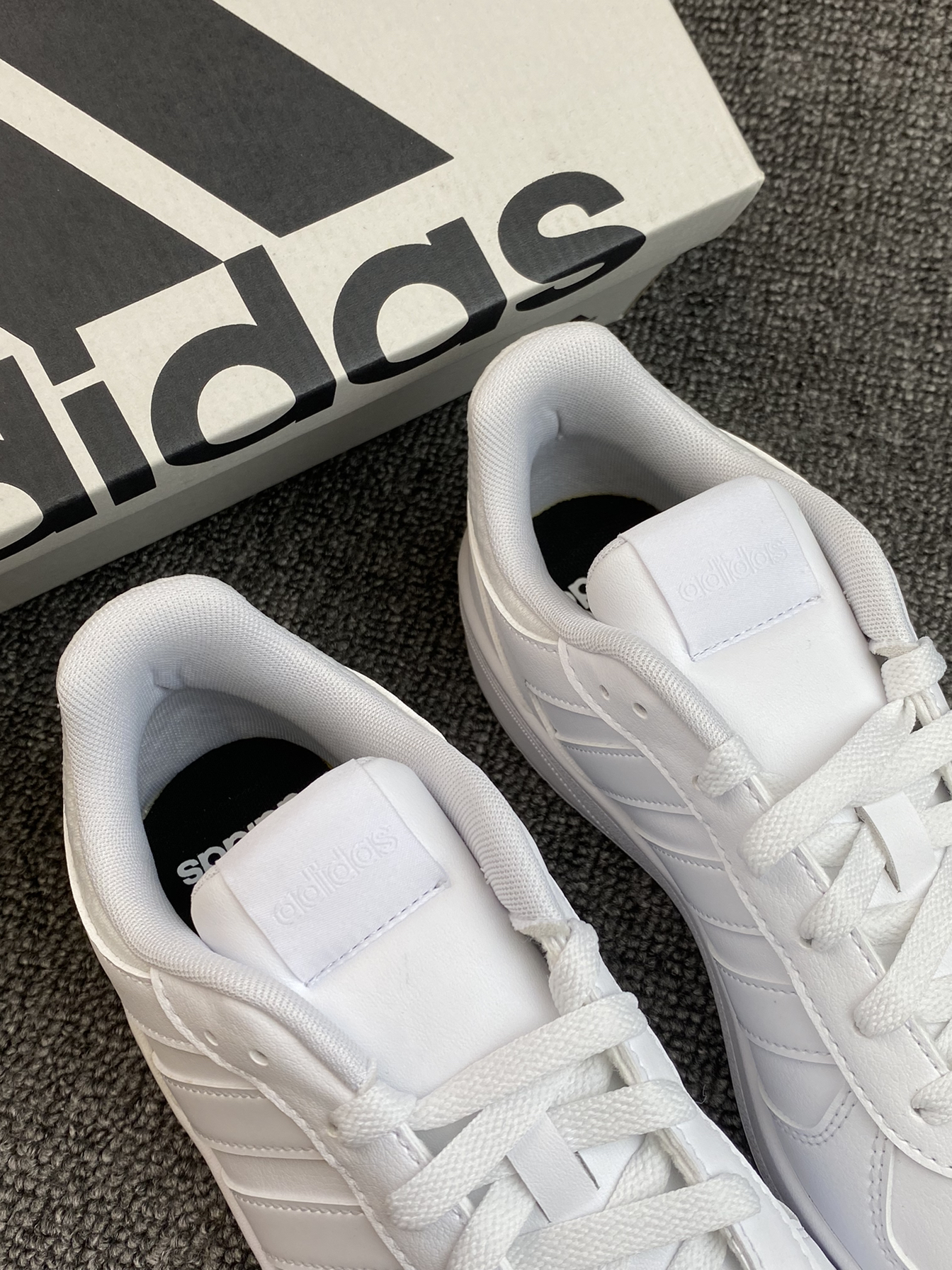 👟Adidas 板鞋 ✨承包我开学季的阿迪小白鞋。纯白色的搭配很干净简约。 🌸鞋面是皮革材质的,就算是下雨天也能穿,而且也蛮好打理。脚感也很舒适,平常简单的运动也能驾驭住。后跟部分有织物包裹,软软的很好的保护了脚后跟。 💫尺码方面我按平常穿的选择的,刚刚好~开学搭一下这双小白鞋很酷~