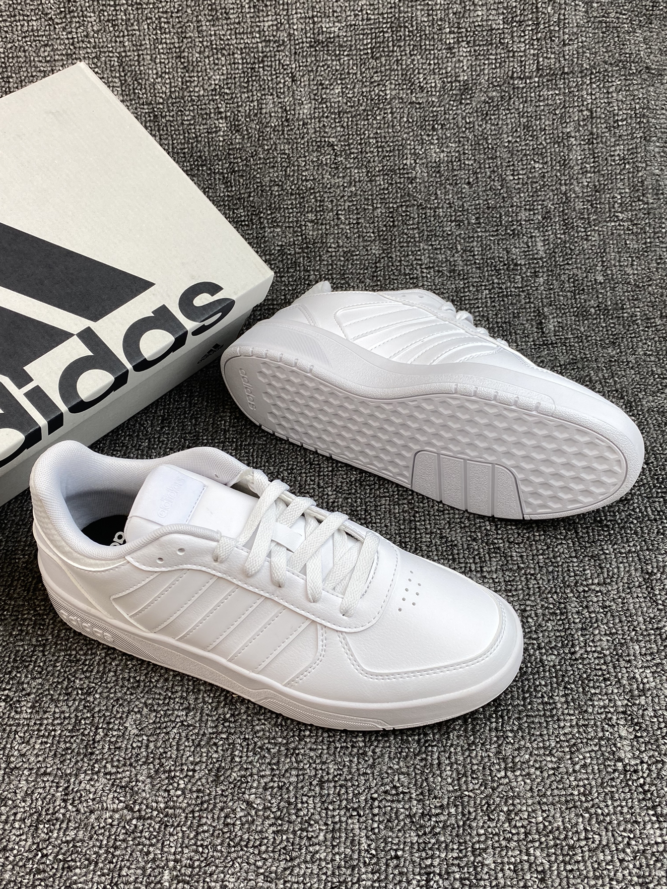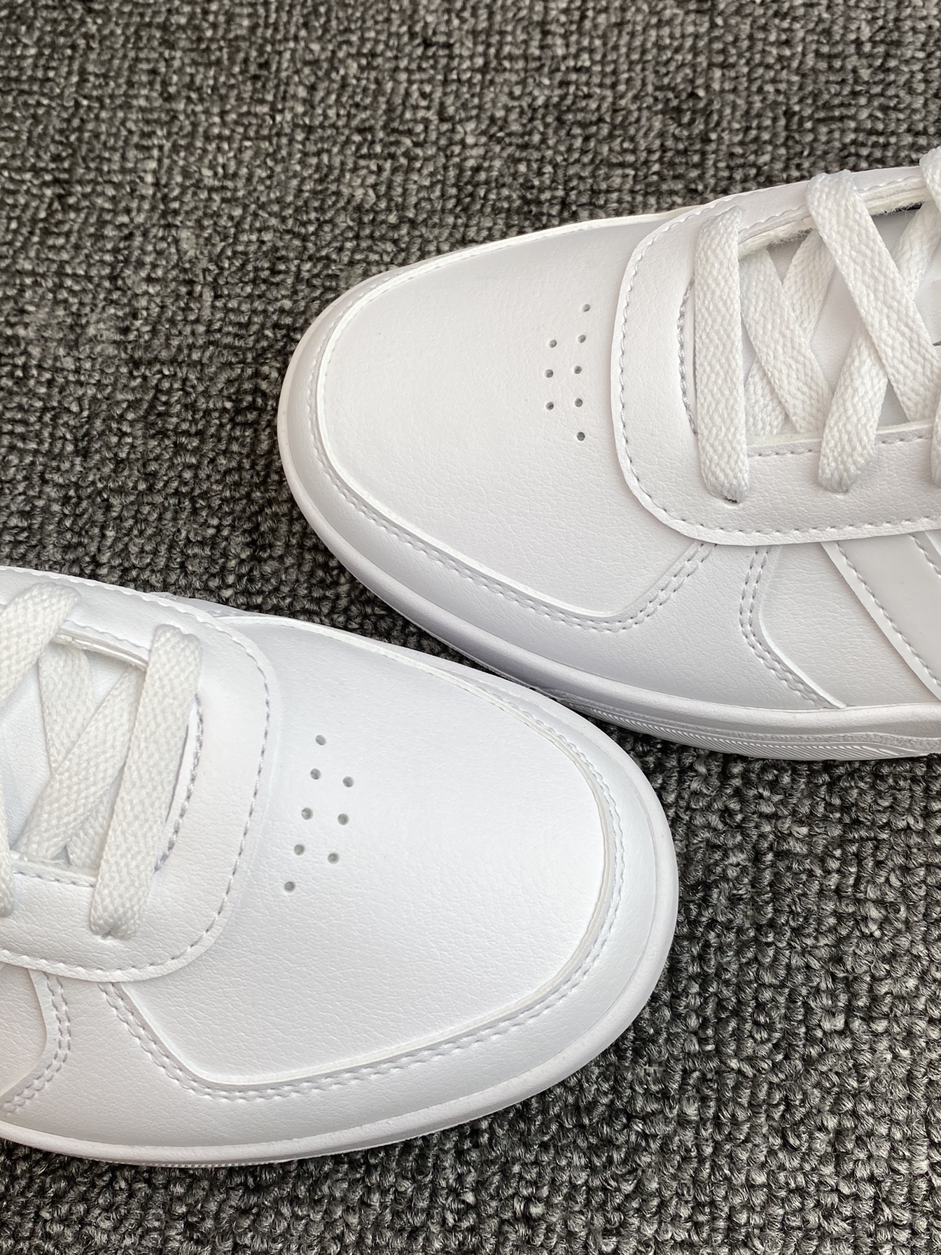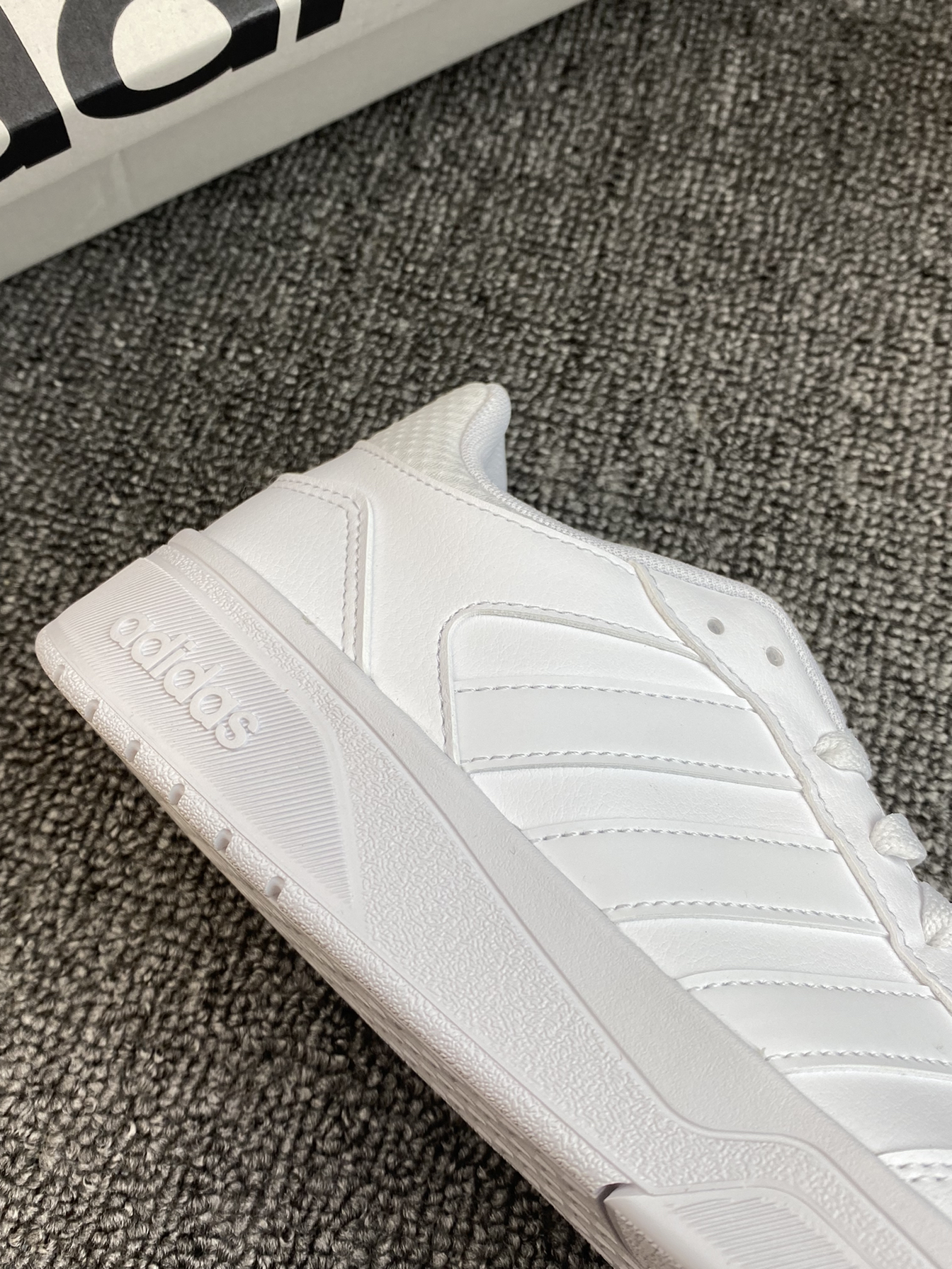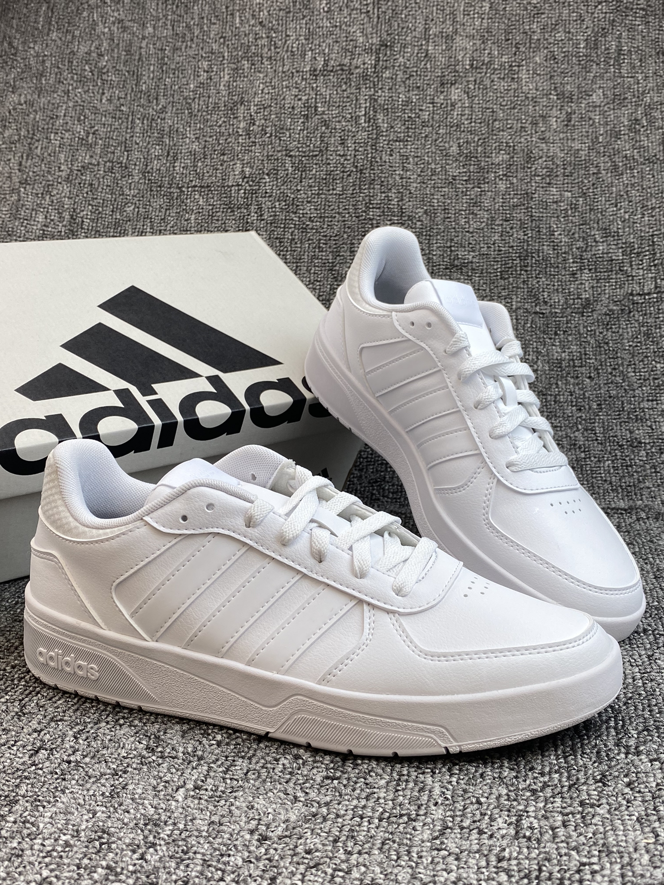👟Adidas 板鞋 ✨承包我开学季的阿迪小白鞋。纯白色的搭配很干净简约。 🌸鞋面是皮革材质的,就算是下雨天也能穿,而且也蛮好打理。脚感也很舒适,平常简单的运动也能驾驭住。后跟部分有织物包裹,软软的很好的保护了脚后跟。 💫尺码方面我按平常穿的选择的,刚刚好~开学搭一下这双小白鞋很酷~