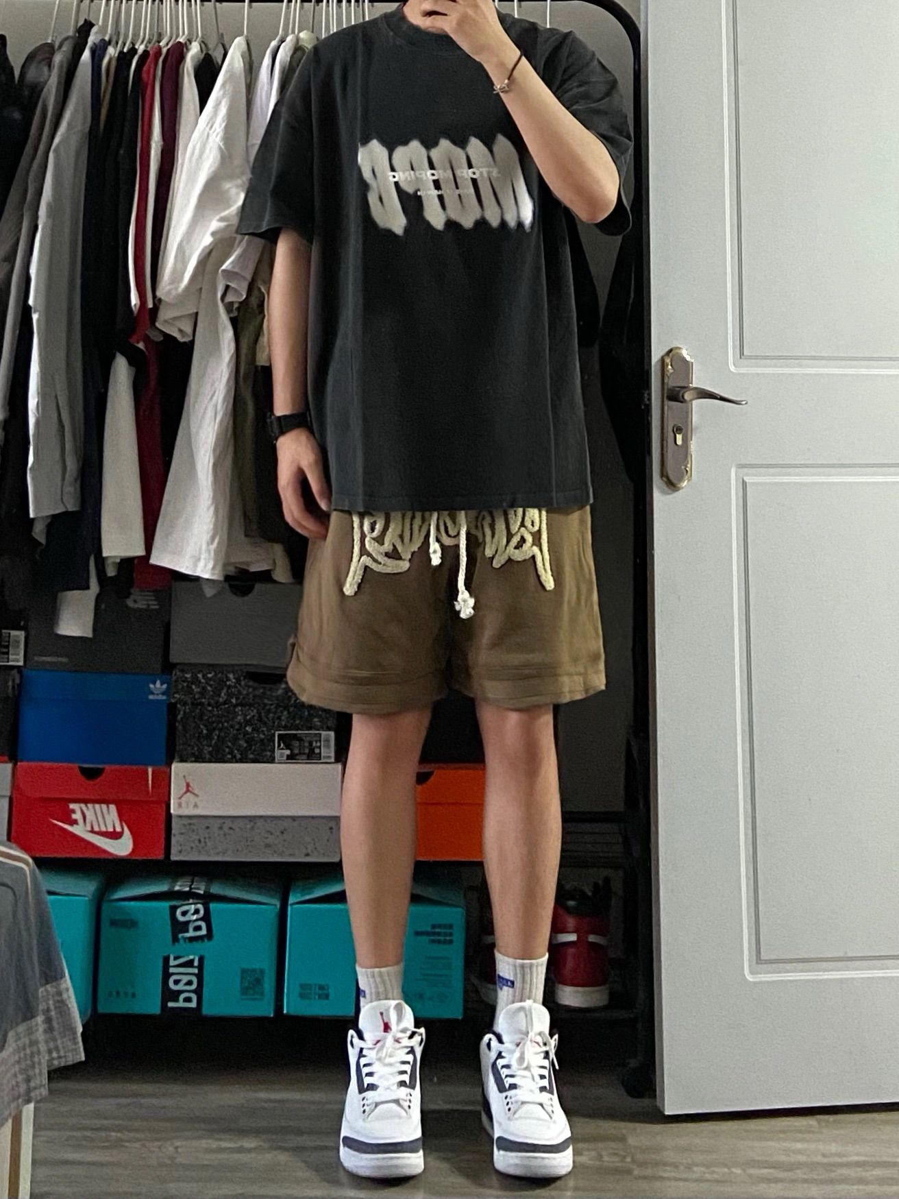 『今天搭配的是短袖➕休闲短裤』😜 - ▪️上身选择一件灰色插肩短袖 灰色百搭好看 版型挺好滴 🩳:slamble ▪️下身选择一条休闲短裤 米黄色真滴有惊艳到我耶 面料重磅 版型挺好看滴 纯色设计 简约百搭 小logo 经典又好看 日常休闲还是运动都很ok 👧丨171cm&58kg丨🩳丨M码
