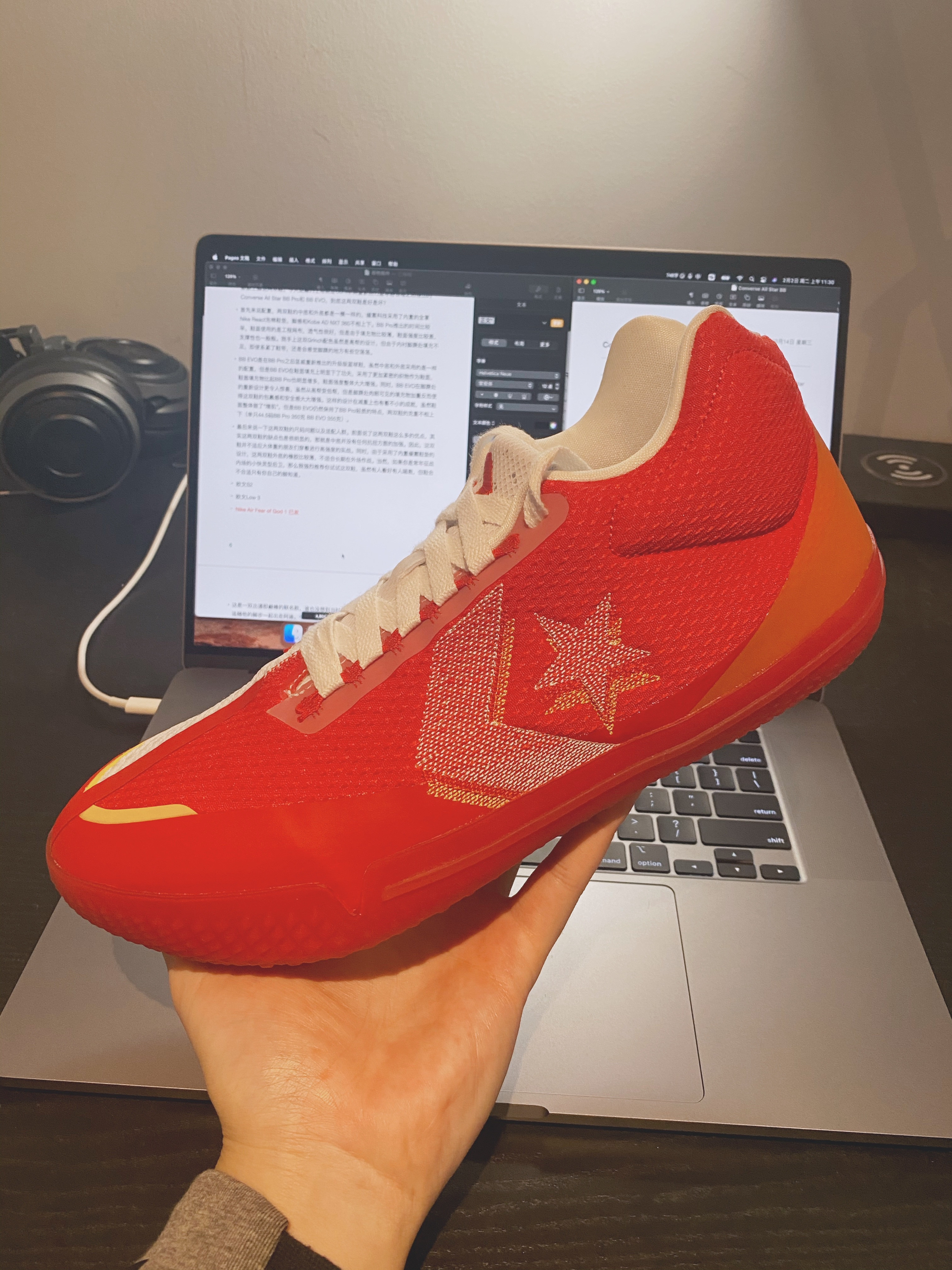 匡威 pro bb ev 这双鞋我最开始想要尝试的理由是他的颜值真的非常高,这种低帮的鞋型深得我心⭐️ 适应这双鞋,我大约花了两场的时间,因为他让我的脚有点酸,因为它的足弓支撑和抗扭比较弱,因此我给他搭配了一副 nw 鞋垫,组成了最强最强实战鞋🤩