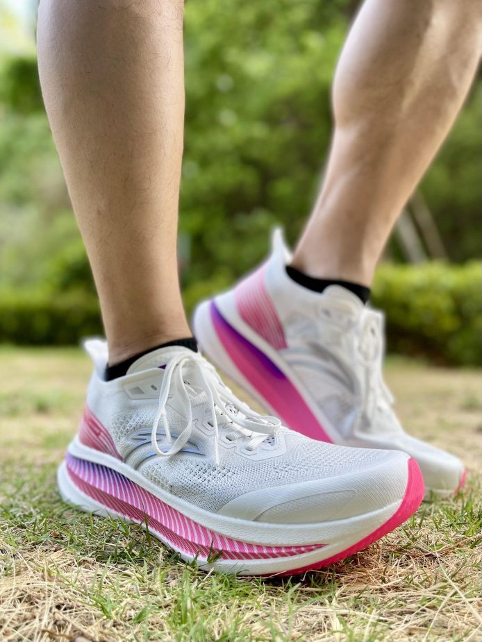 这双马力看得出安踏花了很多心思去设计,可惜用力过猛,堆料太足,让鞋子重量有点失去控制,但不可否认,这双鞋慢跑还挺好,而且耐用 1️⃣43码: 282克(偏重) 2️⃣中底高度:前掌31毫米,后掌39毫米 3️⃣中底材料:氮中底+曲率较平的全掌碳板 4️⃣外底: 非常优秀,cpu材质,防滑耐磨都很好 5️⃣鞋面:略厚,有大网孔,透气中等,但质感偏硬, ✅马力的优点: 这双鞋跑起来缓震极限很高,脚感偏...