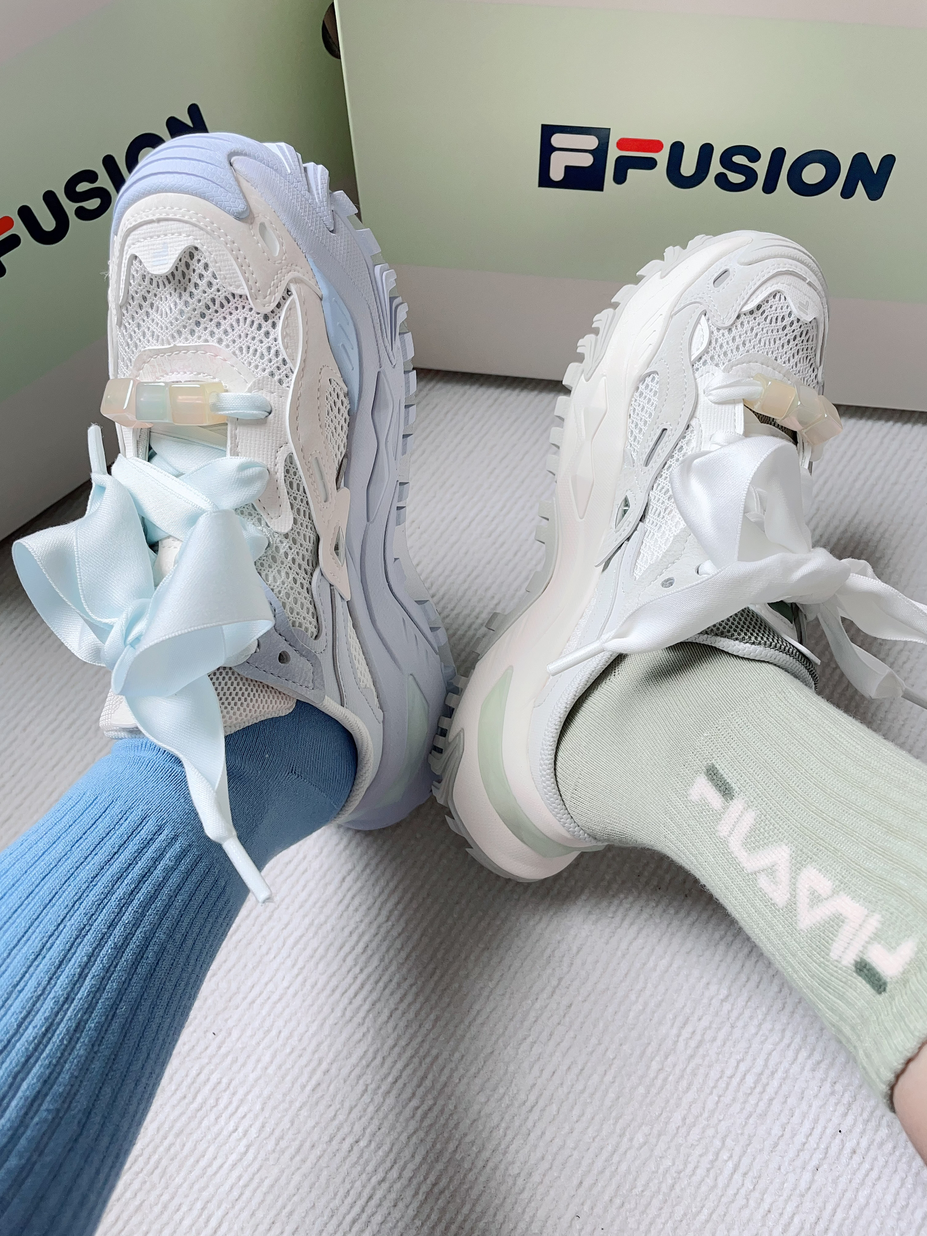 极限二选一/夏日小清新甜美少女感爆棚的 老爹鞋 FILA斐乐新款硬糖。,老爹鞋 一脚蹬半拖老爹鞋鞋 紫蓝白 vs 灰奶绿 两个配色都好好看耶 两个配色都喜欢 温温柔柔 清清新新~~满满的治愈系火 宽面丝带她的鞋带 搭配起来少女感满满的 穿起来妥妥夏日多巴胺小甜妹一枚 七夕礼物節送人最合适啦 没有那个女生能拒绝 吧 尺码大小和平常一样 穿起来并不会脱跟 四五厘米的增高 显瘦显腿长四