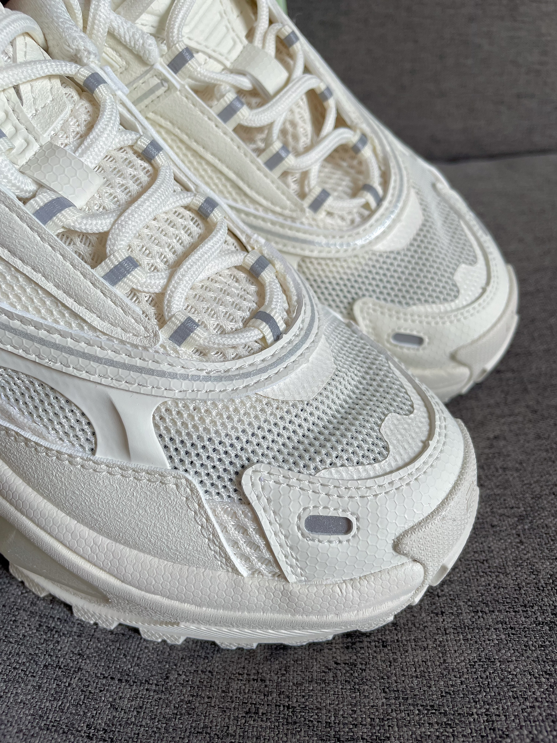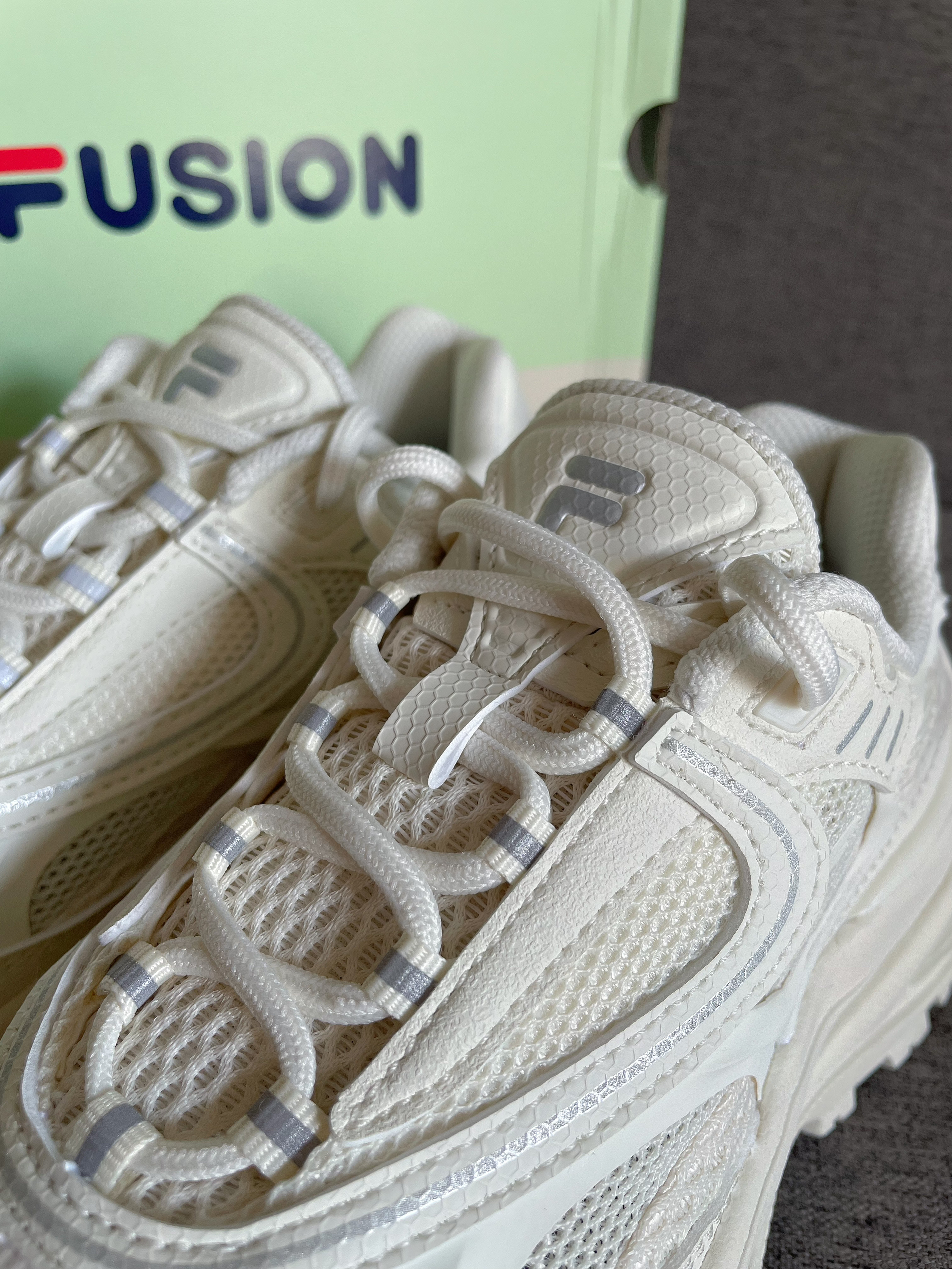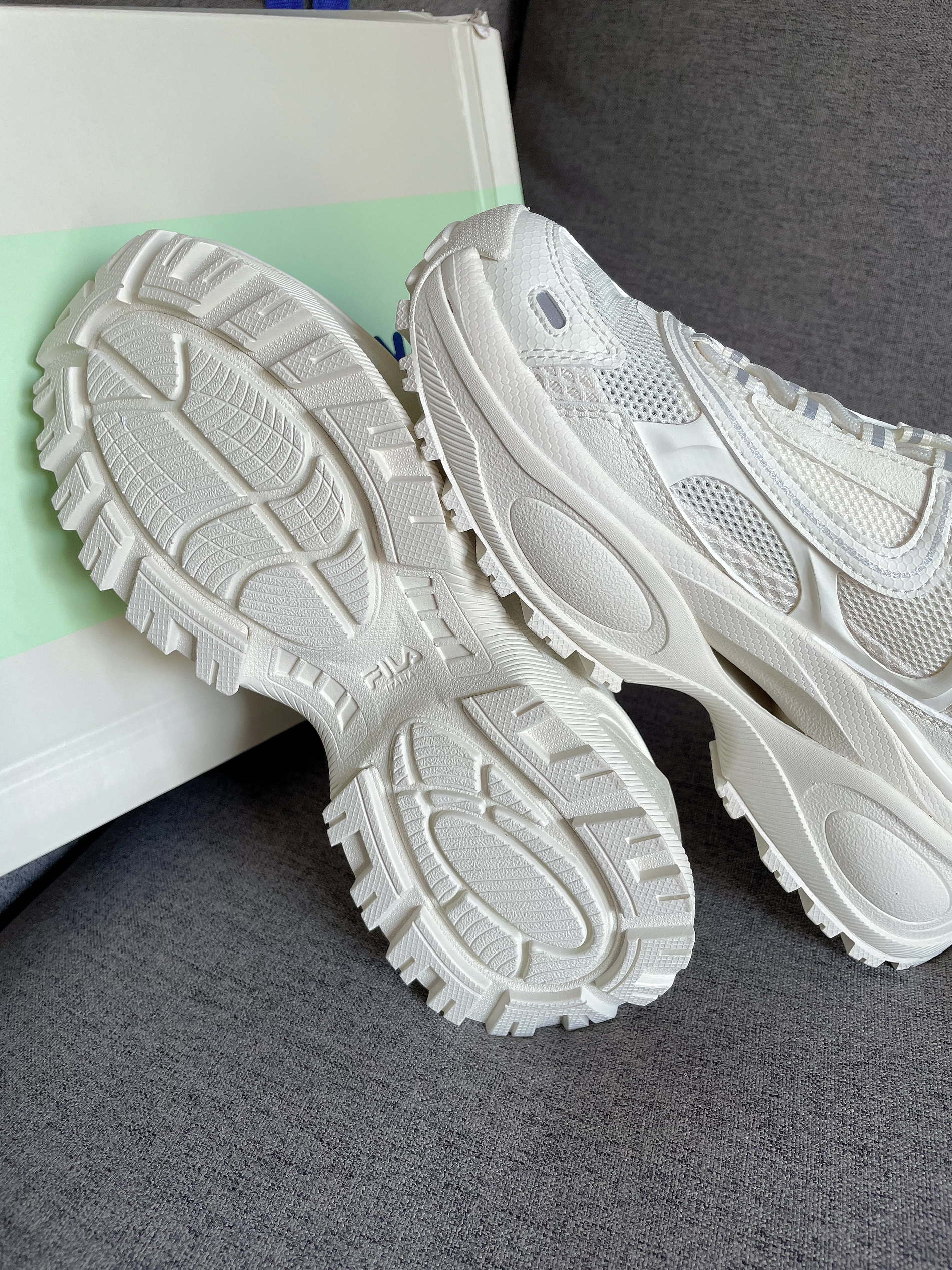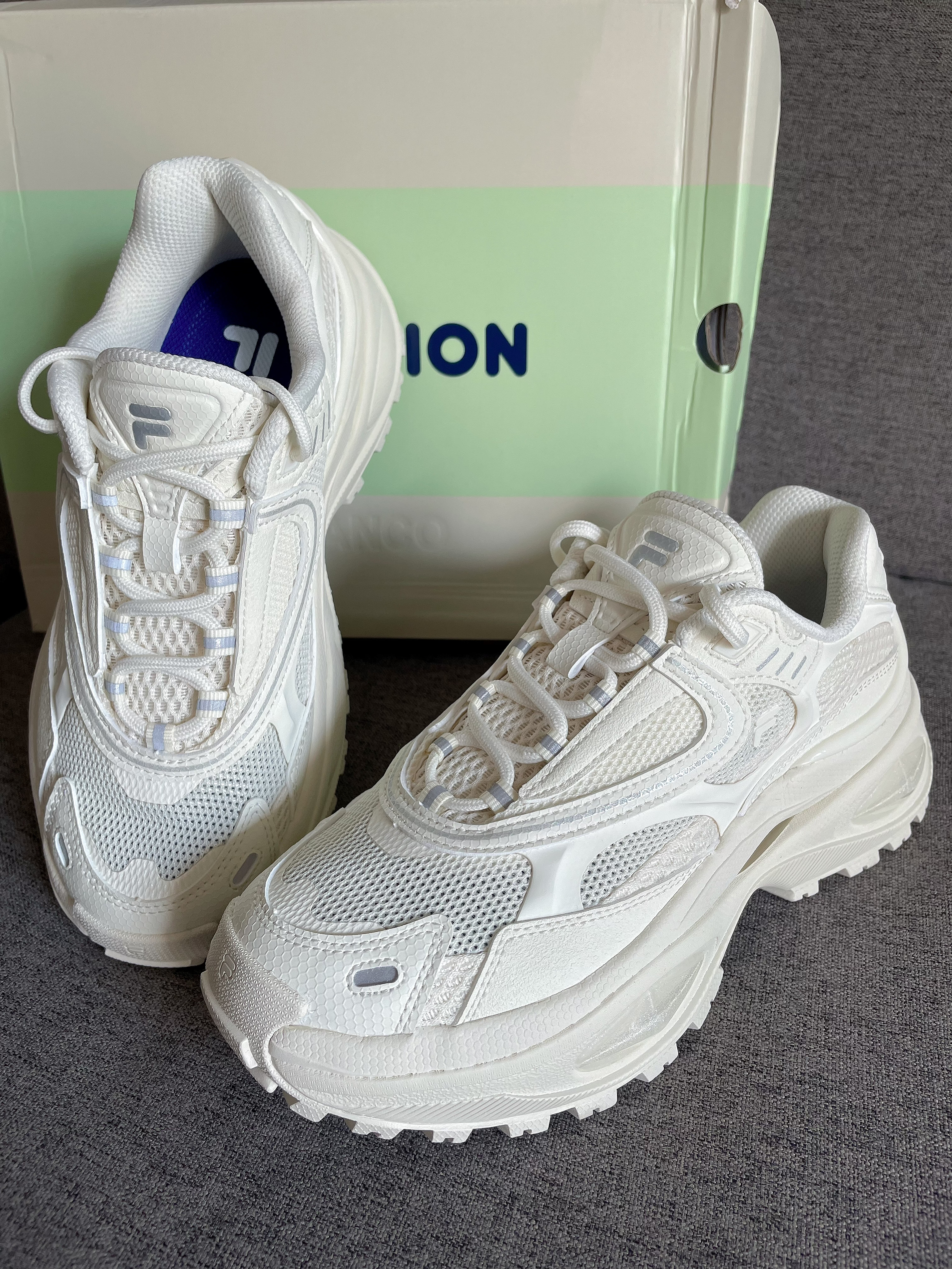 FILA斐乐这双奶油初雪白色系太好看啦🫣 双网孔拼接革料太合适夏季不过了 实物奶呼呼的很温柔~🌸🌸🌸 就算我随便搭个牛仔裤 也不错诶! 鞋子的版型也很正 很有层次感 自带5厘米的增高,hin有踩屎感 深纹路的橡胶大底搭配轮胎一样的纹路 有水的路面也不会打滑心 鞋面银灰3M反光条小设计很不错哦