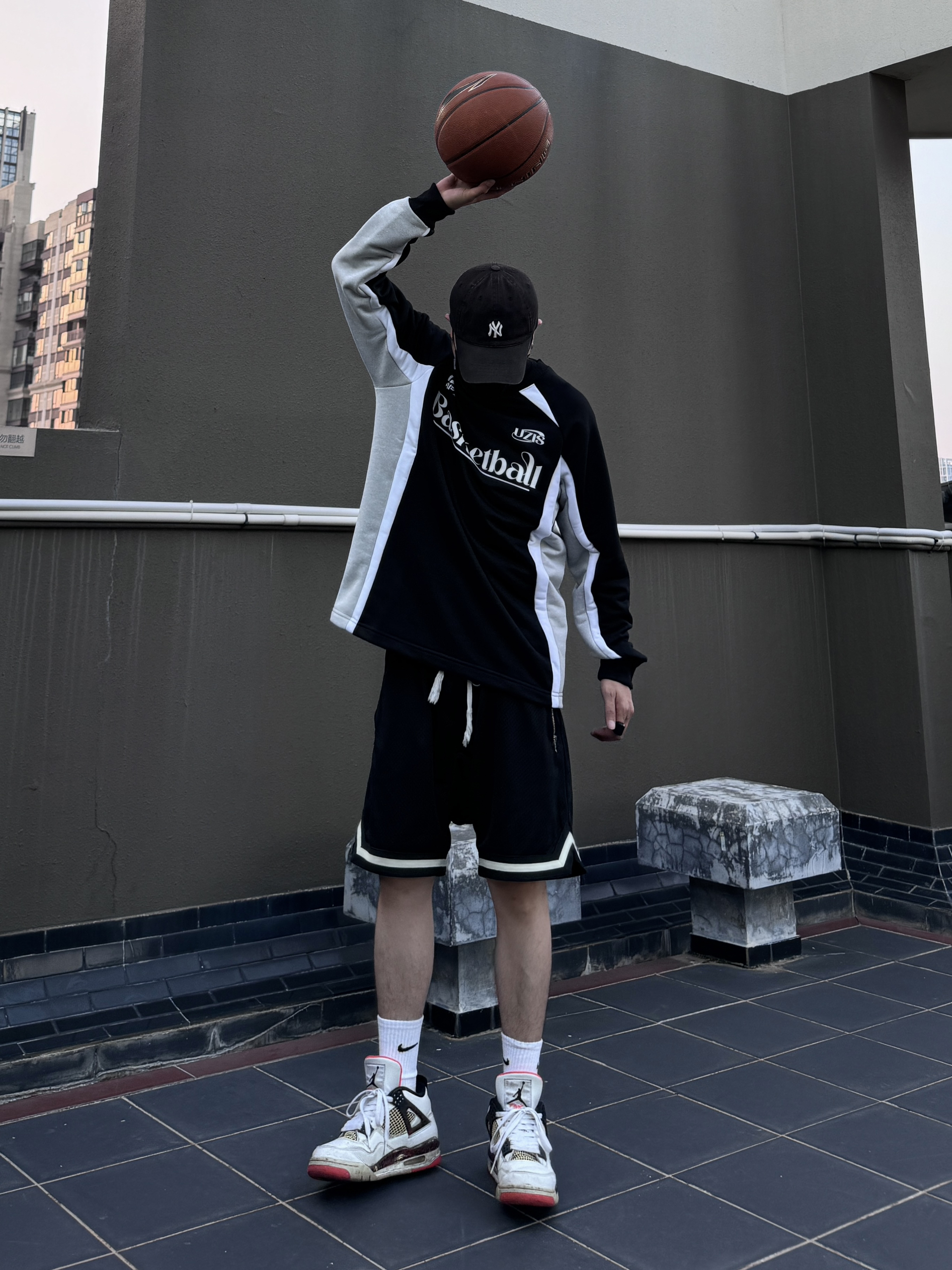 身高|体重:170/60kg 🧍♂️ 穿搭风格:街头风美式风日常通勤休闲运动 👔 上衣:有志者美式拼接运动长袖 👖 下装:透气运动短裤 👟 鞋子:Jordan3 热熔岩