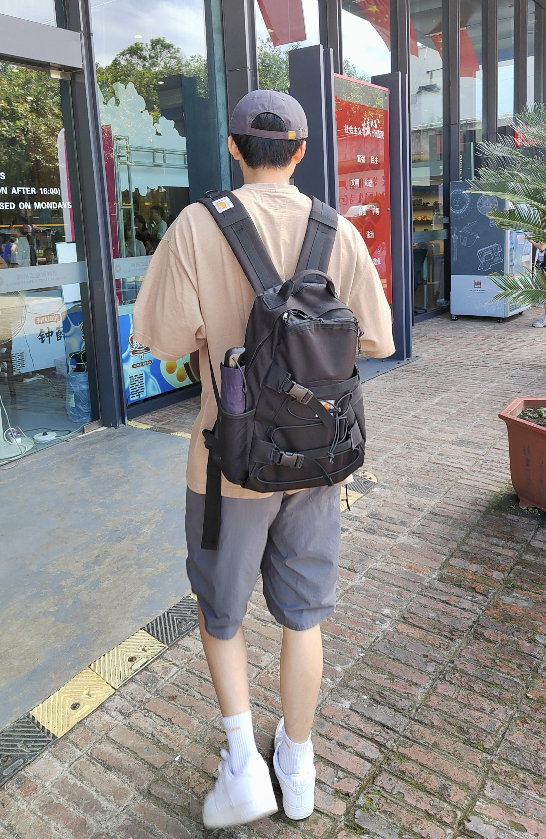 本篇笔记关联了Carhartt 再生聚酯纤维品牌徽标贴片装饰机能风工装风双向拉链抽绳插扣开合可调节肩带滑板包双肩包 黑色等商品,为用户提供真实的使用体验和购买参考。