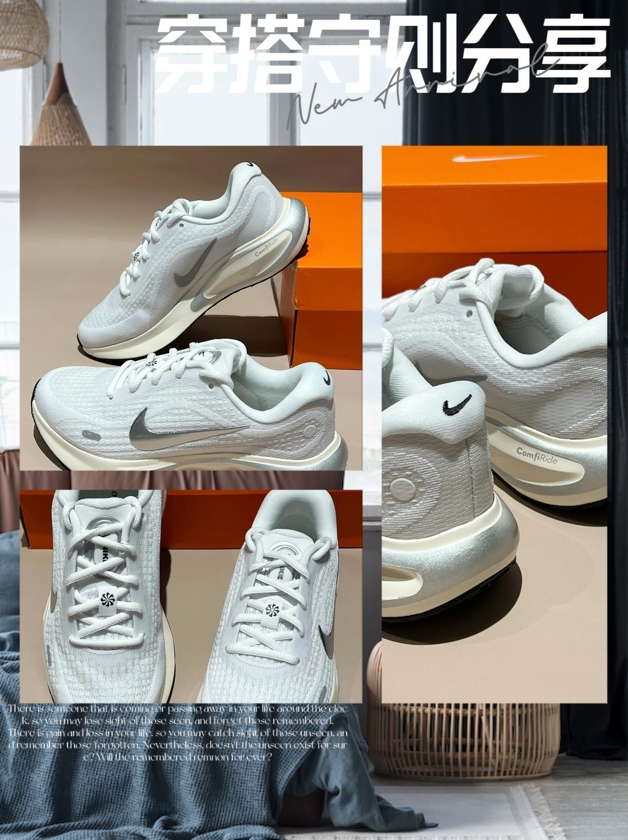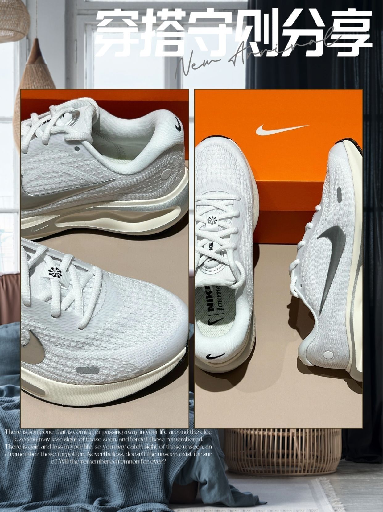 本篇笔记关联了Nike Journey Run 跑鞋 缓震轻便防滑耐磨休闲简约训练长跑短跑织物运动贴合圆头支撑 女款/白色/金属银等商品,为用户提供真实的使用体验和购买参考。