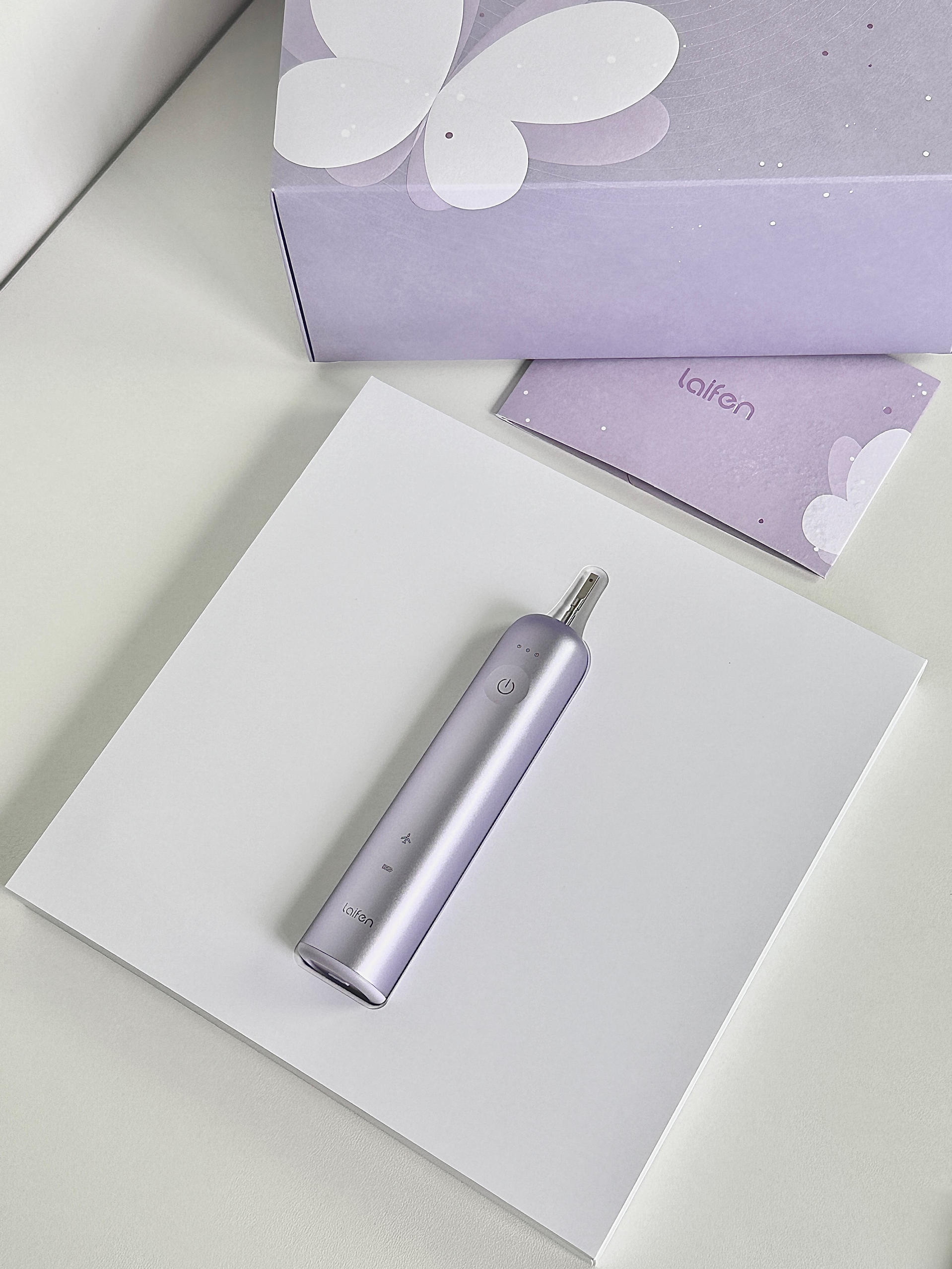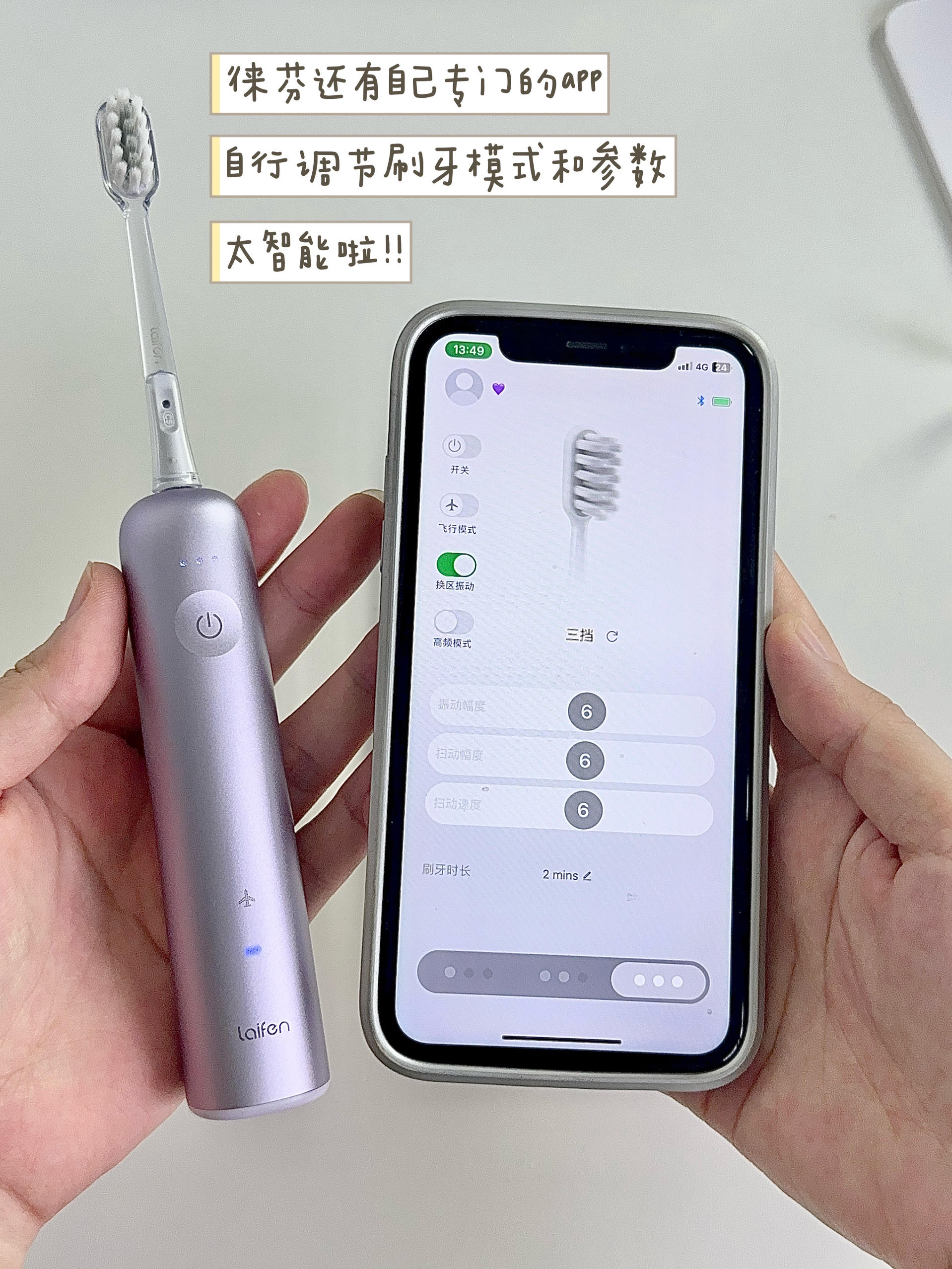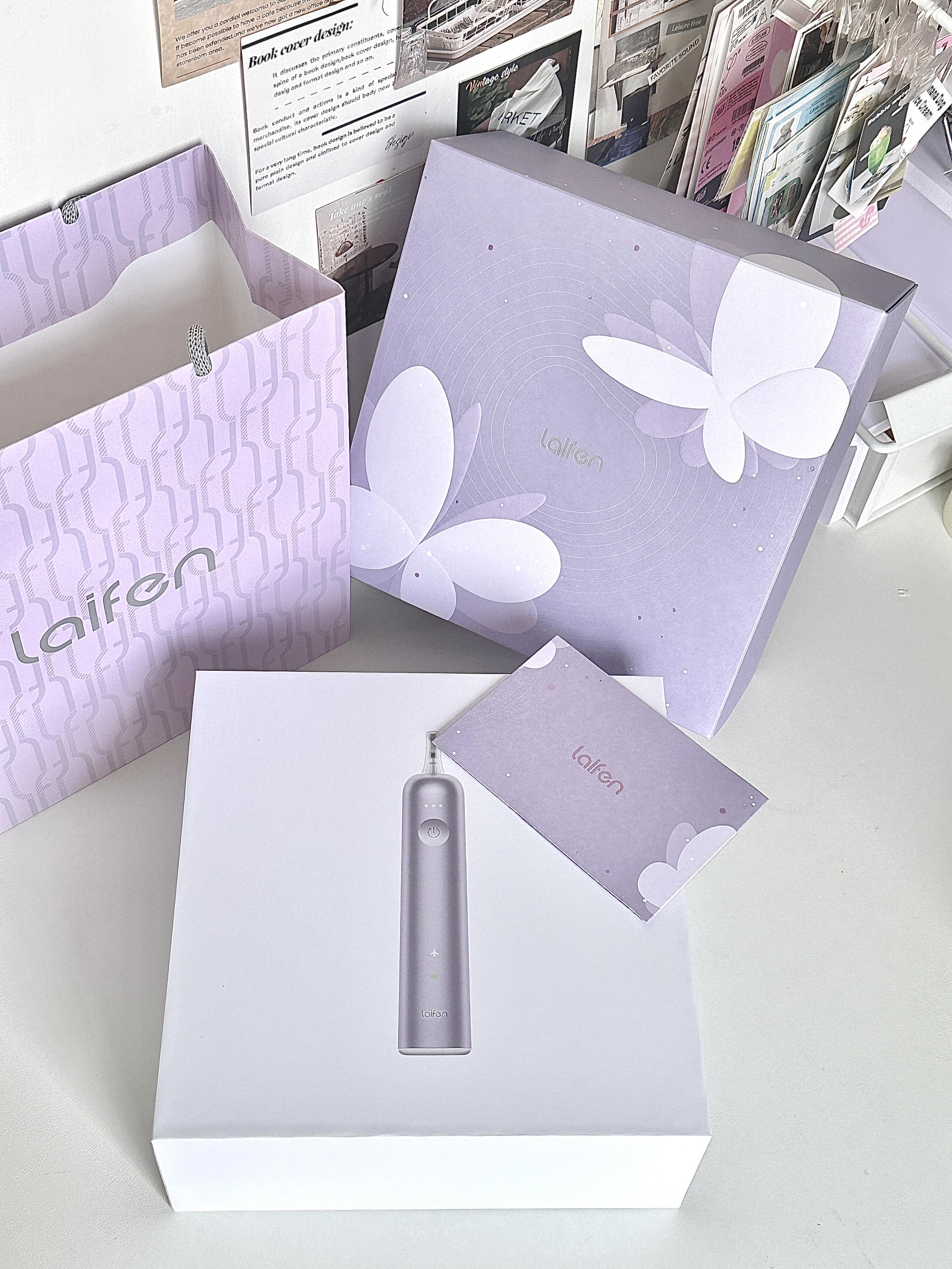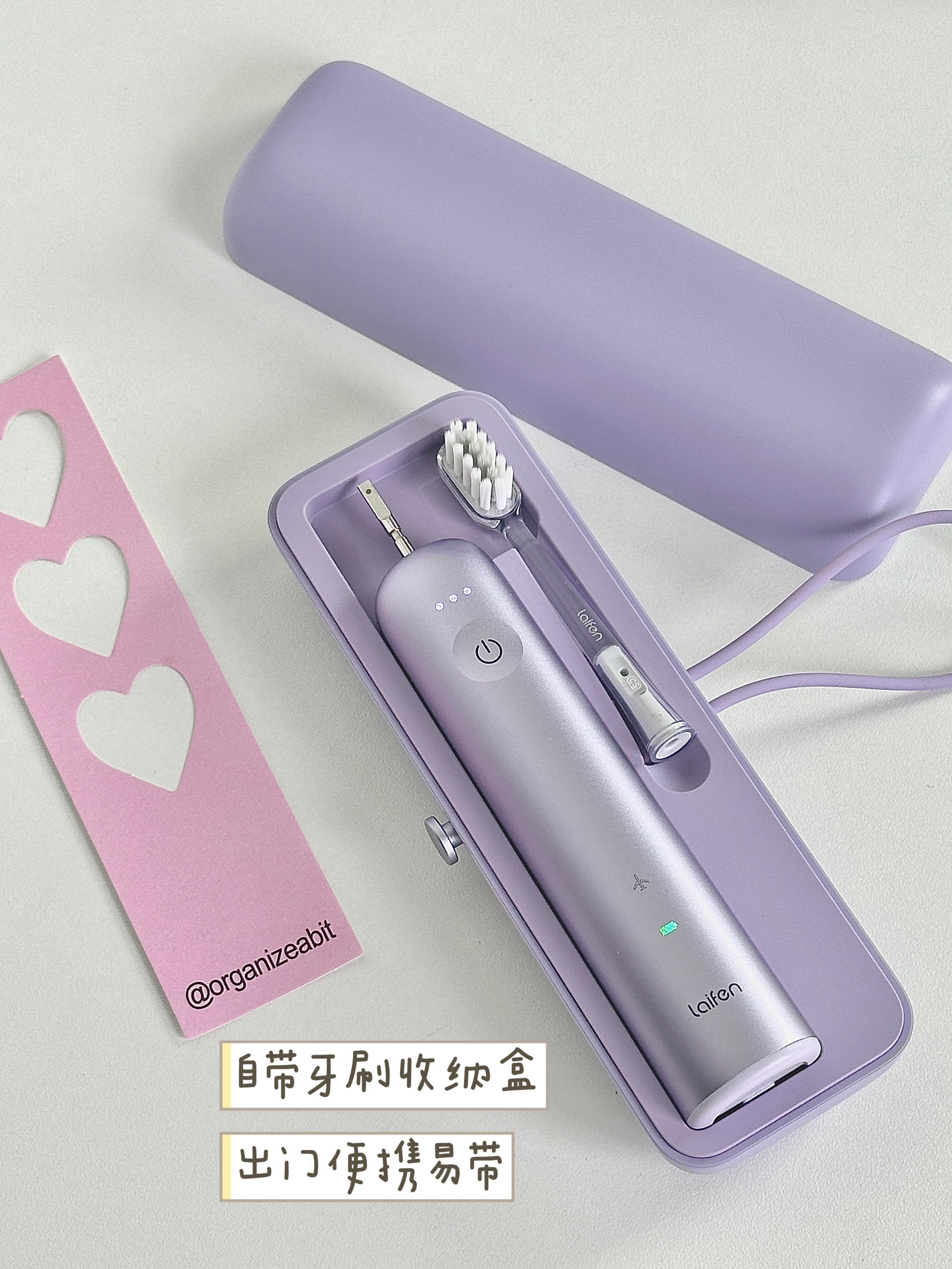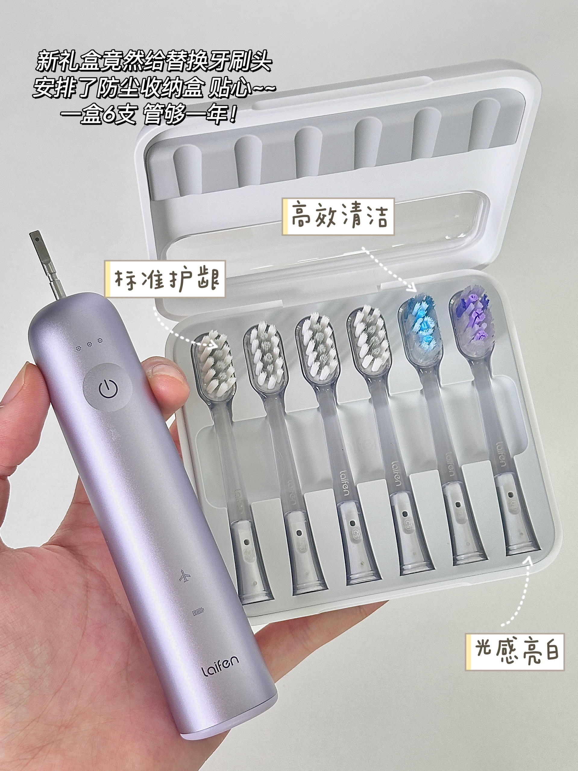 徕芬这个新出的介个 Laifen因爱同频电动牙刷礼盒有点高级 对紫色💜没有抵抗力 入了这套 打开的仪式感很足 包装盒也是紫色滴~好美 牙刷机身实物是有点金属珠光感的紫 有牙刷头防尘盒 便携收纳盒和壁挂支架! 而且有6个不同功能的替换刷头 够我用一整年了 我觉得整体实用性还是挺高的~~ 颜值高 刷牙也清洁的干干净净 推荐纪念日生日作为礼物送对象🎁很不错
