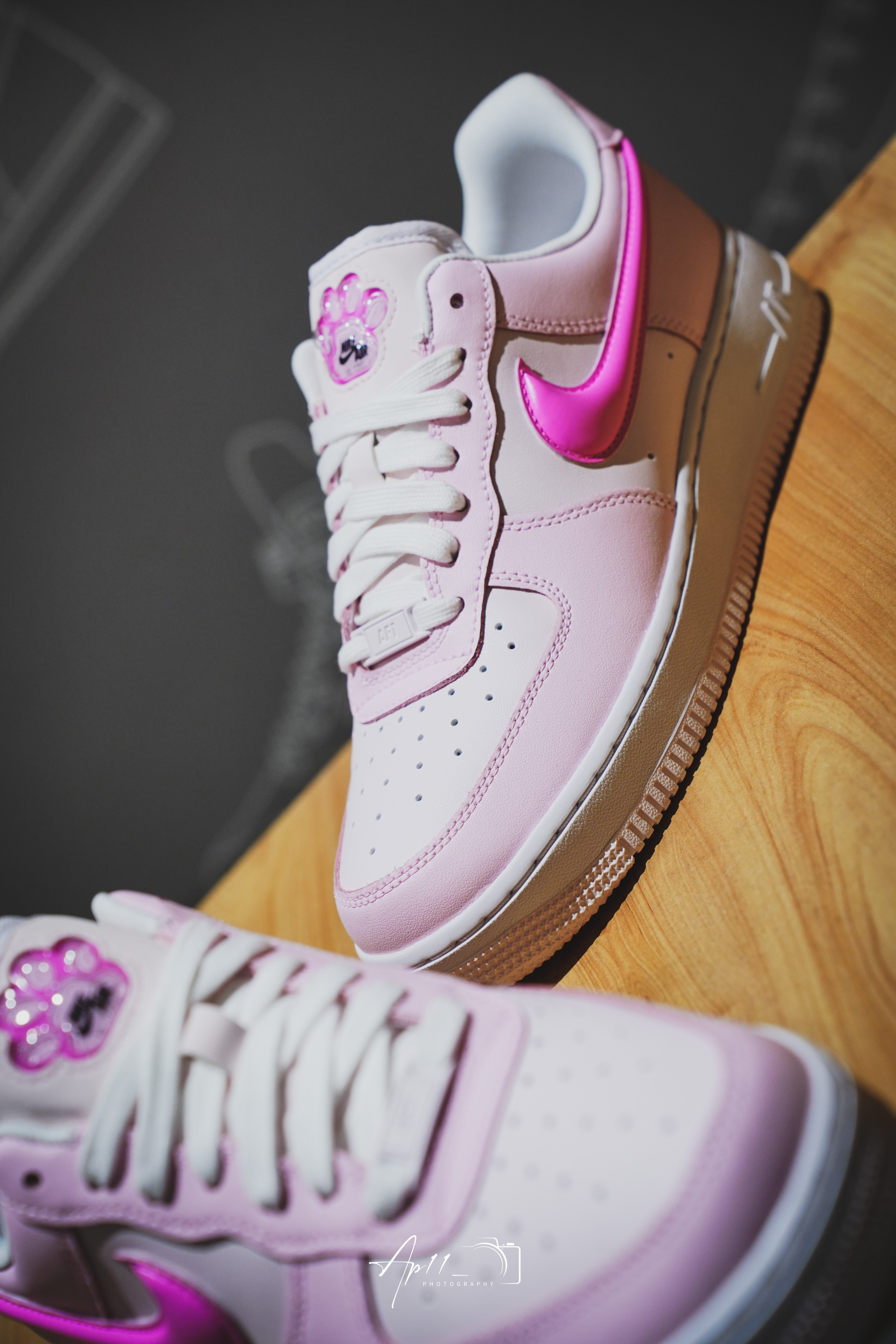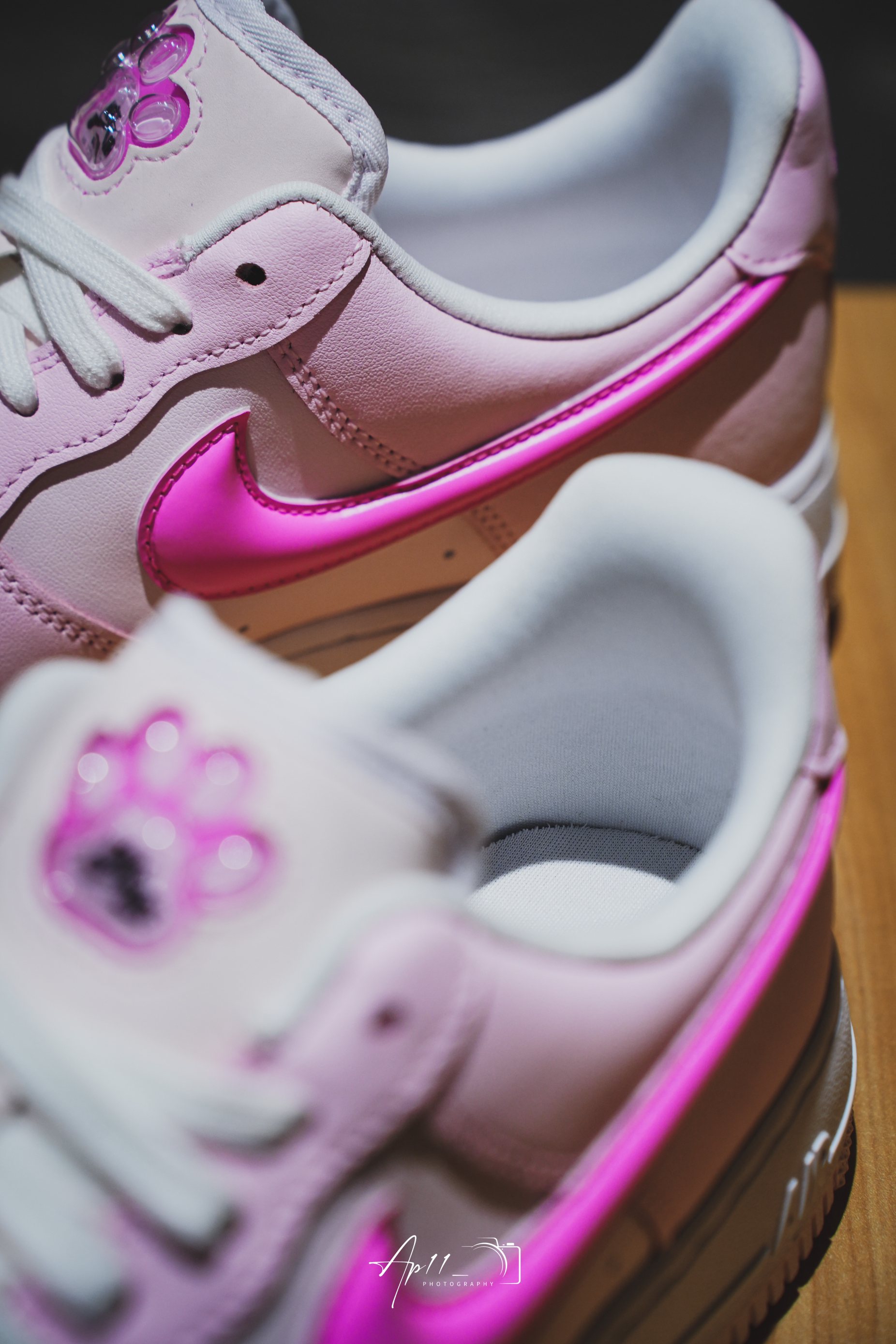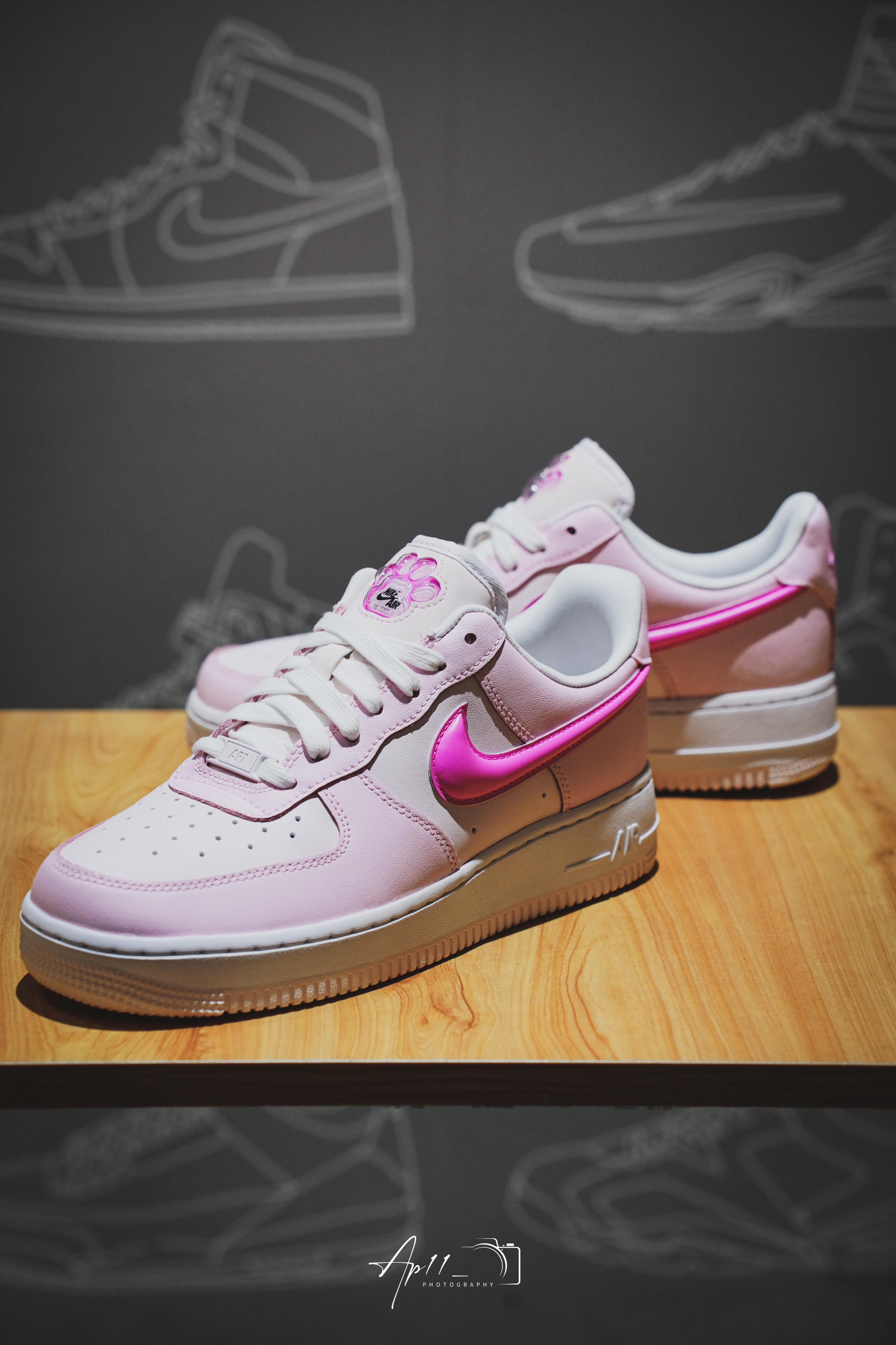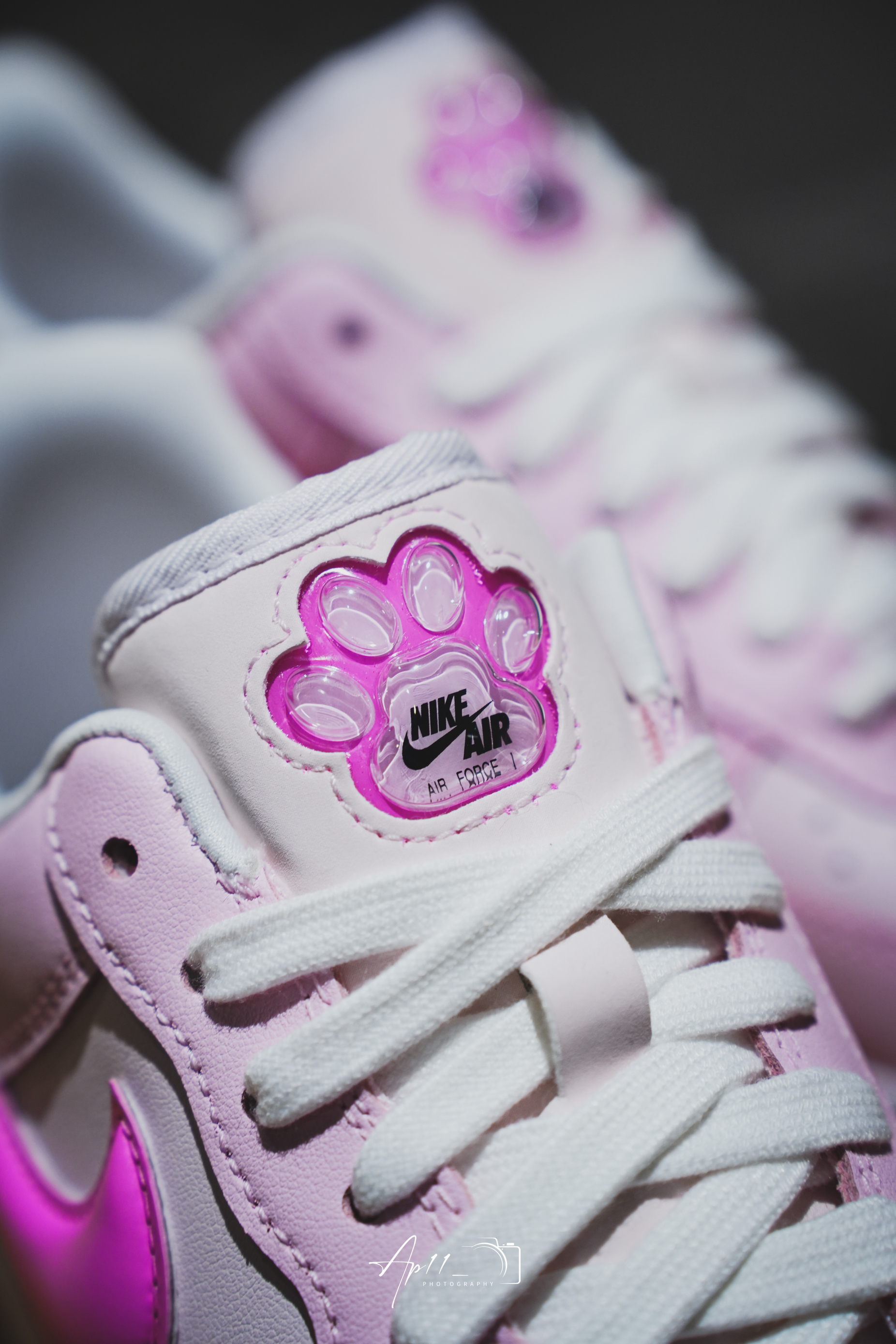 此次带来的这款Air Force 1 是专门为女生打造的全新配色,灵感来自于猫咪粉嫩嫩的肉垫,整双鞋也散发出浓浓的少女心。鞋面采用优质皮革,上脚十分舒服,樱花粉的配色,搭配上侧面立体芭比粉swoosh,真是一整个少女心爆棚。鞋舌上的猫爪不仅是印花,而且类似气囊的设计,立体感十足。后跟的内衬也换成光滑的内衬,穿脱不仅方便,并且长时间穿着也不会产生很大的摩擦力,鞋垫采用偏记忆棉鞋垫。