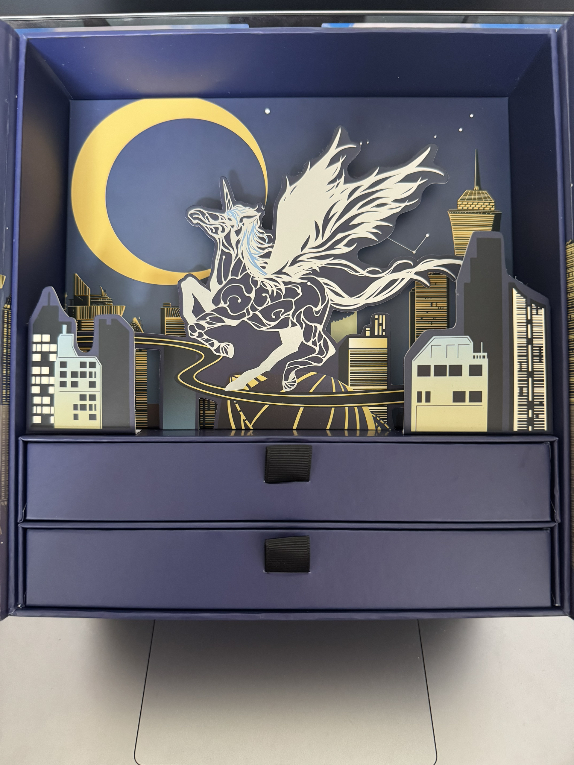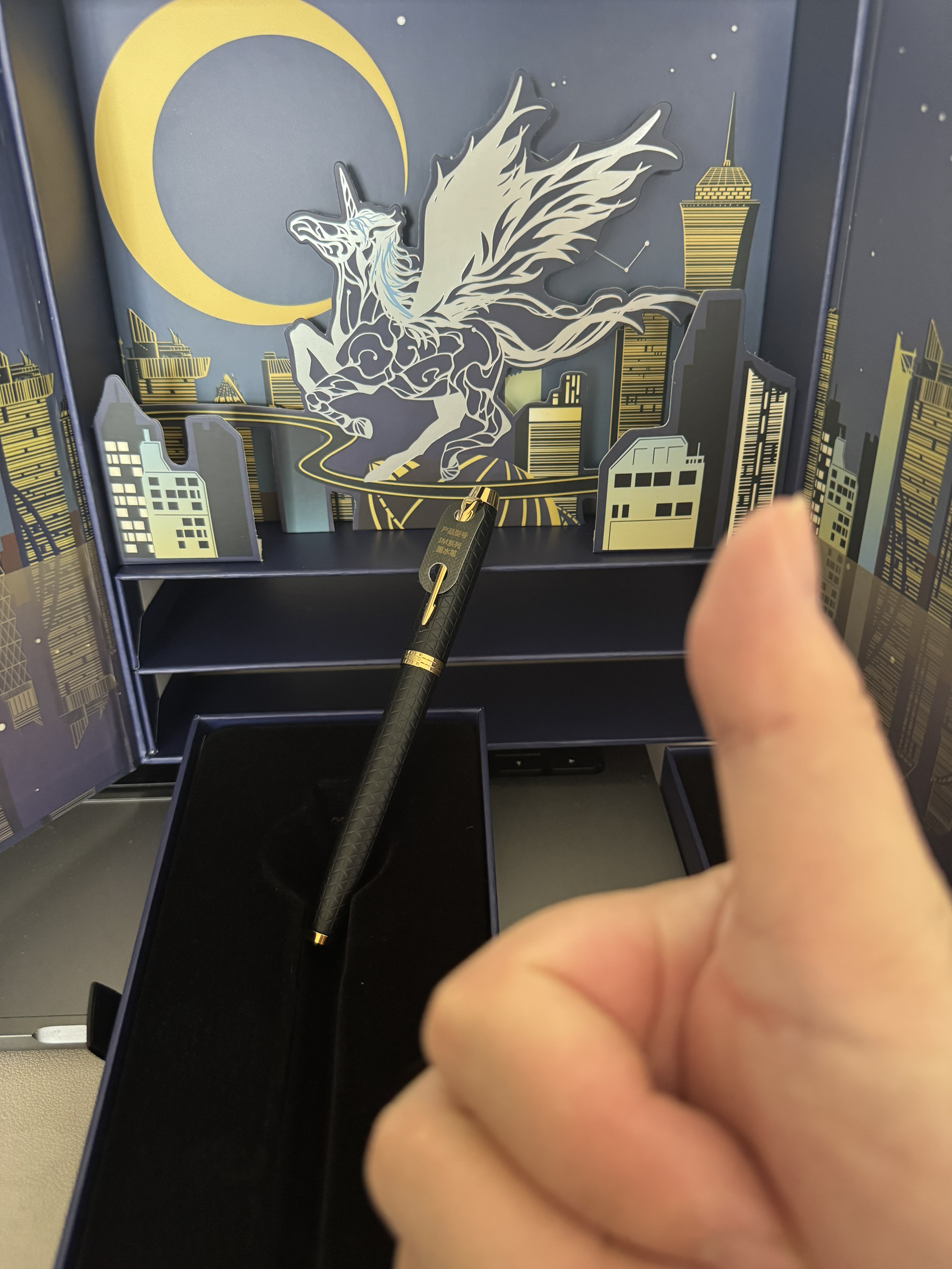 派克这款以梦为马的钢笔礼盒真的深深戳中了打工人的心巴,外观是高楼林立的CBD夜景,非常共情初入职场时每个加班的夜晚。来不及emo,会被奔驰的白马激励到。 梦想正盛,比起冰冷的键盘,书写的印记更有温度更易走心。钢材质镀金的笔夹上标志性箭头像是飞马的翅膀,凌厉而充满力量。 笔尖是高精细不锈钢材质,书写流畅。笔身通体是菱形的花纹纹路,拿在手上有较大的摩擦力不易滑落。礼盒内搭配五支法国原装墨水芯可替换,礼...