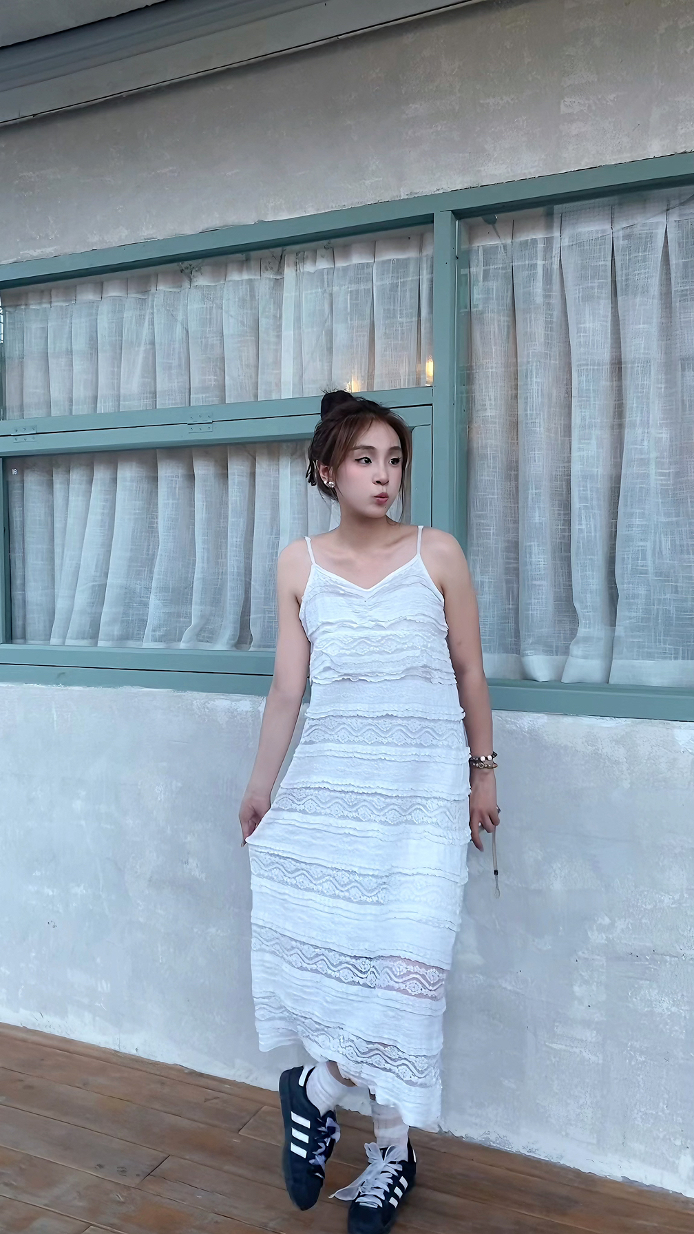 👕一条白色吊带裙 可以单穿 秋季也可以叠穿 实穿性很高 长度到脚 超显身材 👟还是黑贝壳 百搭款 最爱!