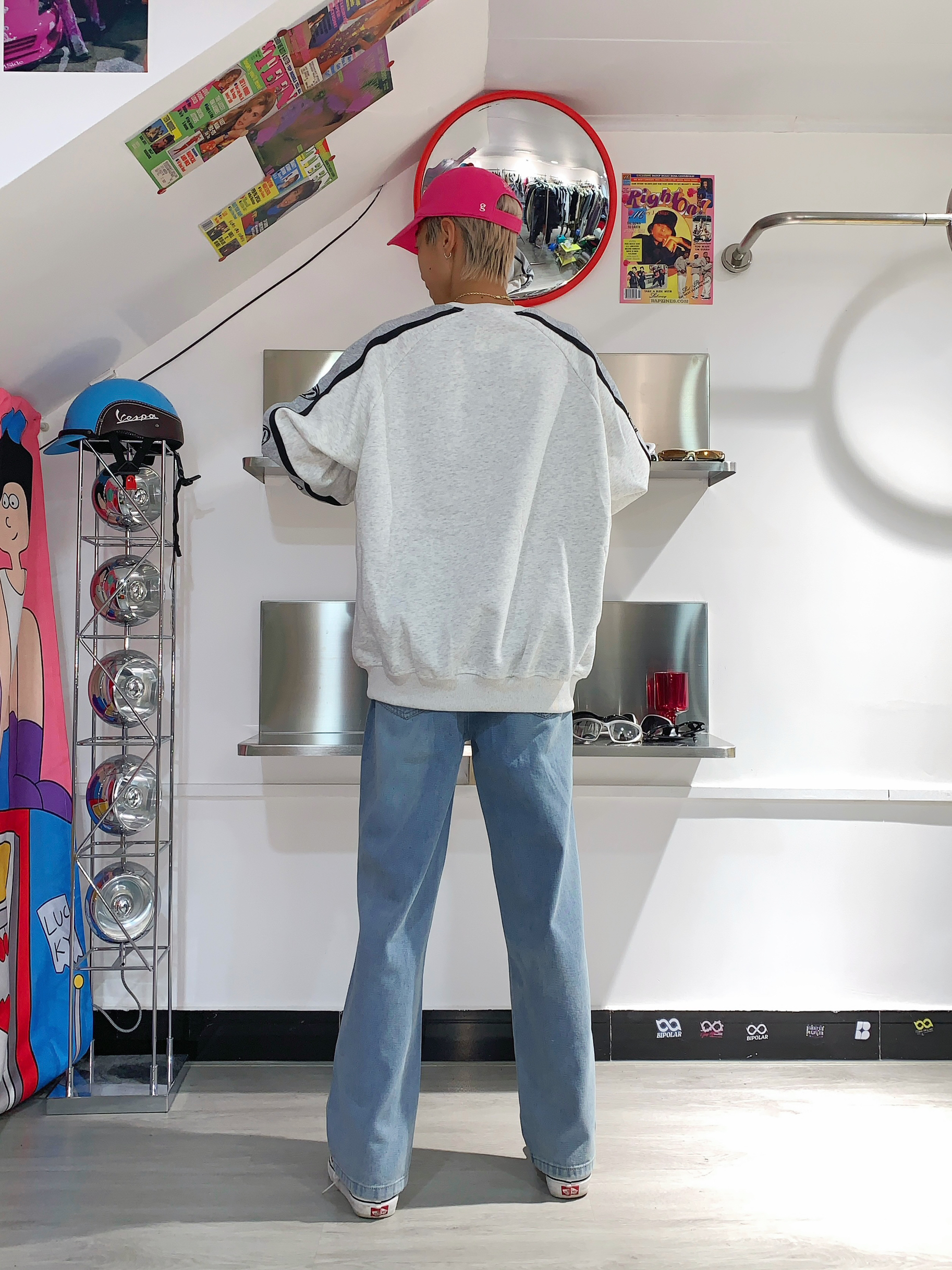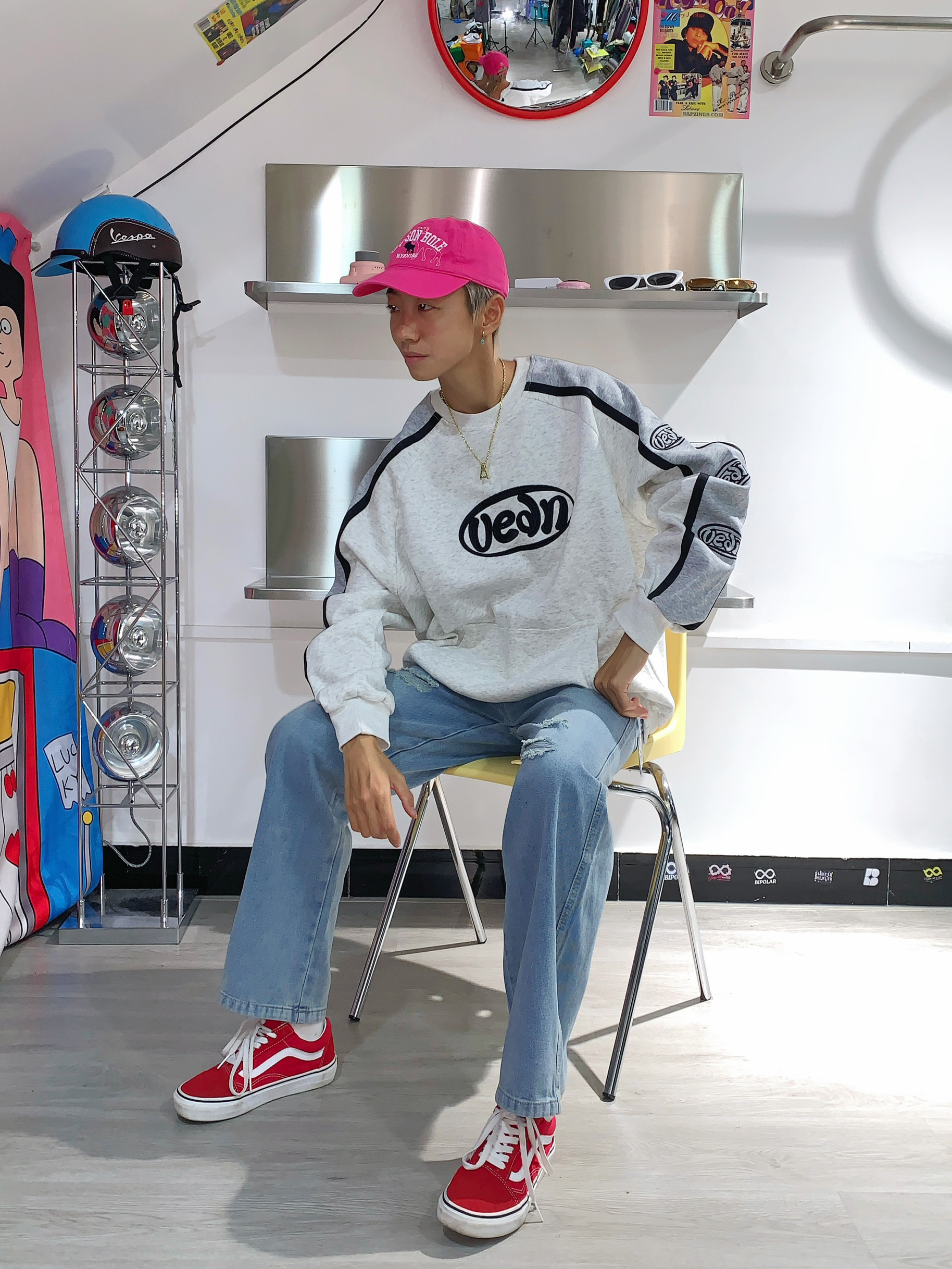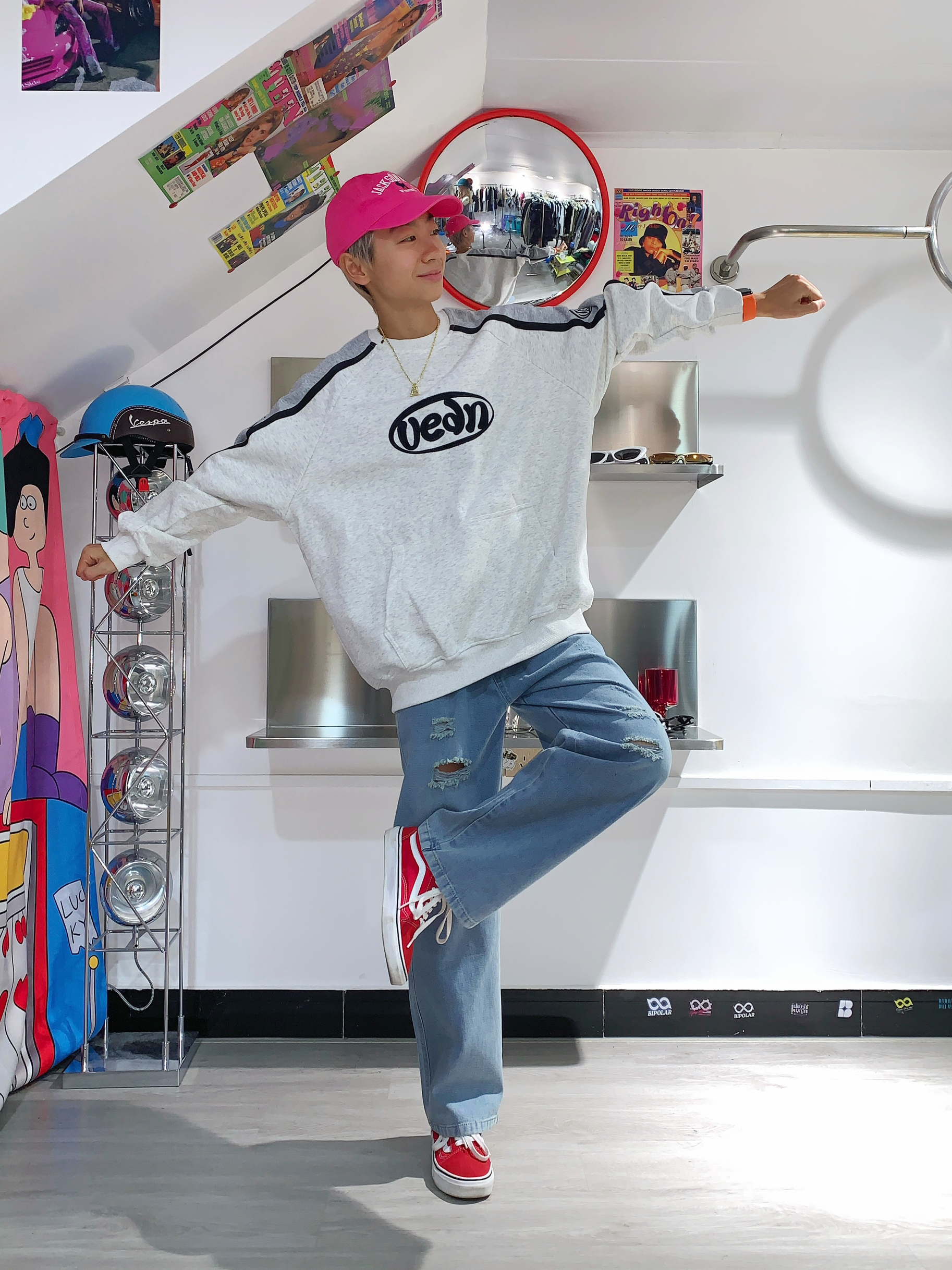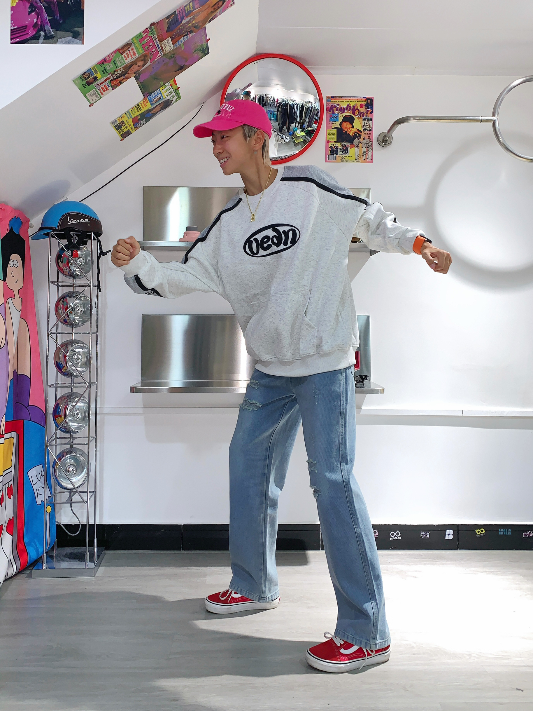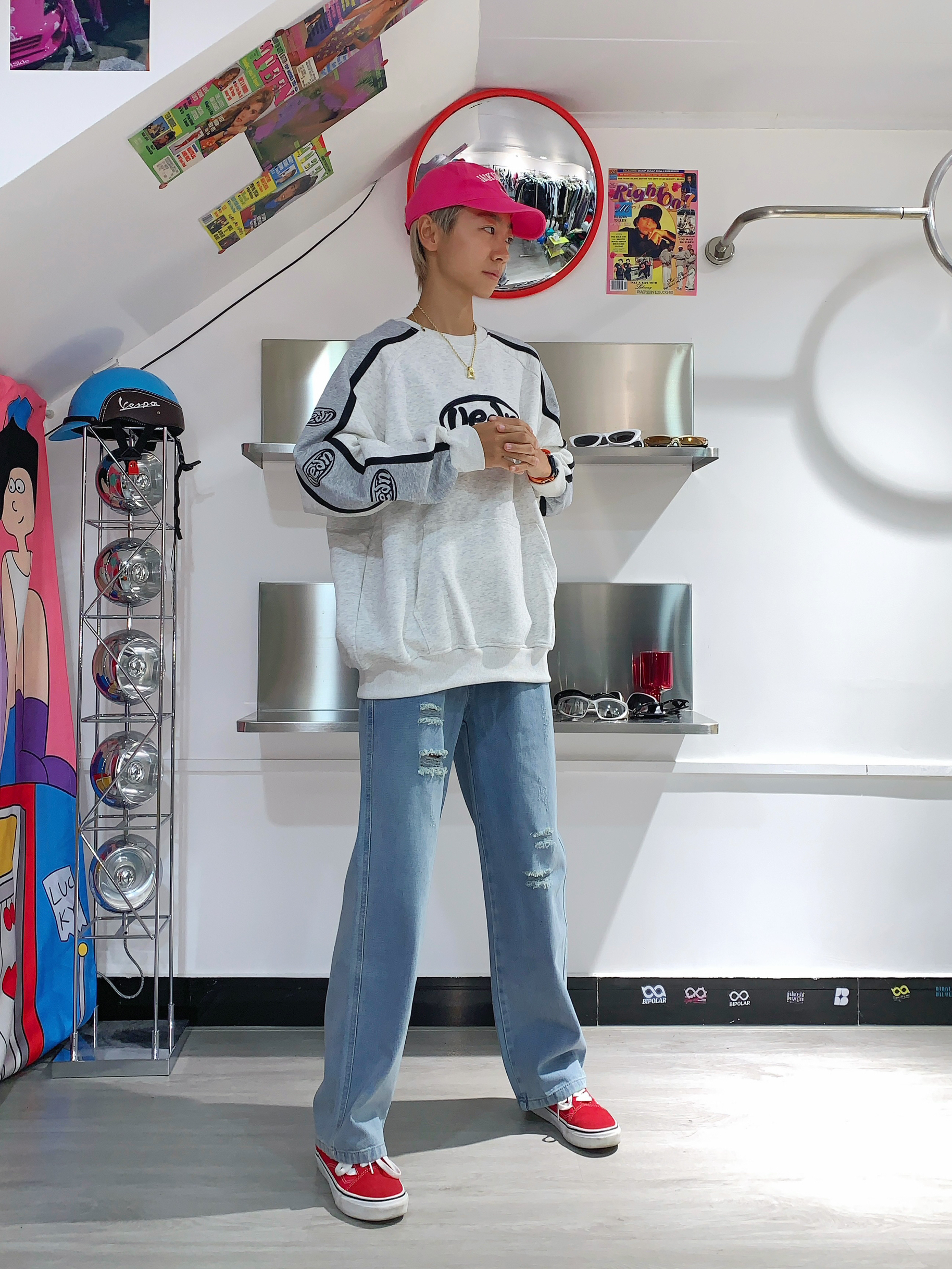 哈喽,欢迎来到哇哇哇穿搭分享频道! 168CM|45KG|👔:M 👖:m|👟:39码 圆领卫衣 一键式穿搭 简直是学生党必备 单穿叠穿 都很百搭 灰色插肩就很有个性 下半身搭配稍微破洞牛仔裤👖 选了个醒目的板鞋搭配❤️ 带上我的粉色🧢 出门玩咯