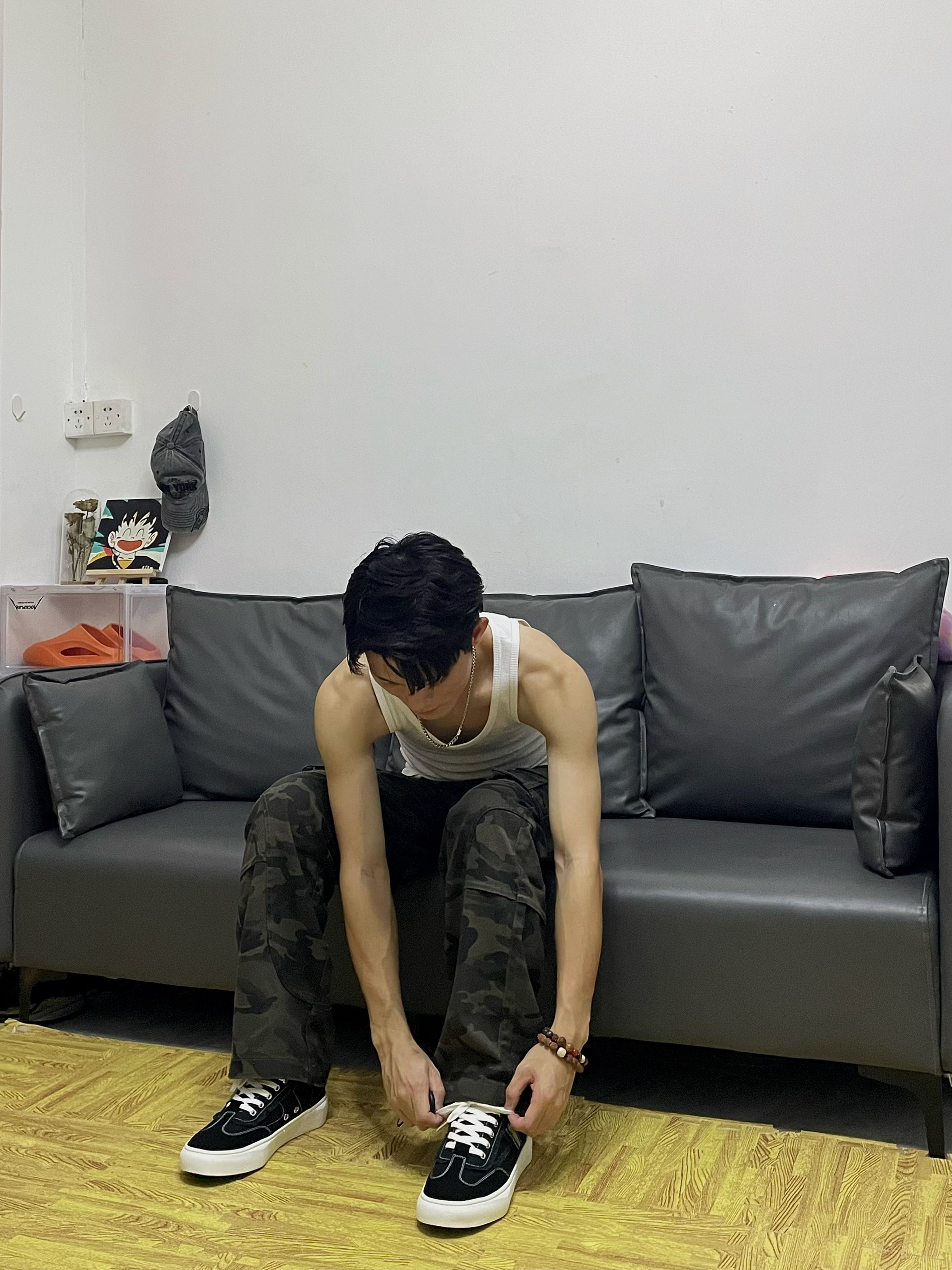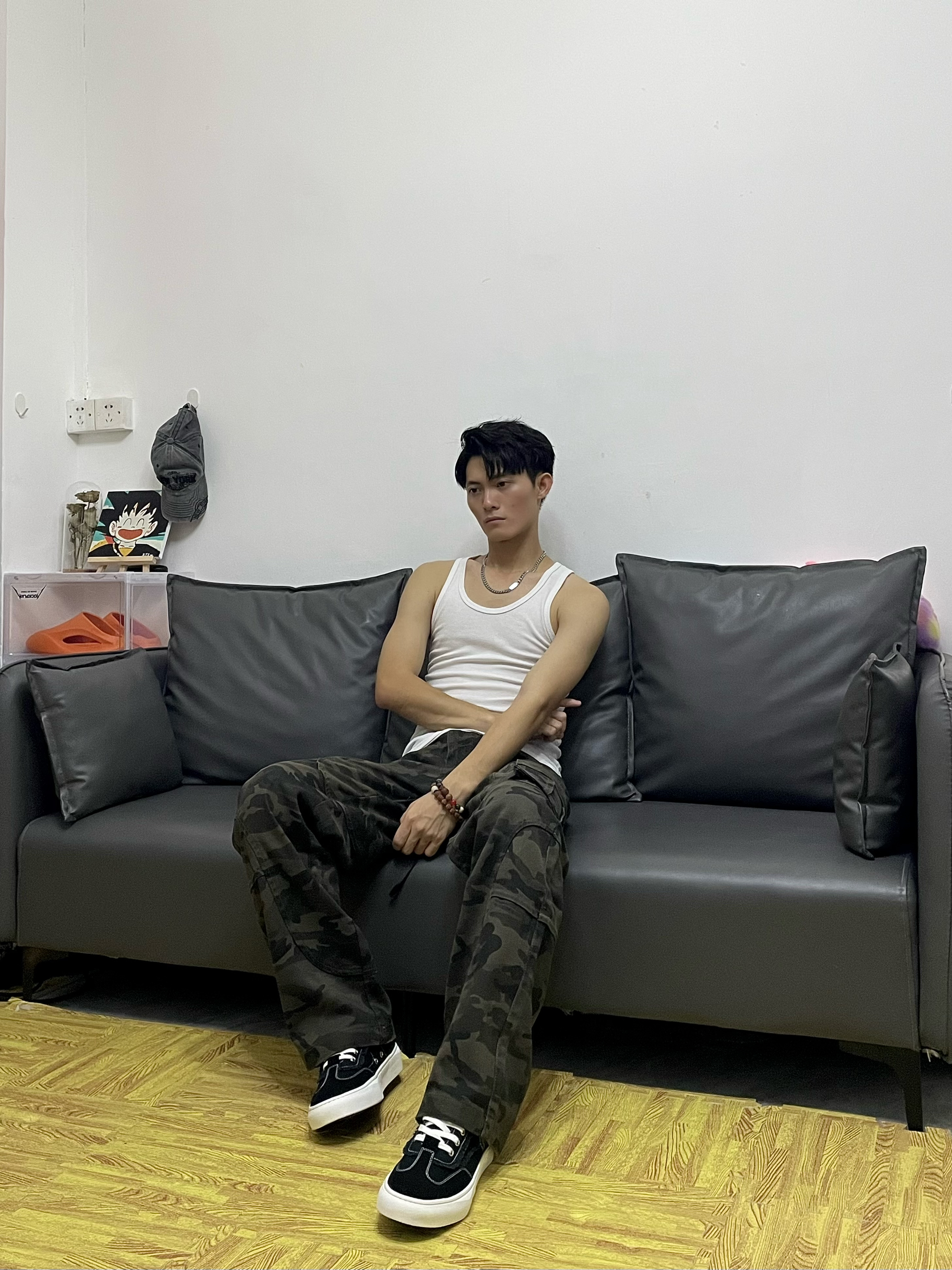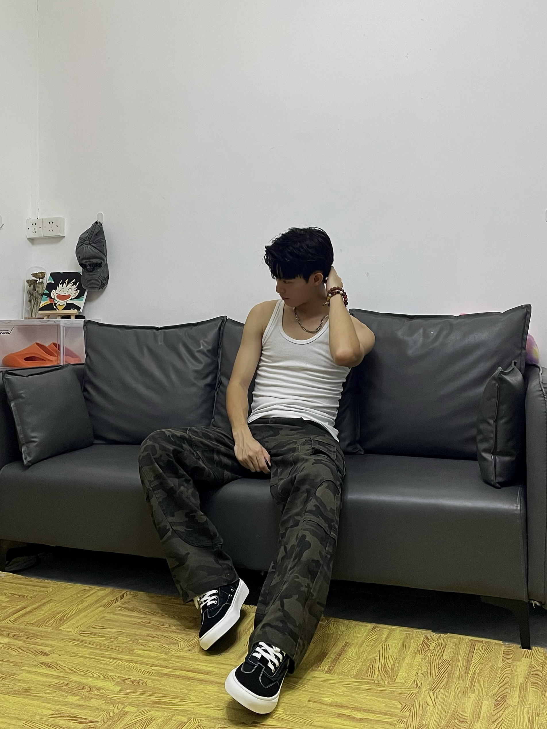 🎹简单一下今天的这身穿搭吧[强_blue] 📸白色圆领背心➕迷彩工装长裤 — — — — — — — — — — — — — — — ①OOTD 🎽美式圆领背心,重磅的面料透气性较强,螺纹走线的针织,穿着舒适百搭修身 — 👖美式解构迷彩裤,美式复古水洗风,宽松直筒休闲的版型,多口袋工装设计,日常通勤出行百搭时髦 — ②tips✨ 安可雷上白下迷彩美式硬汉风,有型显身材,整体更加美式街头感