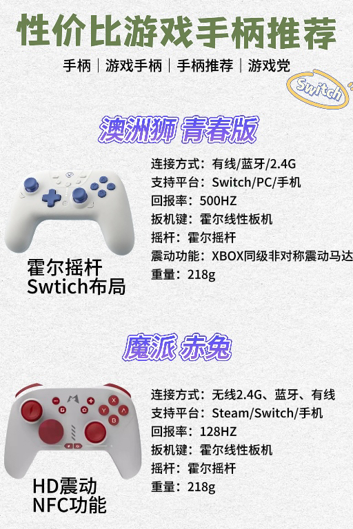本篇笔记关联了8BitDo/八位堂 猎户座 青春版游戏手柄 树莓派 安卓平台 无线版 艾尔登法环 电脑版 双人 有线版 成行 黑神话悟空 X3PRO 霍尔摇杆 旷野绿、FlyDiGi/飞智 冰原狼2 无线游戏手柄 类xbox霍尔线性扳机 多模版 电脑版 黑神话悟空 体感 怪物猎人 白色火影忍者联名款、GameSir/盖世小鸡 启明星 三模游戏手柄 定制霍尔摇杆 多平台支持 双影奇境 黑神话 蓝牙 辉光白等商品,为用户提供真实的使用体验和购买参考。