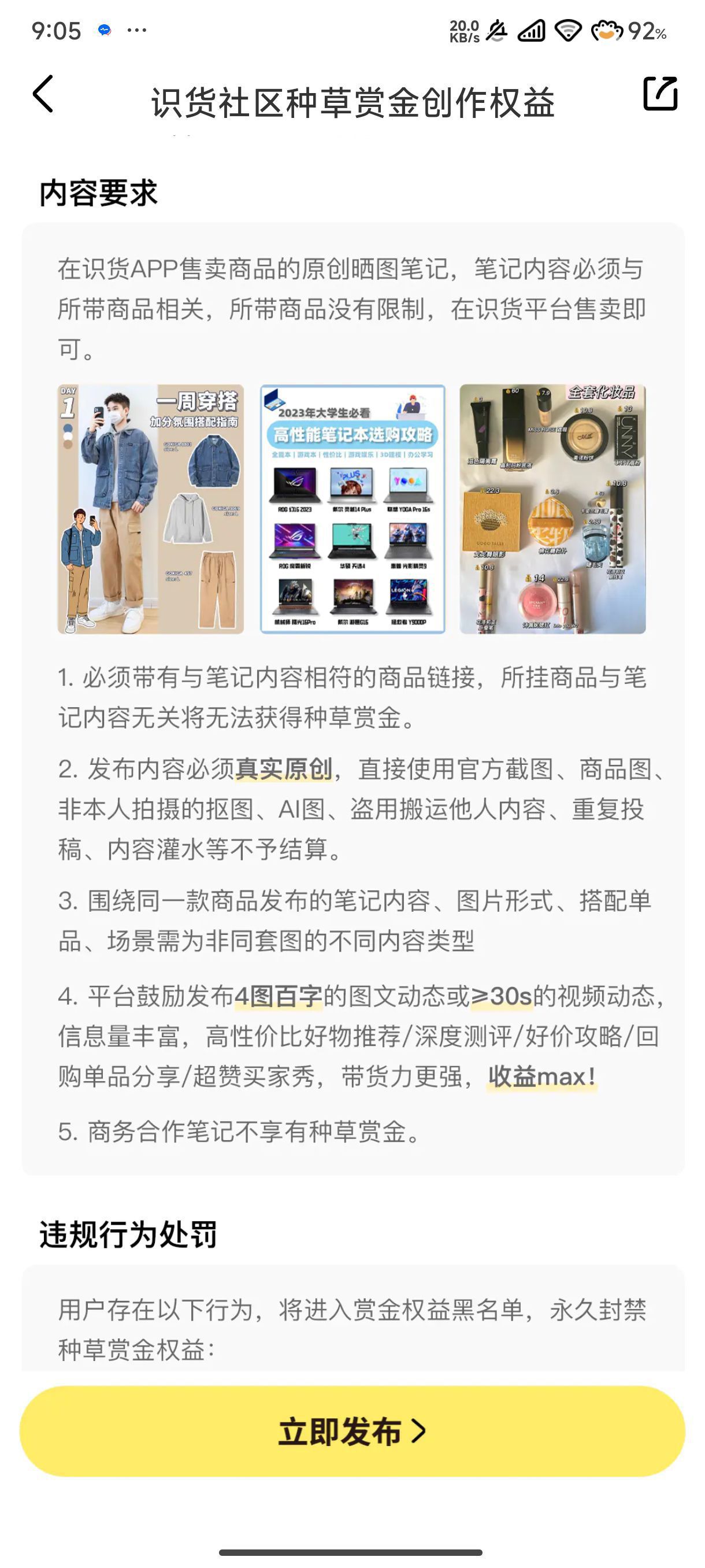 识货赚钱真不难 🌟识货APP,让你轻松赚钱不是梦!💰在这个信息爆炸的时代,找到靠谱的赚钱途径并不容易。但是,有了识货APP,你就能轻松把握赚钱机会。👀它汇聚了海量优质商品,让你轻松发现那些被低估的宝藏。💪只需动动手指,分享给朋友或者朋友圈,就有机会获得丰厚收益。快来加入识货APP,开启你的赚钱之旅吧!💸
