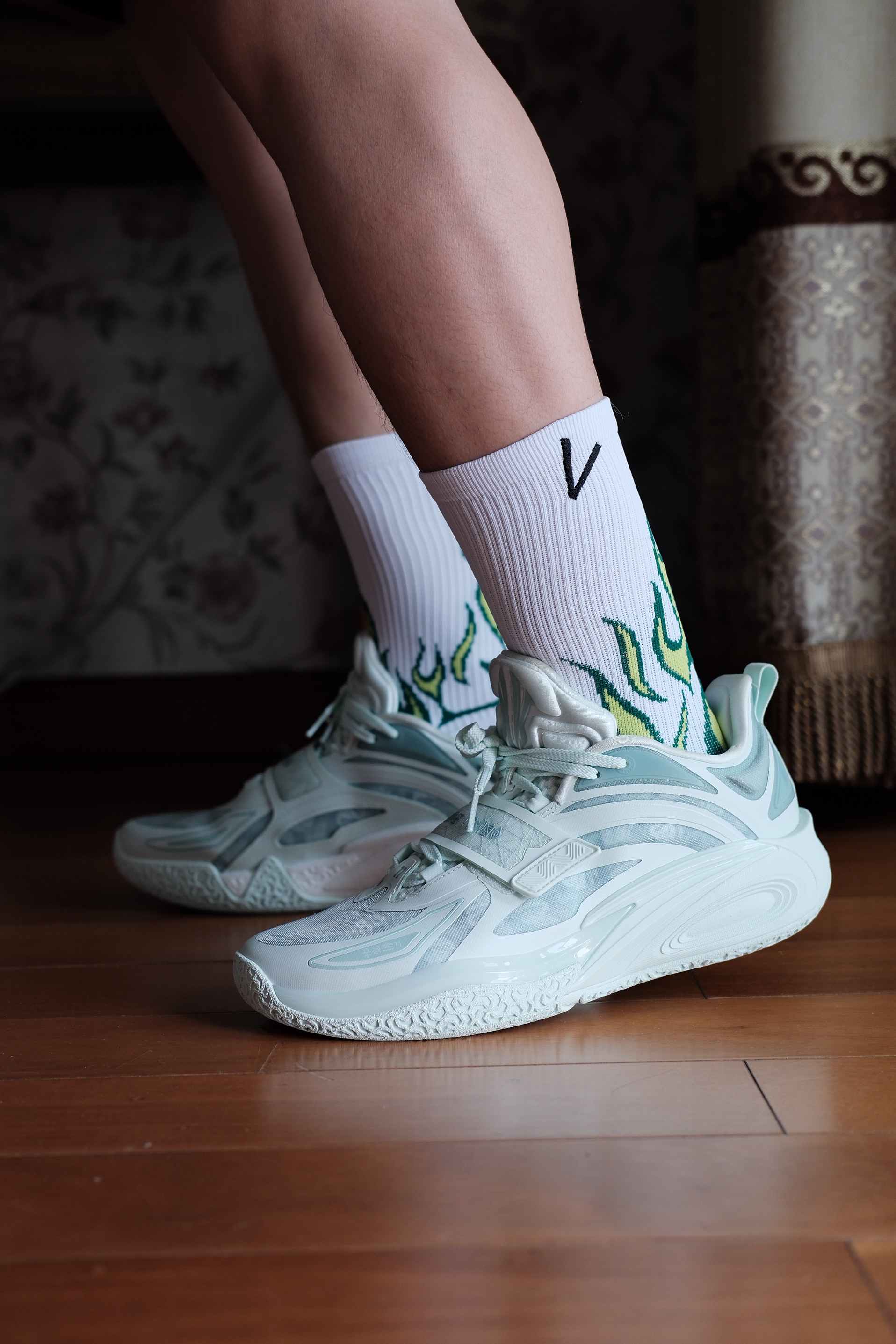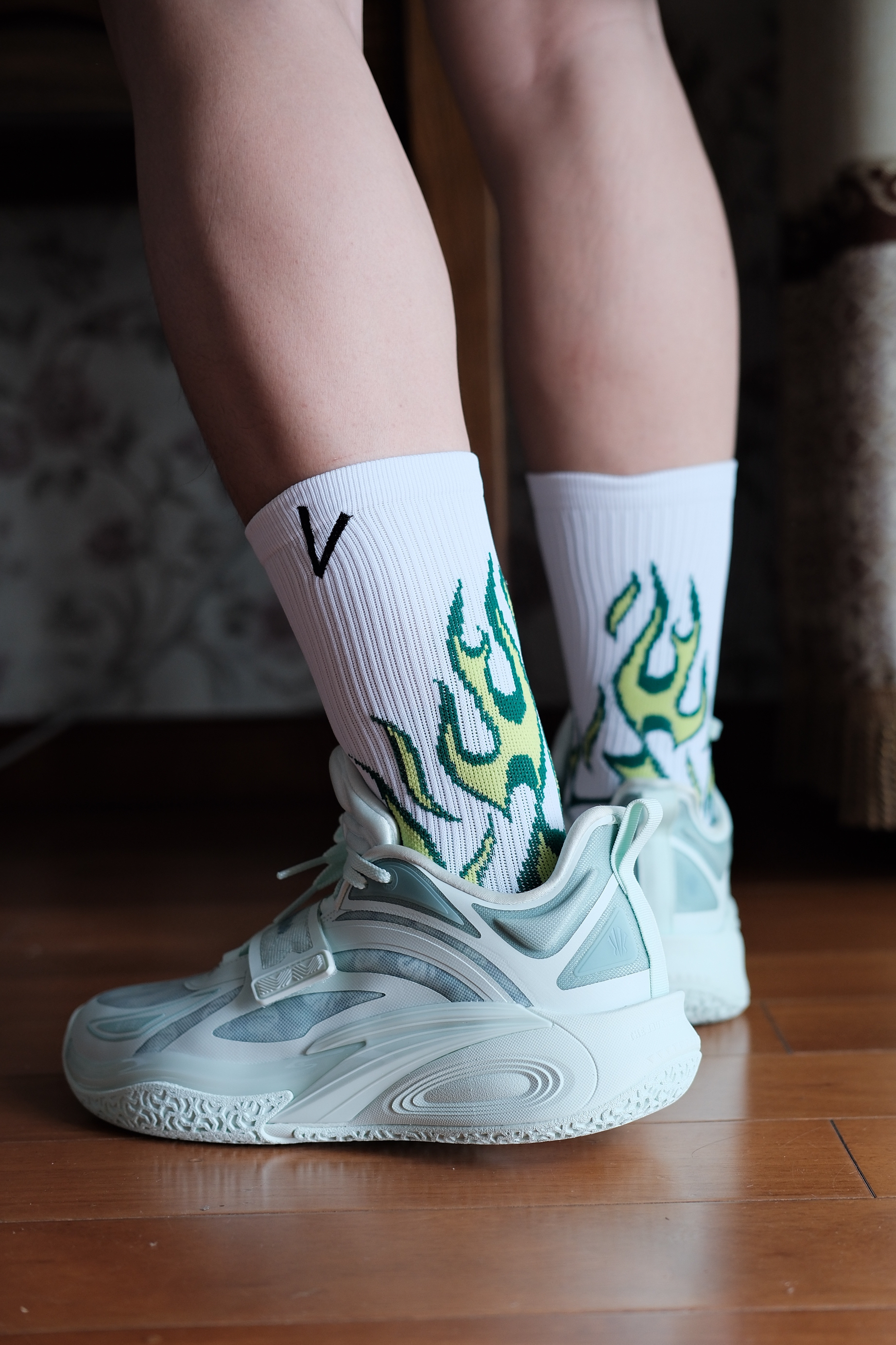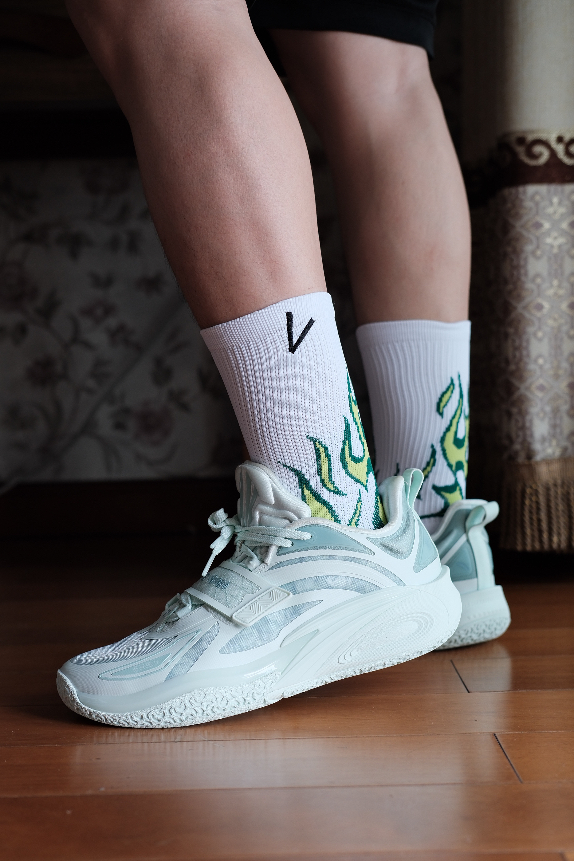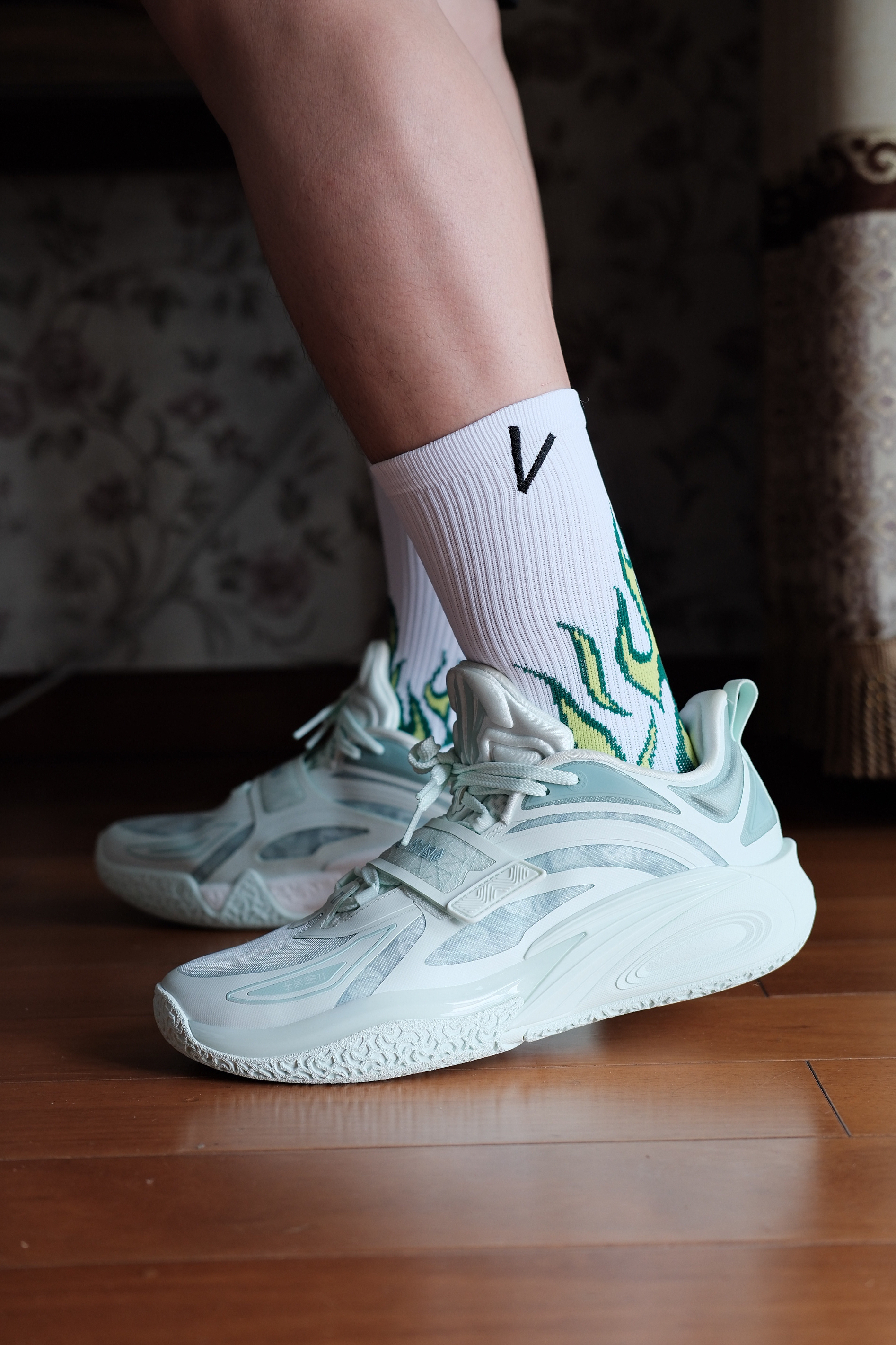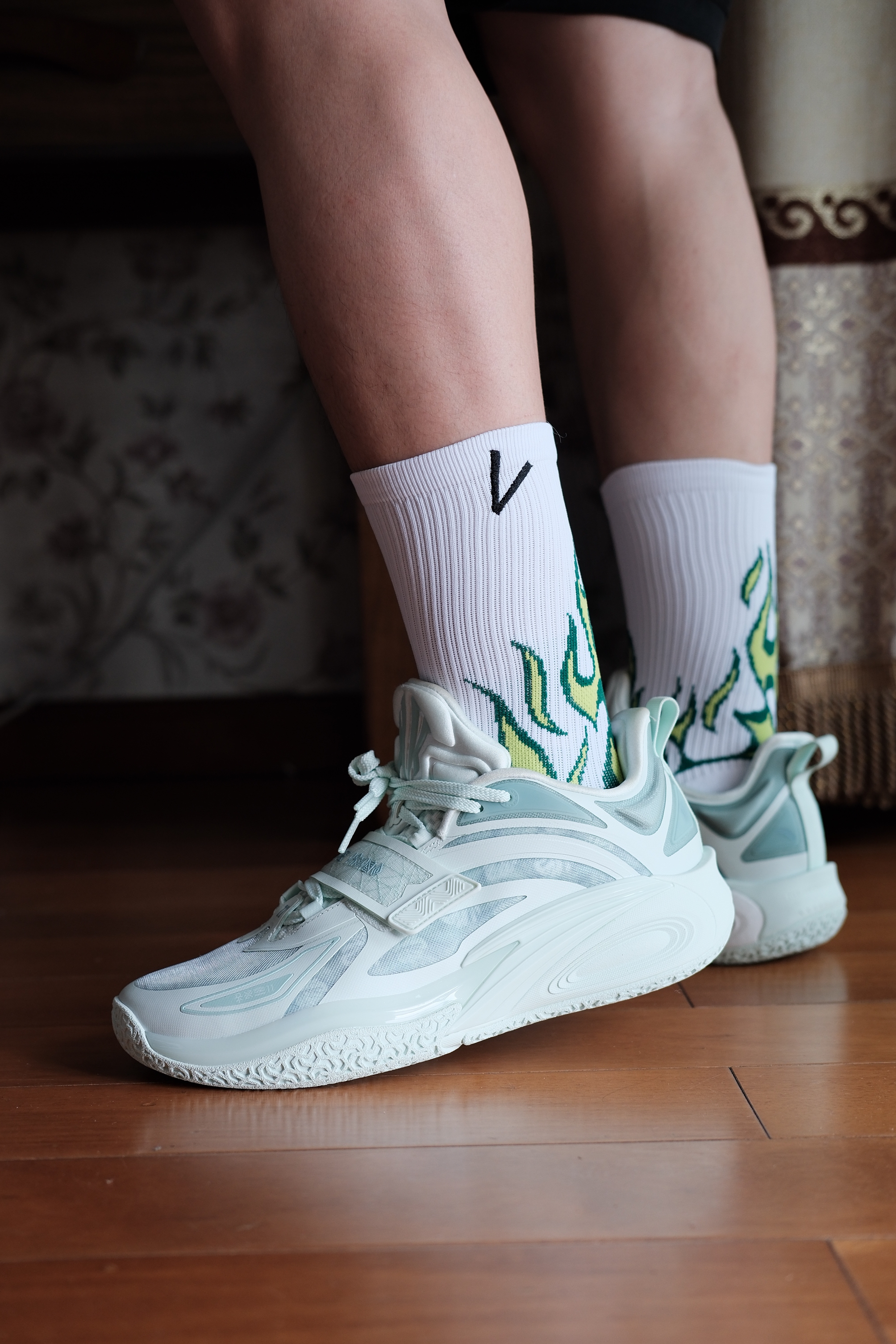 维动新出的燎原球袜搭配 KAI 1花园洲,极具辨识度,不仅包裹、支撑性能优秀,还有着不错的搭配属性。