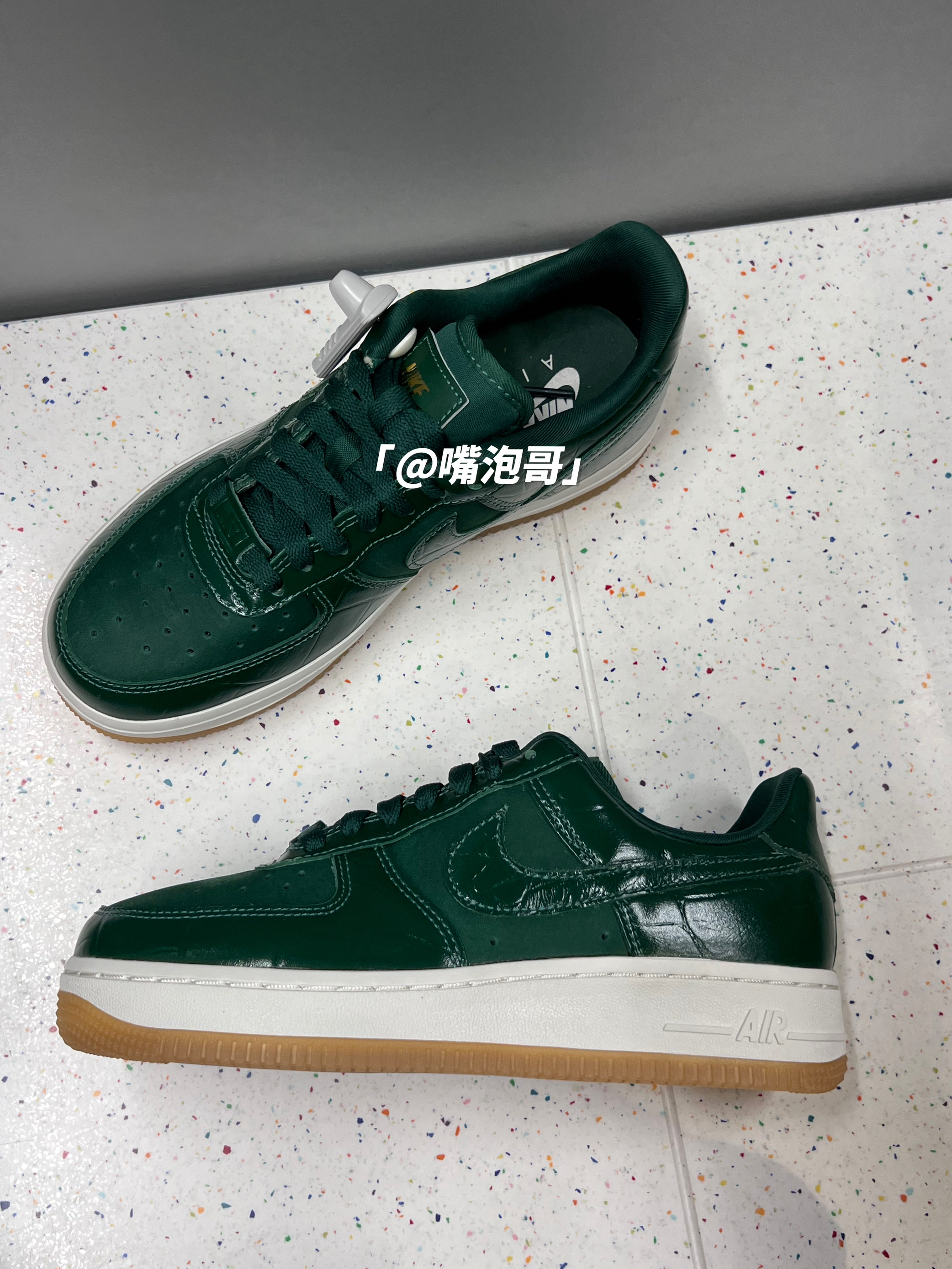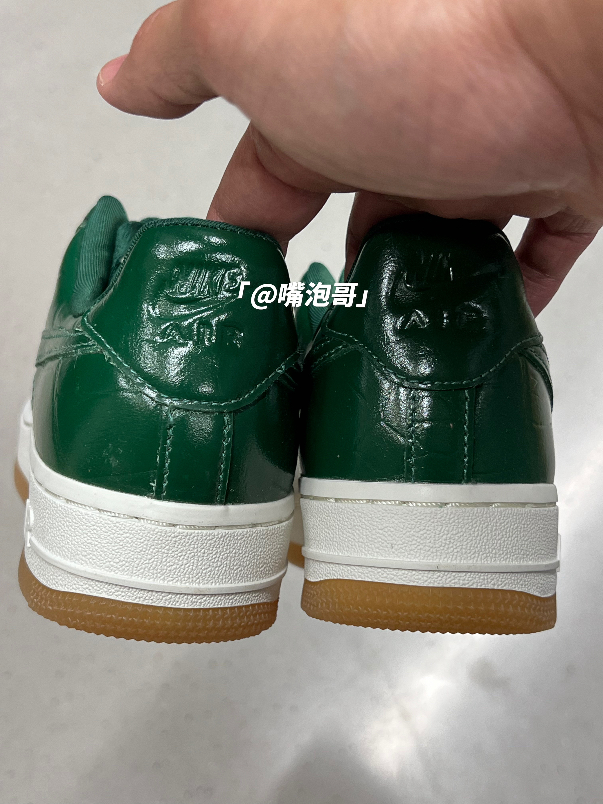 👟:Air Force 1 Low 绿色 简介: 鞋款是一双低帮的AF1板鞋,整体的配色很亮眼,选用了绿色来呈现,并且又加入了生胶色,使整体有着很好的复古感,脚感上中规中矩,日常通勤穿也是可以的。 细节: 鞋面采用了皮革打造而成,而且是带有鳄鱼纹的漆皮与磨砂质感的皮革组合,质感上很不错,鞋舌与后跟内里用了织物布材料,增强了透气性,中底是白色,大底为生胶材料,使色彩层次感增强,同时又让整...