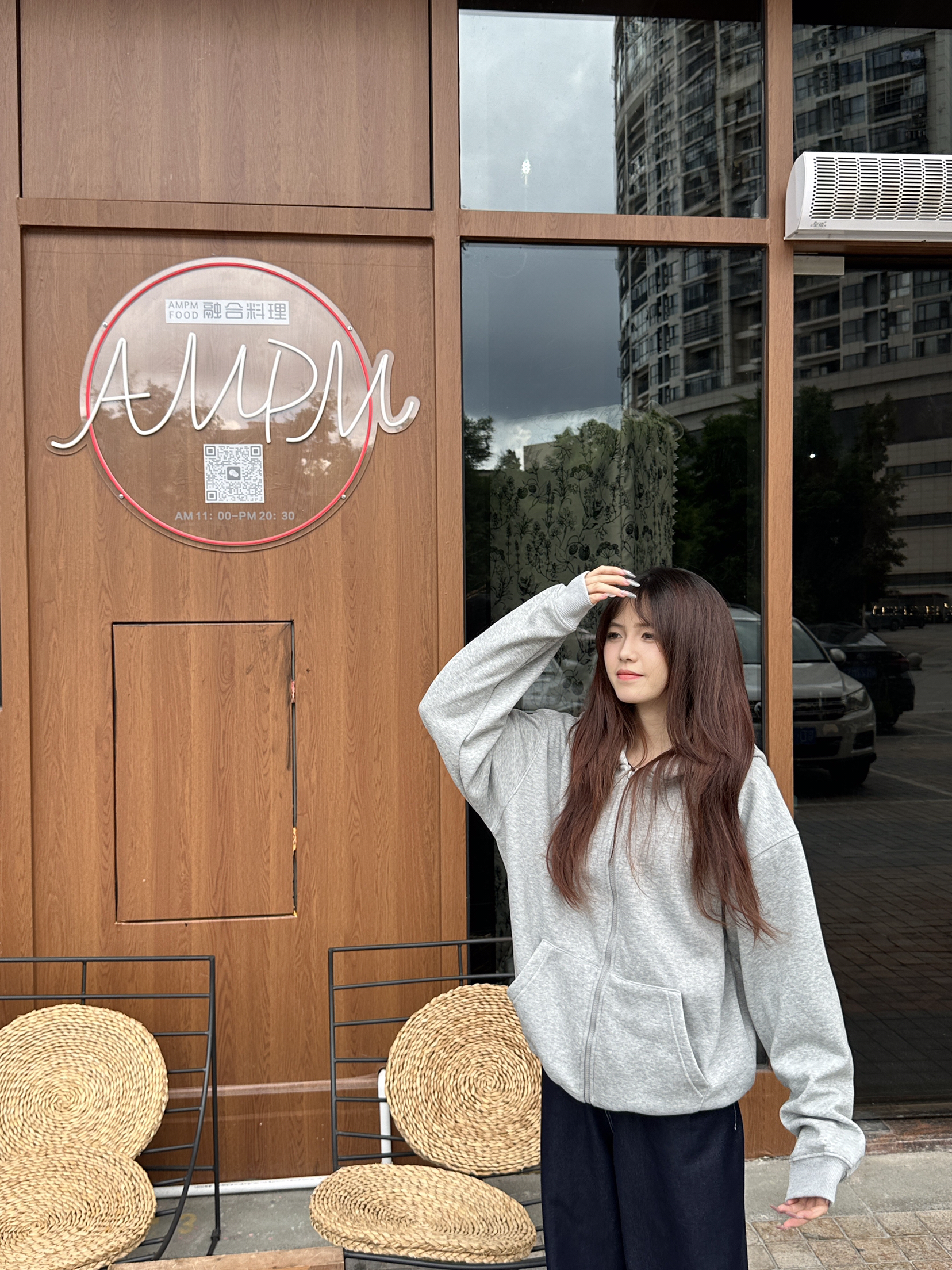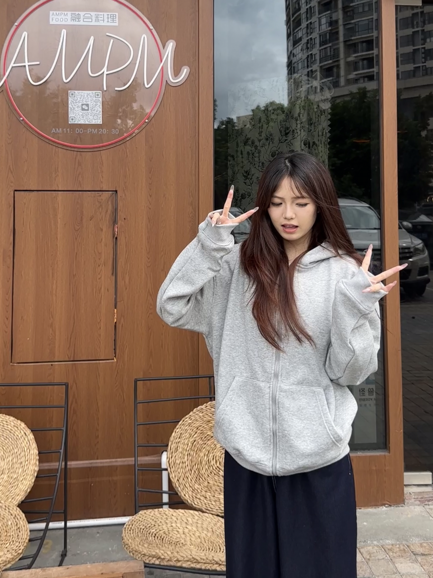这件卫衣拉链外套的版型真的无敌了 over size风格 大帽檐 上身慵懒且显瘦 无论从正面看背面看 给人一种落落大方的感觉 面料做工都很有品质感 平价但不廉价 XDFM