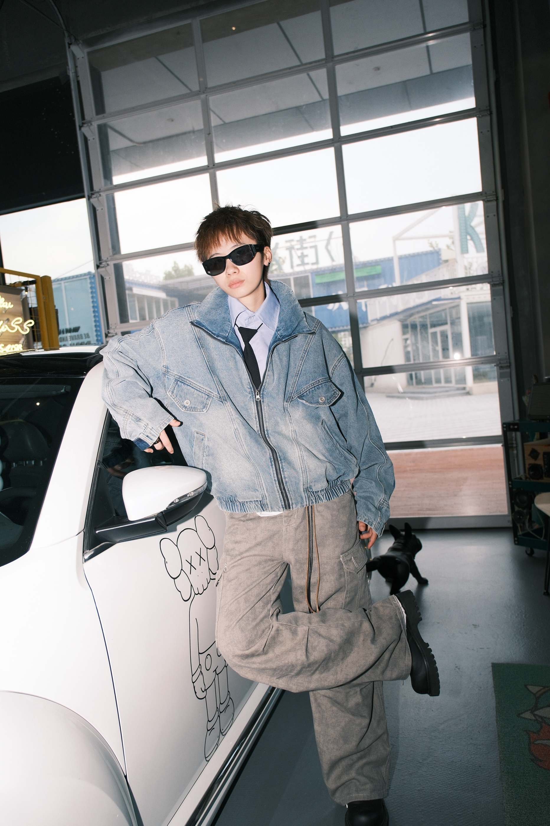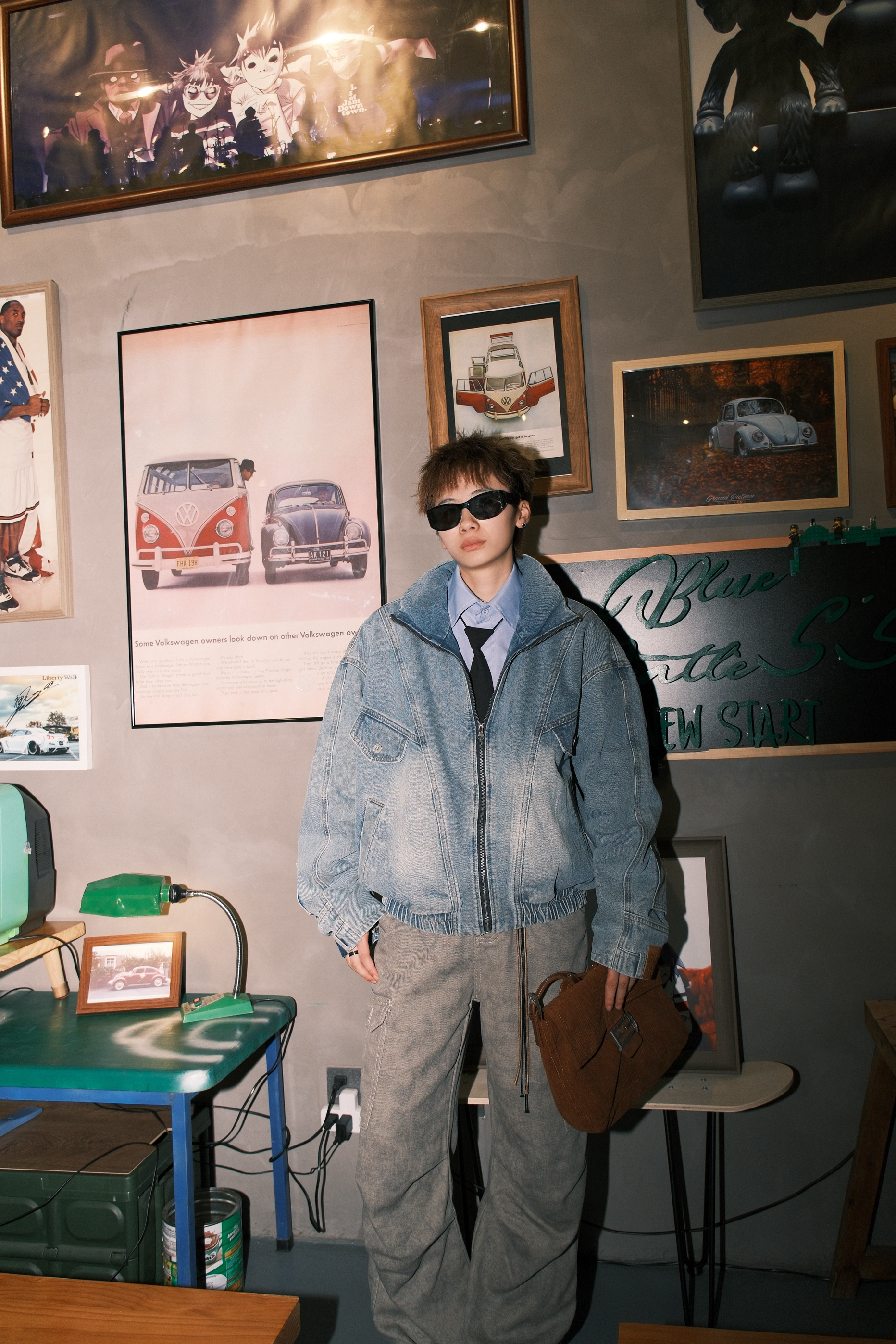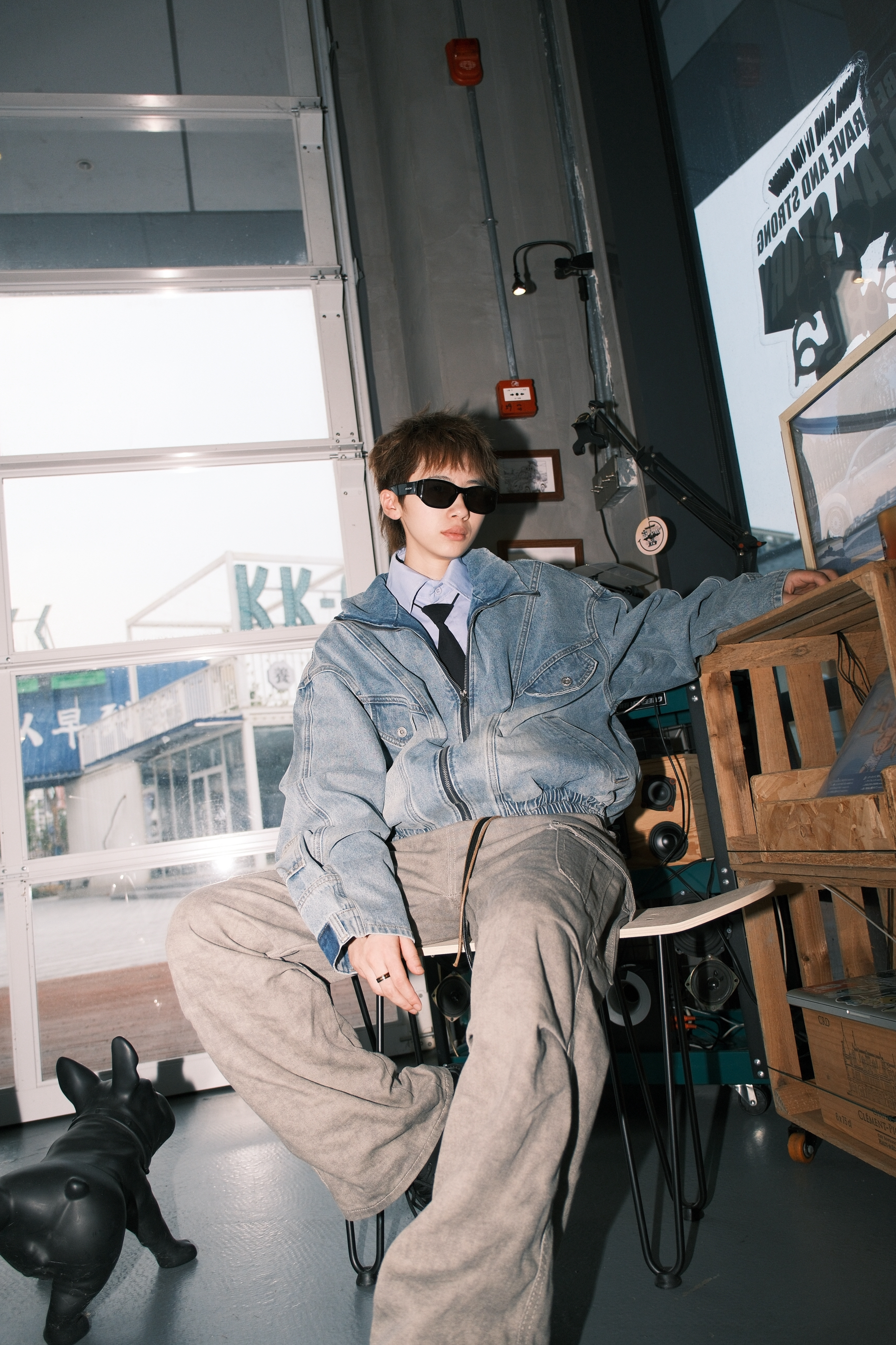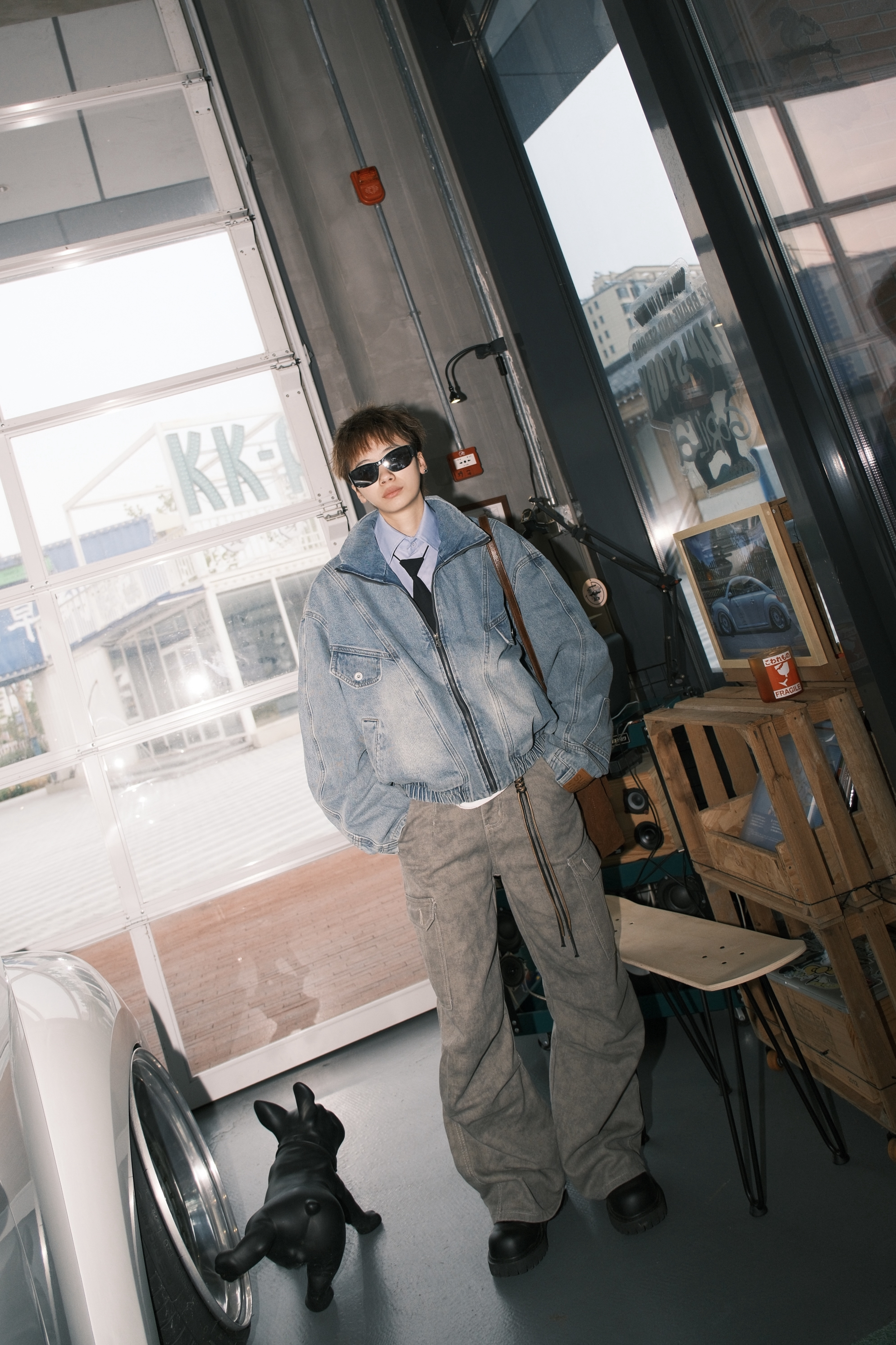 今天来复刻一下我印象里8090年代的复古港风穿搭 一件浅蓝色的牛仔外套 内搭蓝色衬衫,黑色领带也不能少 拉到胸口的位置,腔调就出来了 收紧处理的下摆,很有那种复古的味道 袖子部分做了类似于裤腰的设计 也是今年很流行的解构风 下身搭配卡其色直筒牛仔裤 再来一双大头德比鞋 配上富士的滤镜,感觉真的回到了90年代 尺码参考:163cm/45kg 上身M码