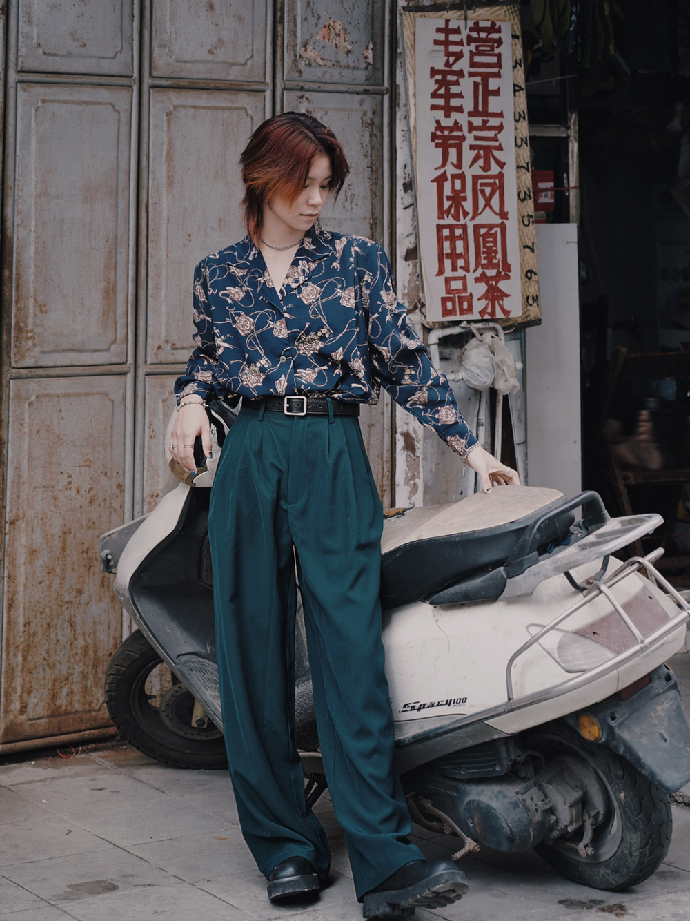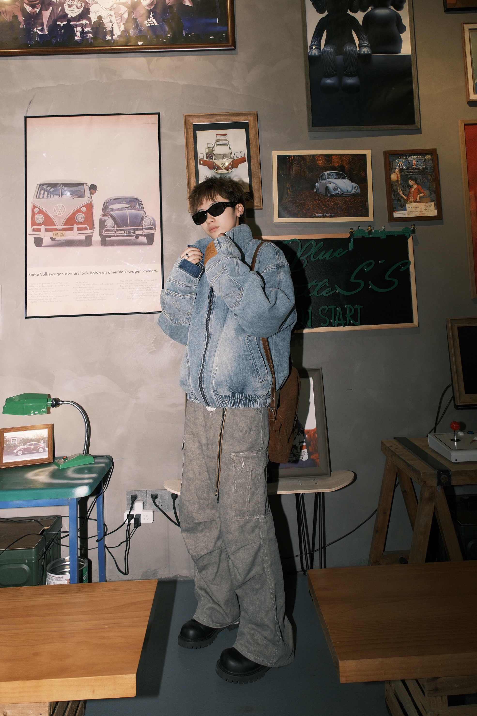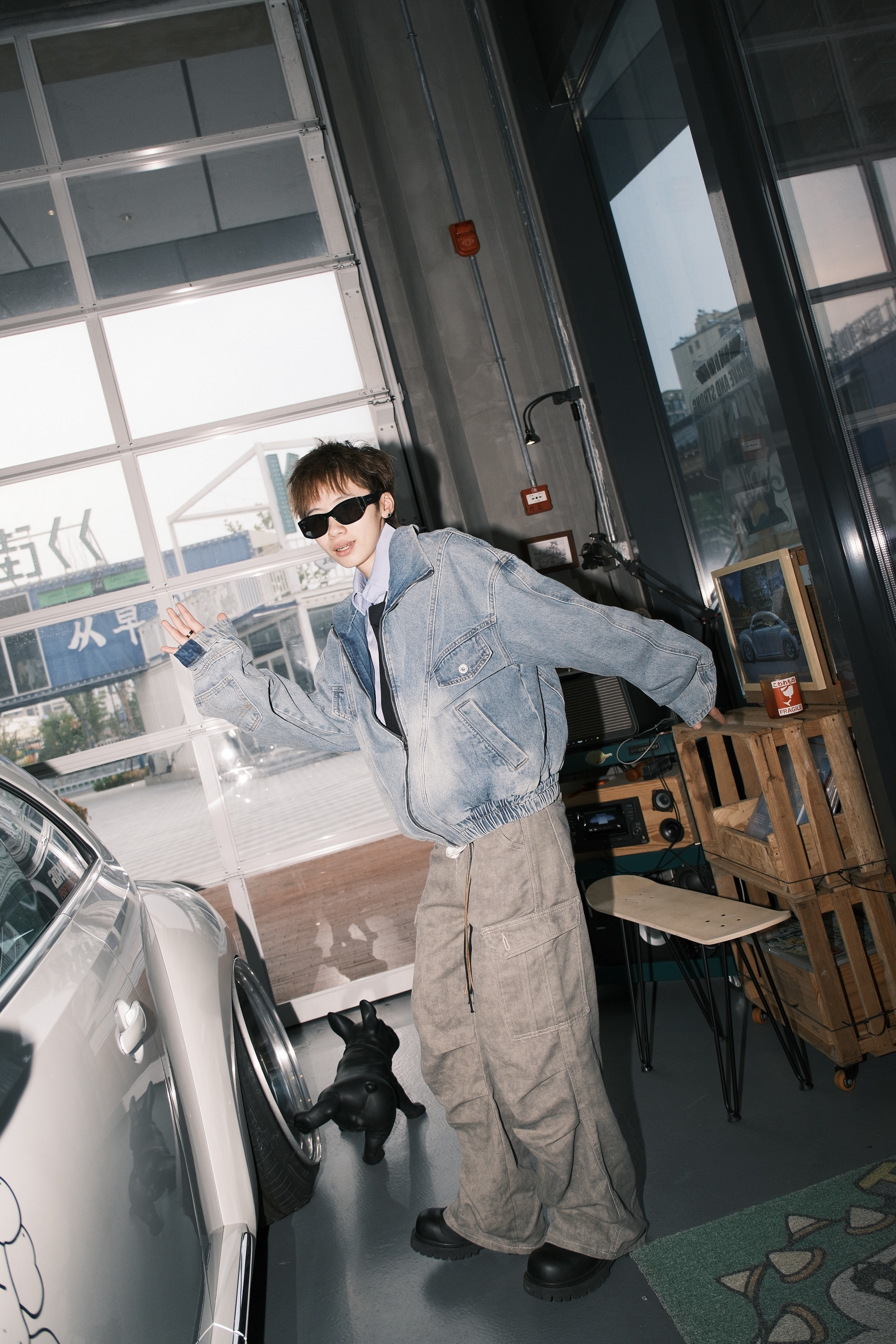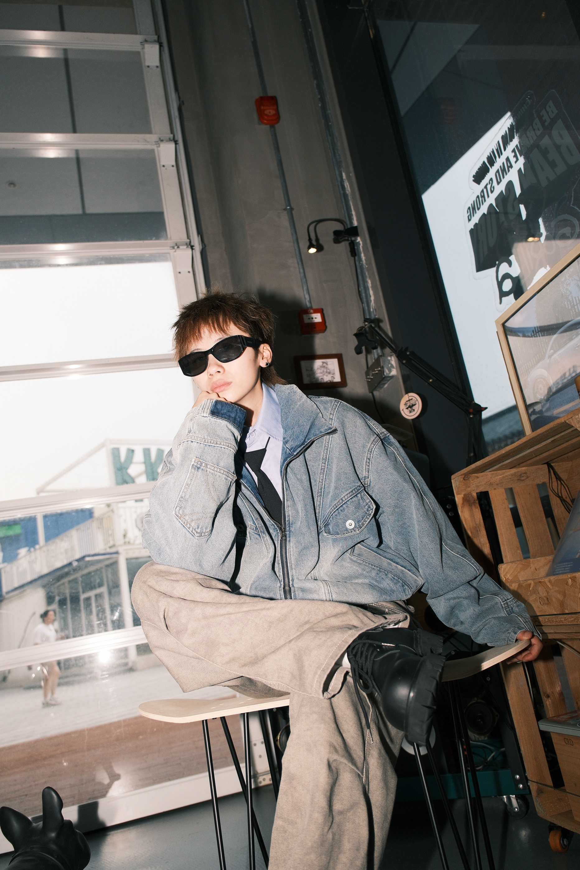 今天来复刻一下我印象里8090年代的复古港风穿搭 一件浅蓝色的牛仔外套 内搭蓝色衬衫,黑色领带也不能少 拉到胸口的位置,腔调就出来了 收紧处理的下摆,很有那种复古的味道 袖子部分做了类似于裤腰的设计 也是今年很流行的解构风 下身搭配卡其色直筒牛仔裤 再来一双大头德比鞋 配上富士的滤镜,感觉真的回到了90年代 尺码参考:163cm/45kg 上身M码