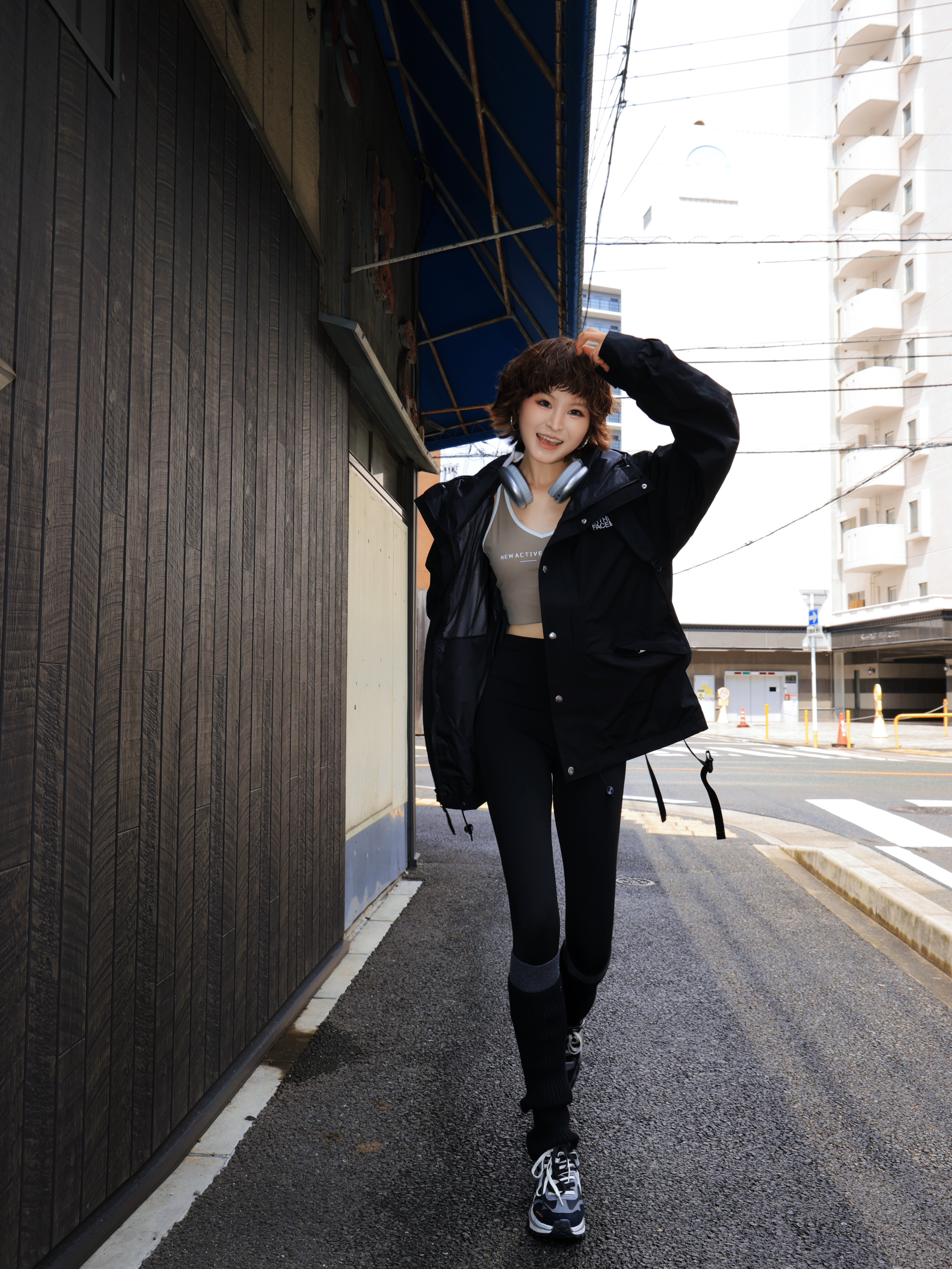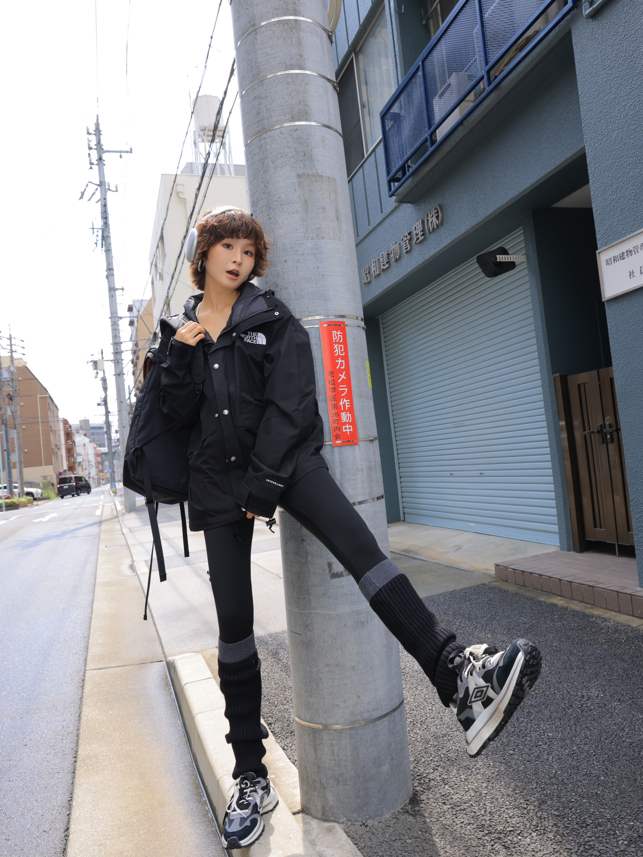 最近台风天一会冷一会热,时而下雨时而出太阳 变幻莫测🕳️🕳️ 黑色冲锋衣是我的应对方式 运动通勤出行 运动背心➕瑜伽裤➕ UMBRO飞船鞋 腿套增加层次和时髦感 让全黑穿搭变得并不无聊