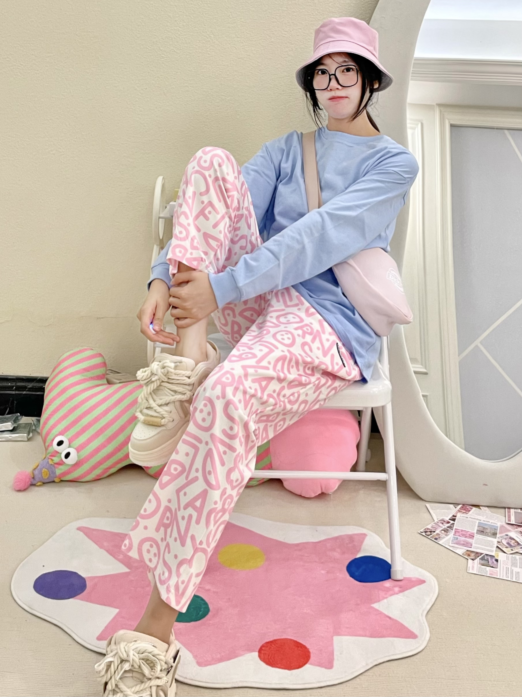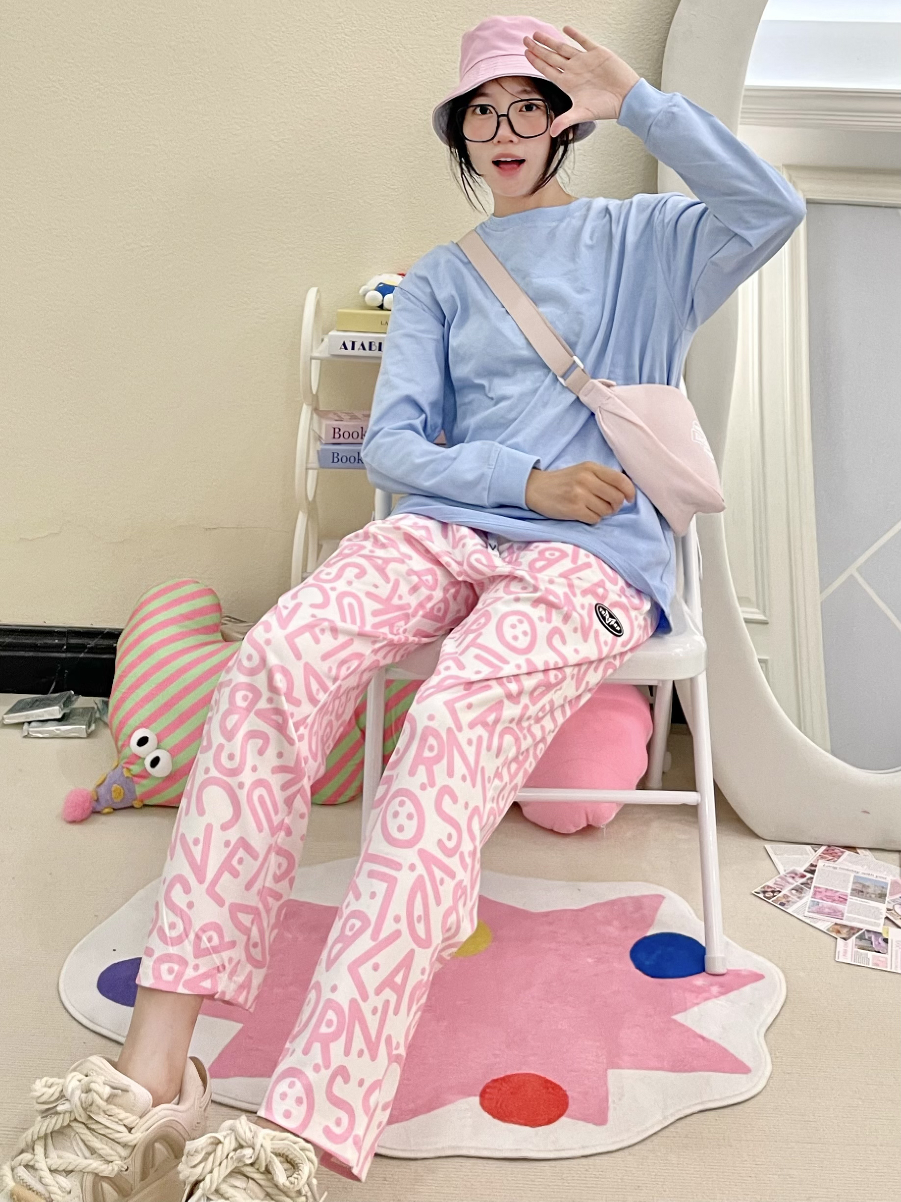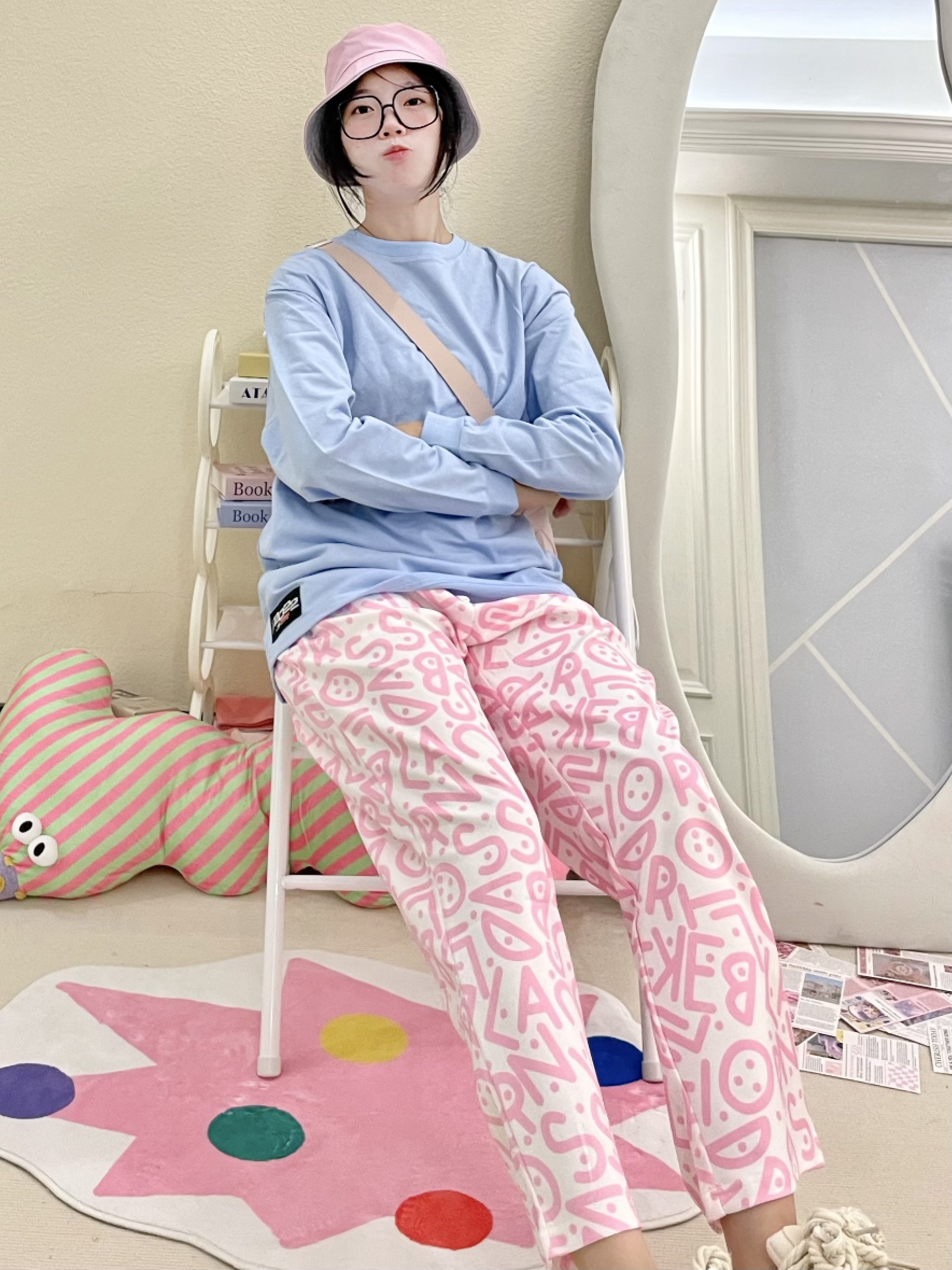 大家好吖૮ •𖥦• აᐝ我是可颂 欢迎点击今日份穿搭日记♡ᵕ̈ 这一身蓝粉撞色 元气感迎接开学咯 - 上身穿了纯色蓝T 下身搭配了带花色的运动裤 裤子的透气感不错 我选择了粉色款活力十足 再搭配上同色系的包包和渔夫帽 元气运动感迎接开学 - 🔍 参考:168cm 50kg ▪️ 上衣:Wanx ▫️ 裤子:维动 ▪️ 鞋子:辛普森 ▫️ 配饰:FUO