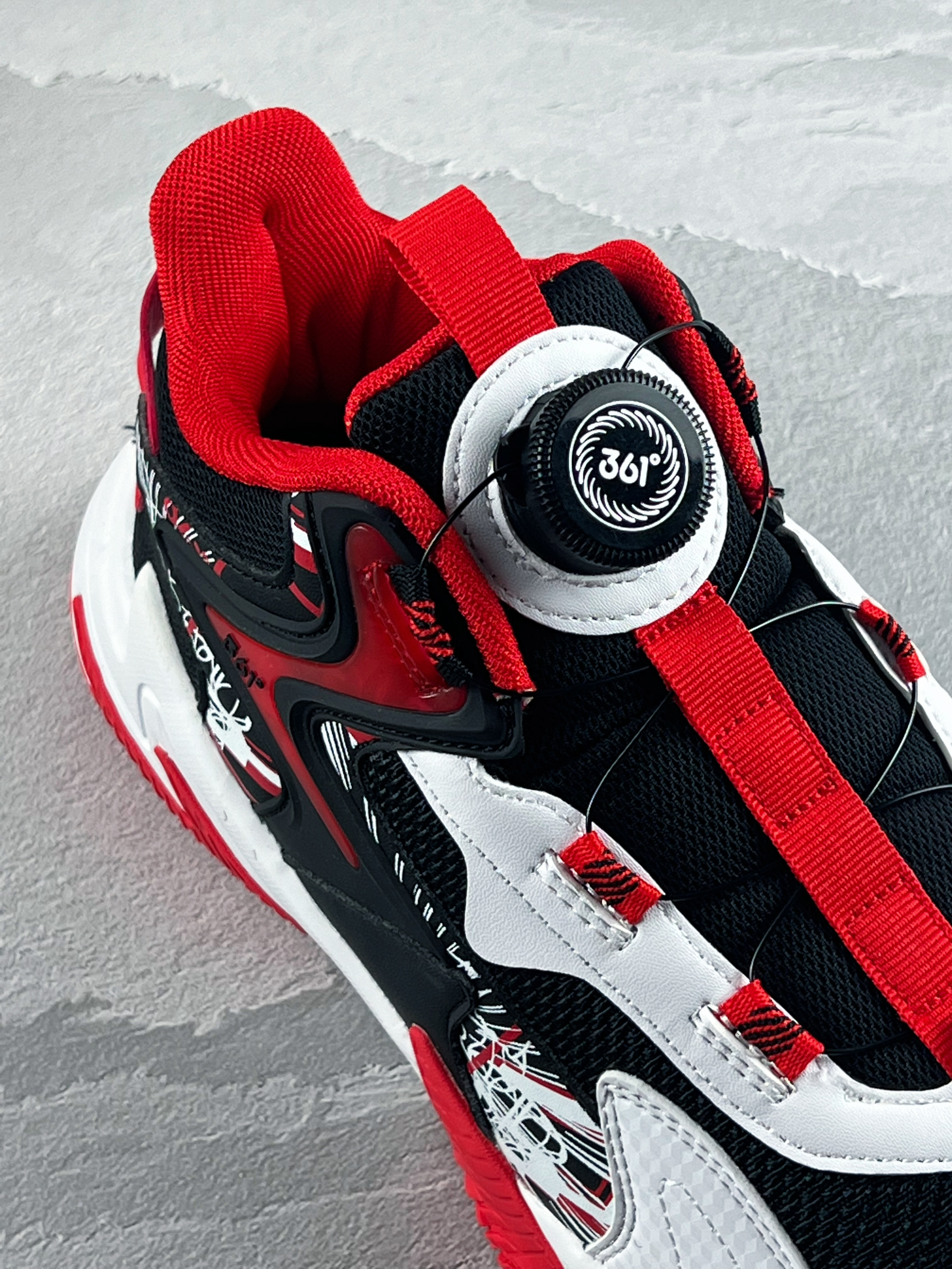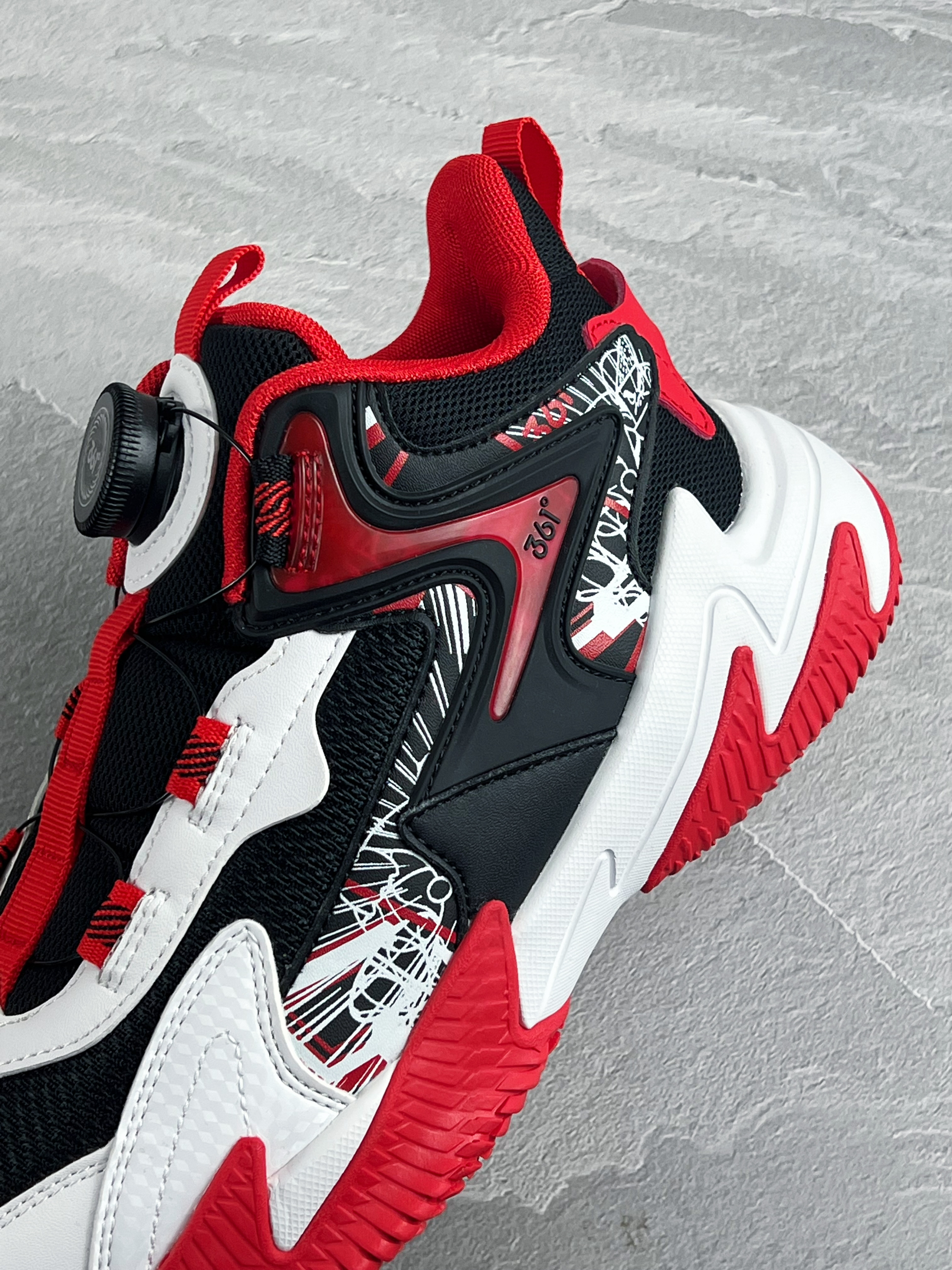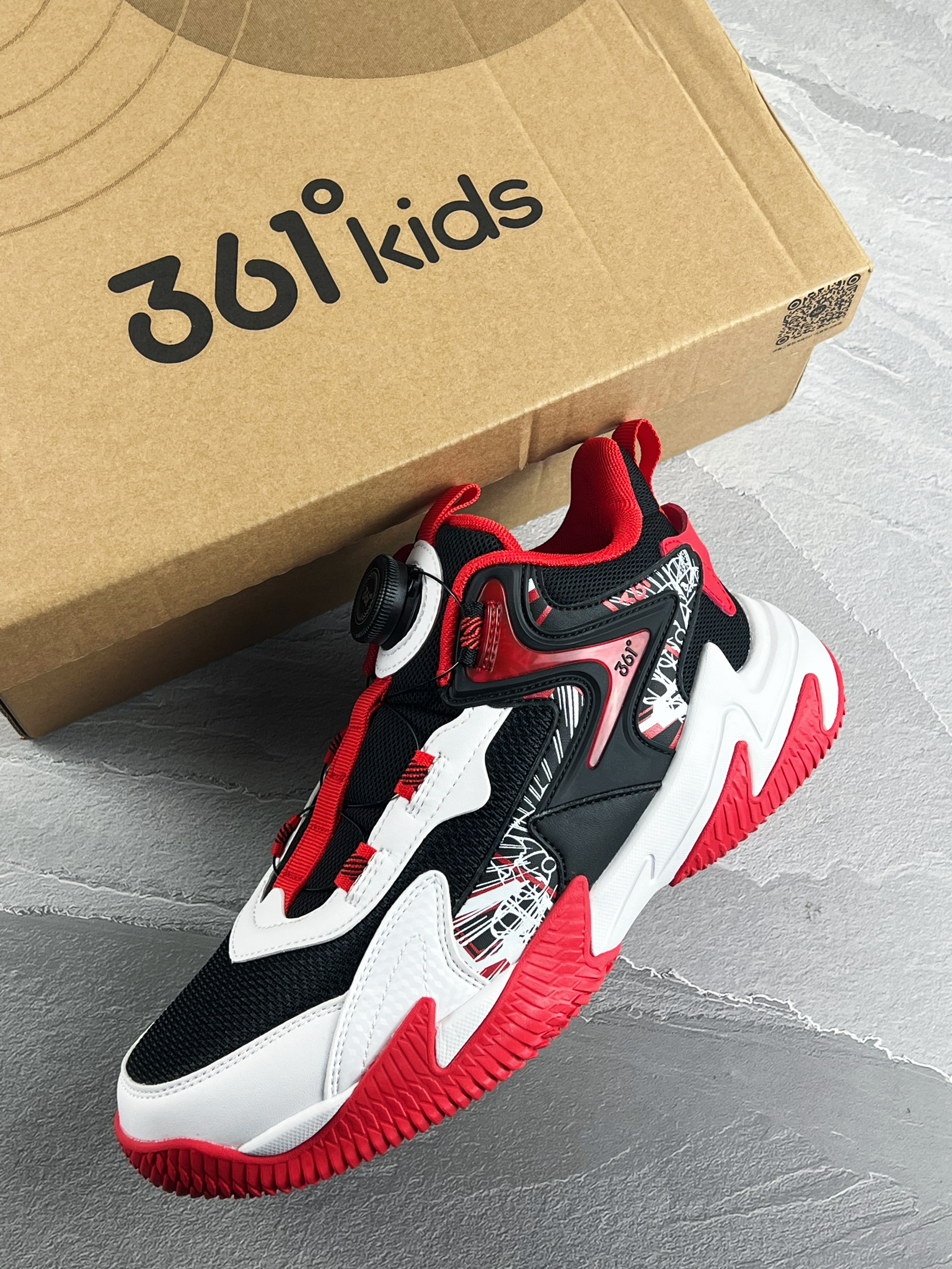 开箱即分享 今天和大家带来一双宝藏儿童篮球鞋 361 kids 悍将 黑白红 整体的实物颜值开箱还是蛮好看的 鞋面的涂鸦设计,很街头 织物皮革鞋面的透气性不错 另外旋转纽扣也方便孩子系鞋带 中底则是搭载了轻量泡棉缓震,脚感很韧弹 对于大体重的朋友也有明显反馈 橡胶外底的抓地防滑问题不大,室内外都可以 尺码最大做到了42码,成年人也可以穿 1开就能入手的价格,性价比很高 尺码选购方面建议正码