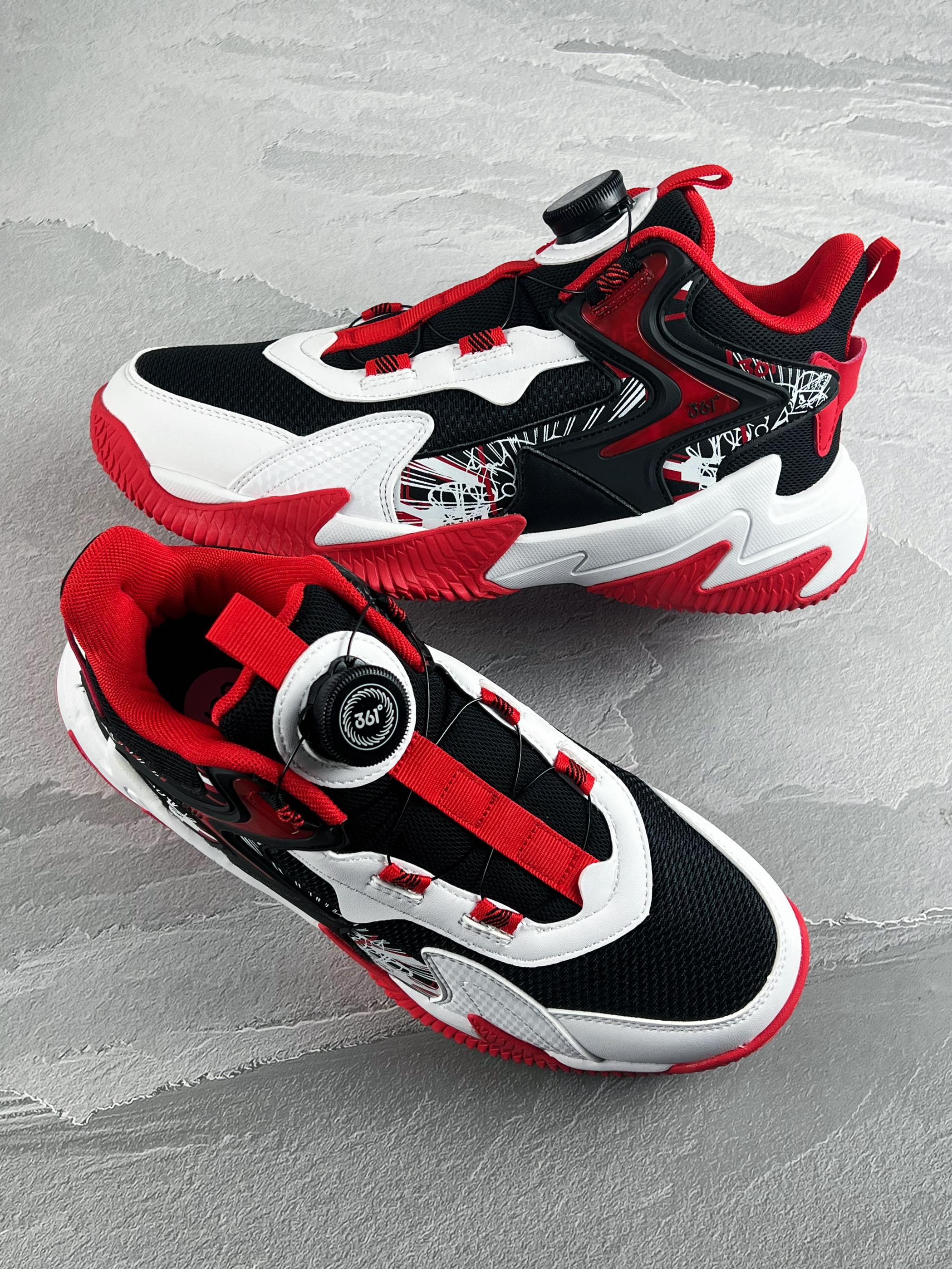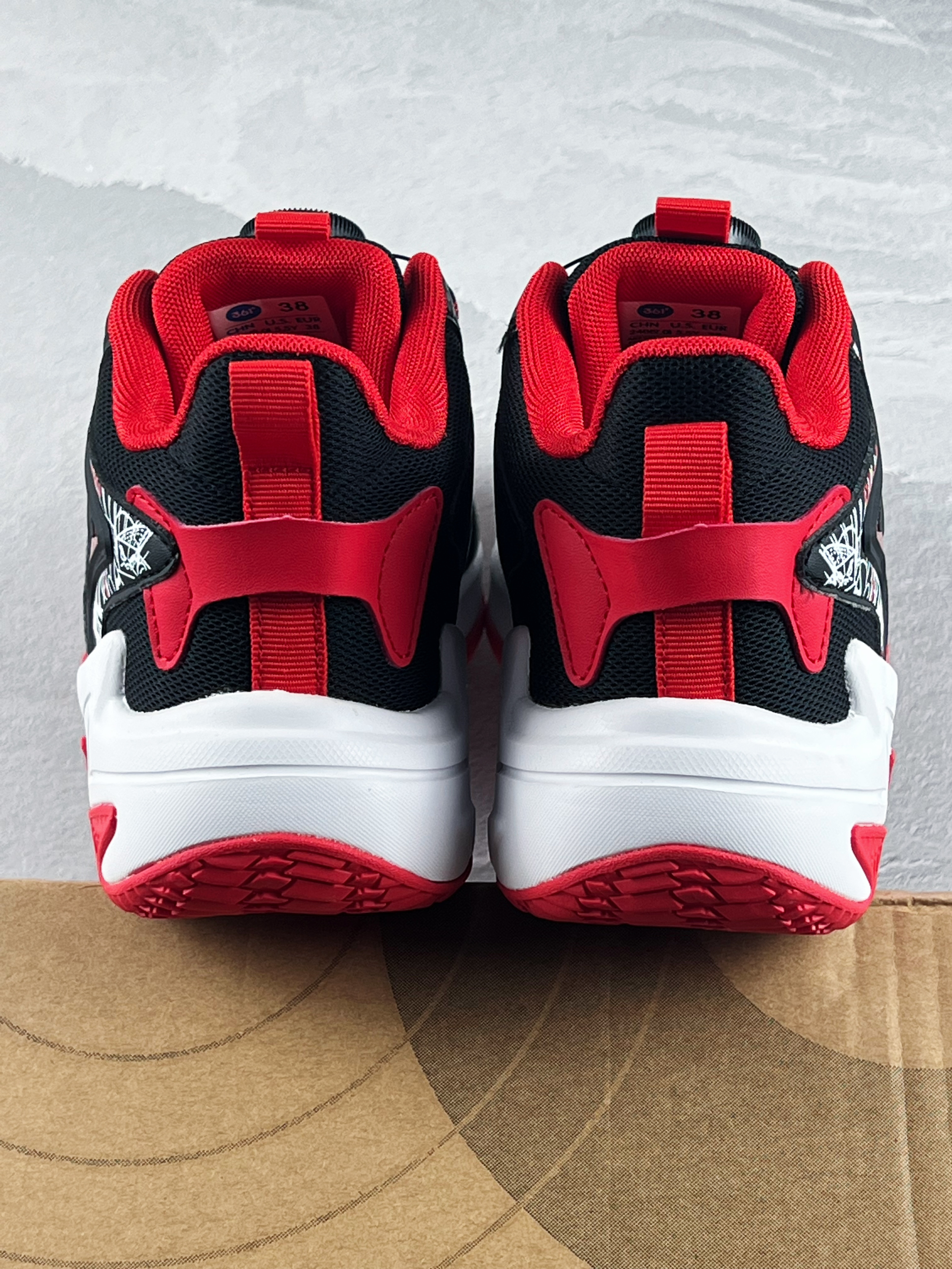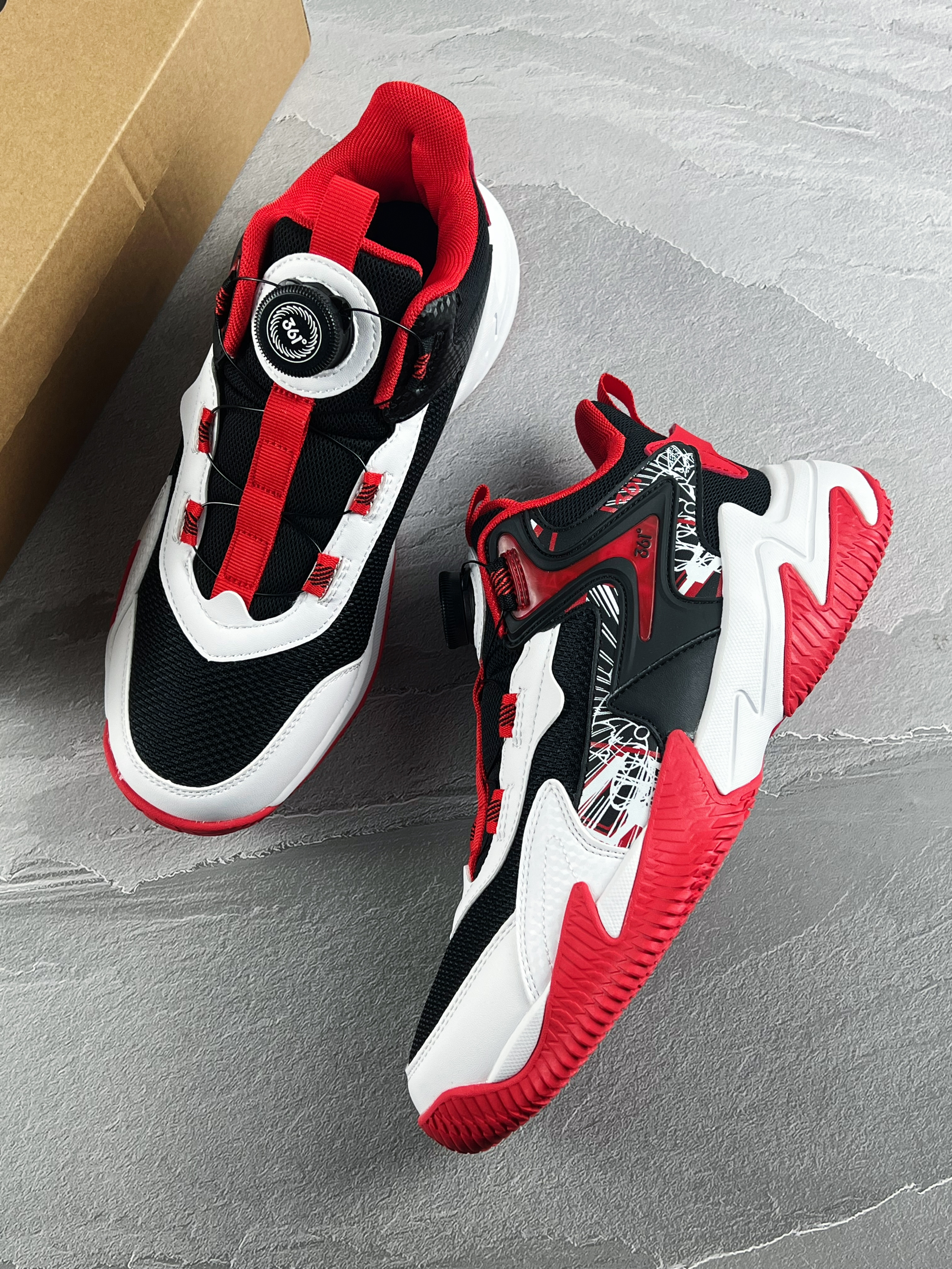 开箱即分享 今天和大家带来一双宝藏儿童篮球鞋 361 kids 悍将 黑白红 整体的实物颜值开箱还是蛮好看的 鞋面的涂鸦设计,很街头 织物皮革鞋面的透气性不错 另外旋转纽扣也方便孩子系鞋带 中底则是搭载了轻量泡棉缓震,脚感很韧弹 对于大体重的朋友也有明显反馈 橡胶外底的抓地防滑问题不大,室内外都可以 尺码最大做到了42码,成年人也可以穿 1开就能入手的价格,性价比很高 尺码选购方面建议正码