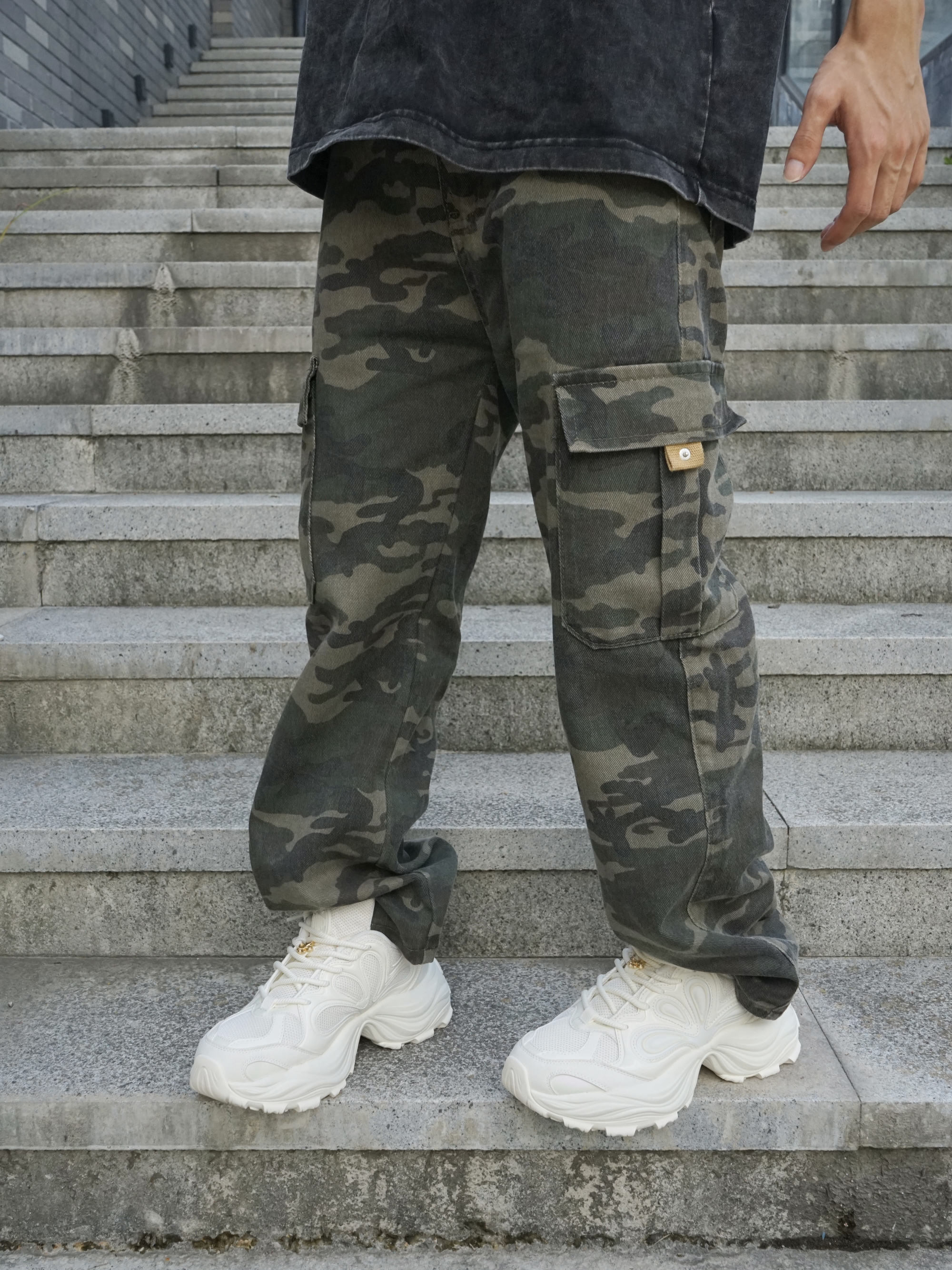 不得不说迷彩裤真的很耐看 搭配复古老爹鞋 还有增高效果 就真的很爱